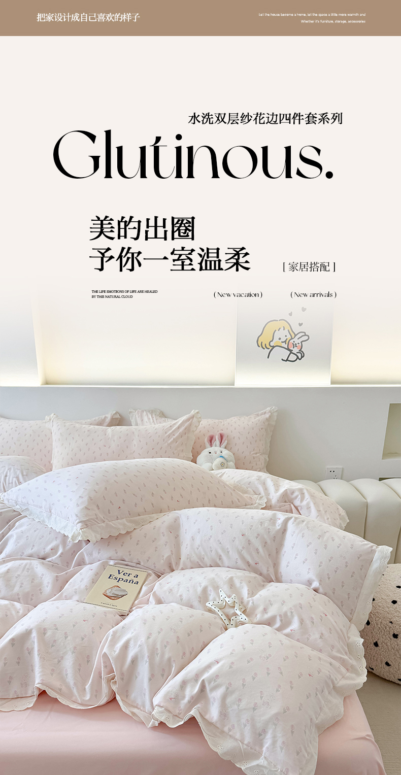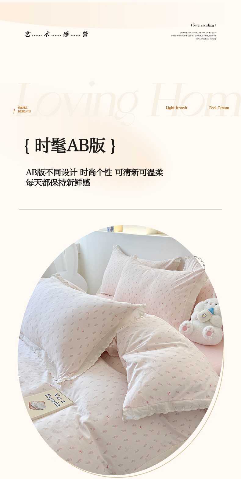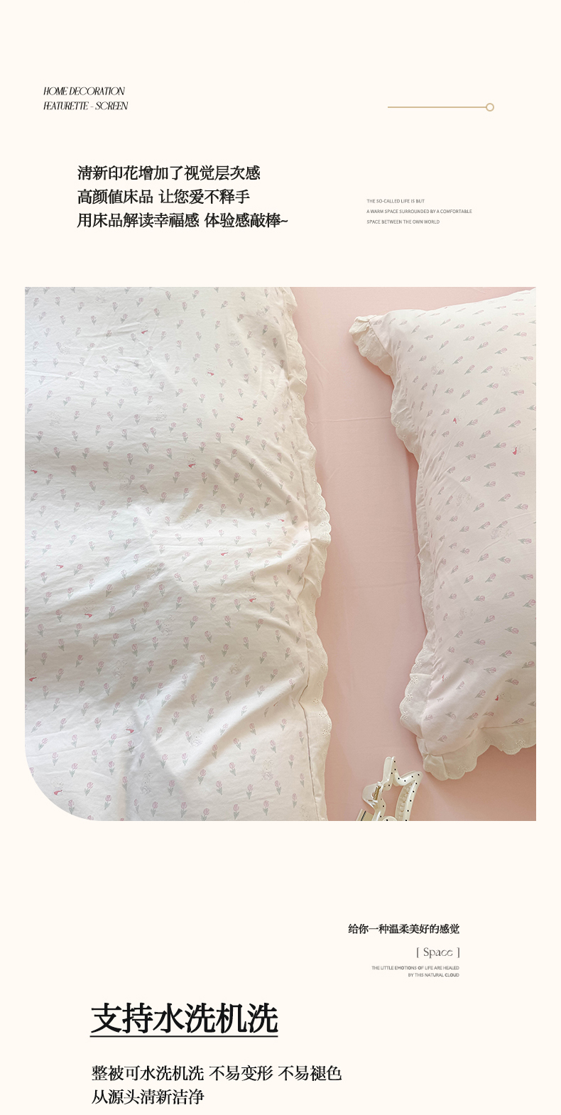 商品名称:吾欢心 2025新款韩版花边水洗双层纱四件套夏被四件套(棚拍图) 梦屿