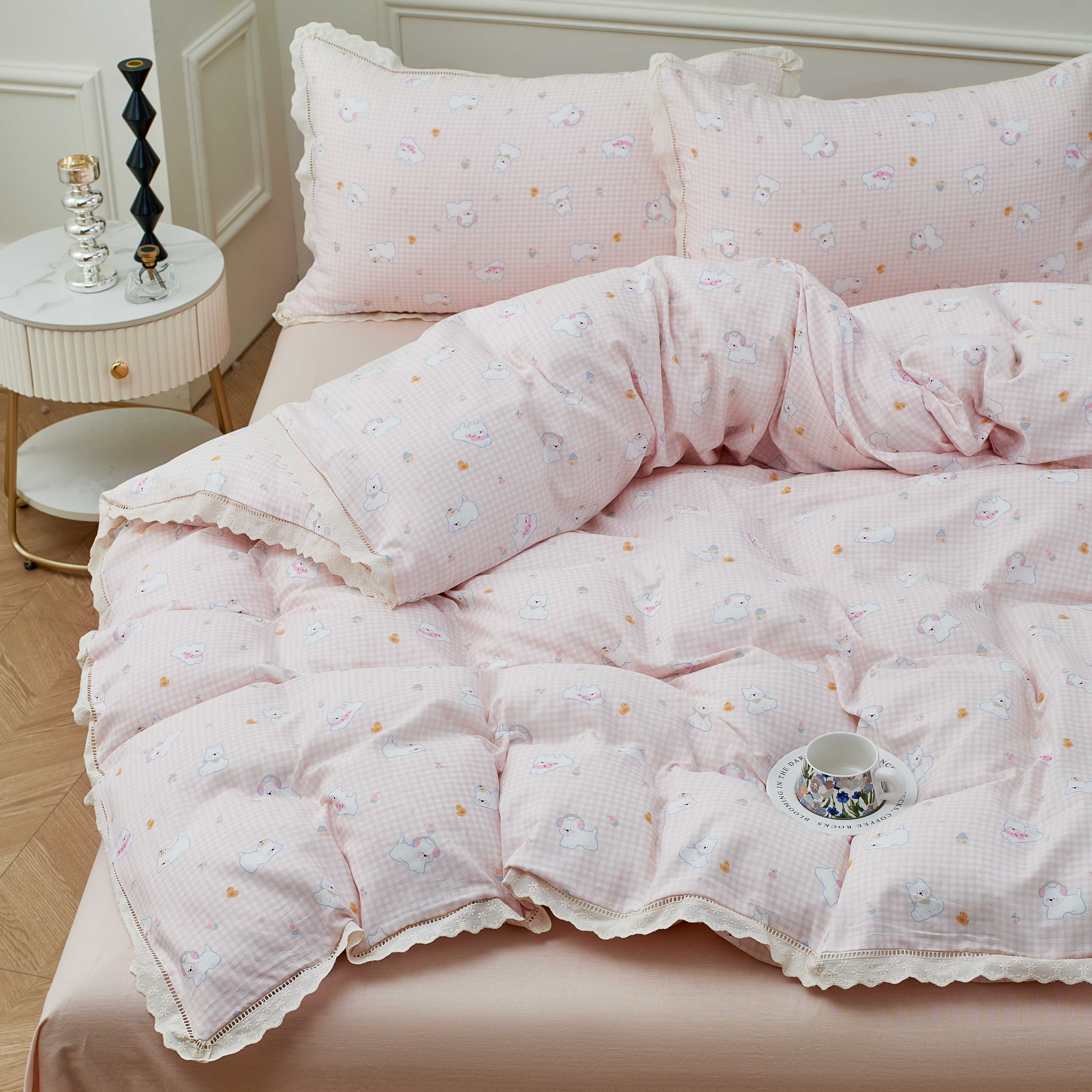 (总)黛馨 2025春夏新款全棉纯棉A类双层纱工艺款夏被夏凉被空调被四件套蕾丝款,白芽,百福蓝,半岛红茶,薄荷初夏,草莓兔,点点熊,芳华,花语,焦糖拿铁,梨泰院,奶油草莓,星黛露,秀妍