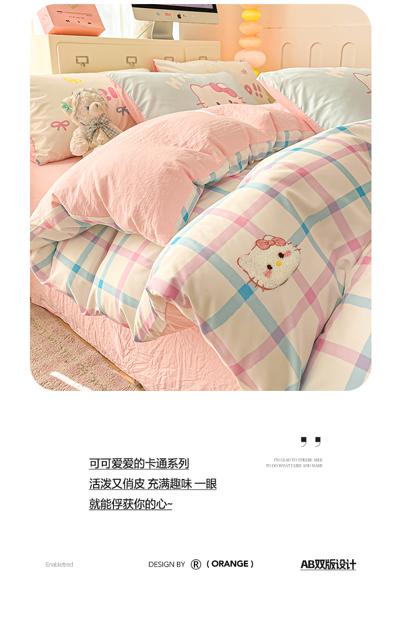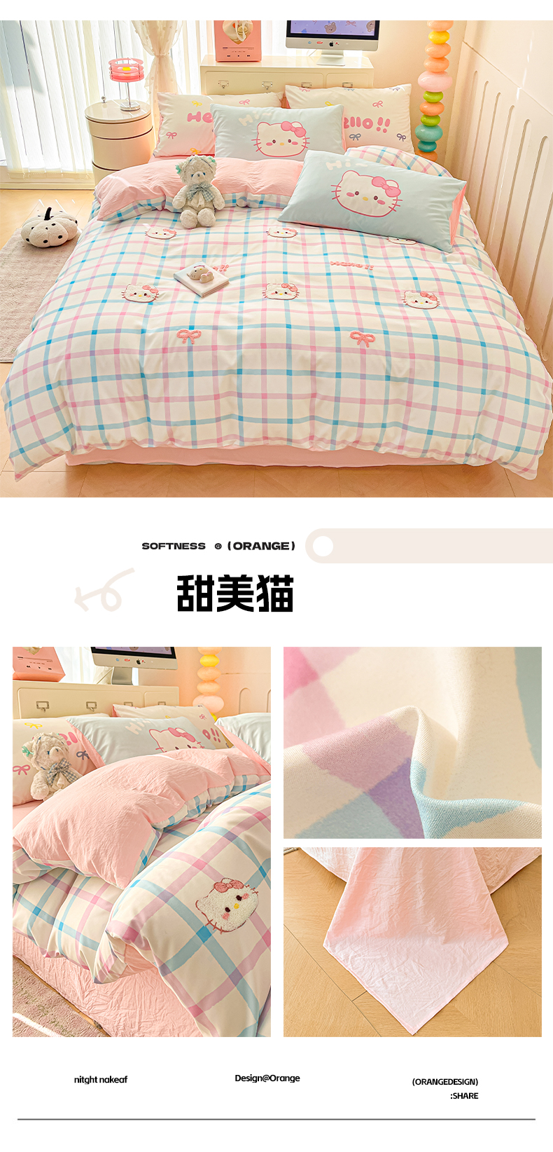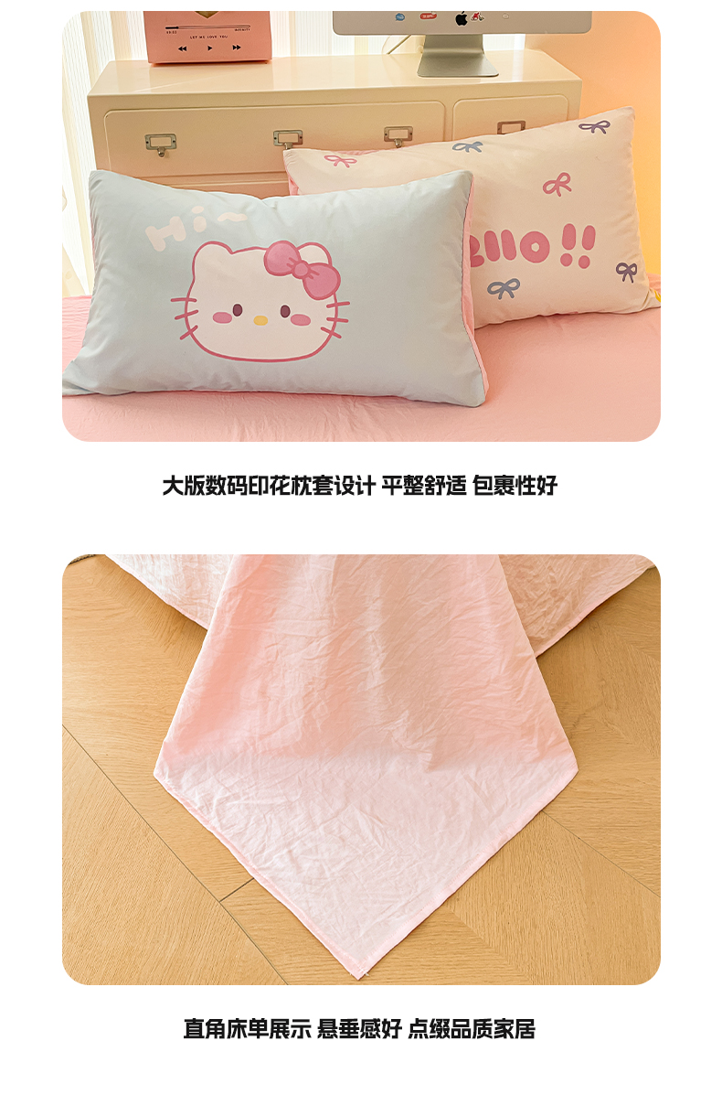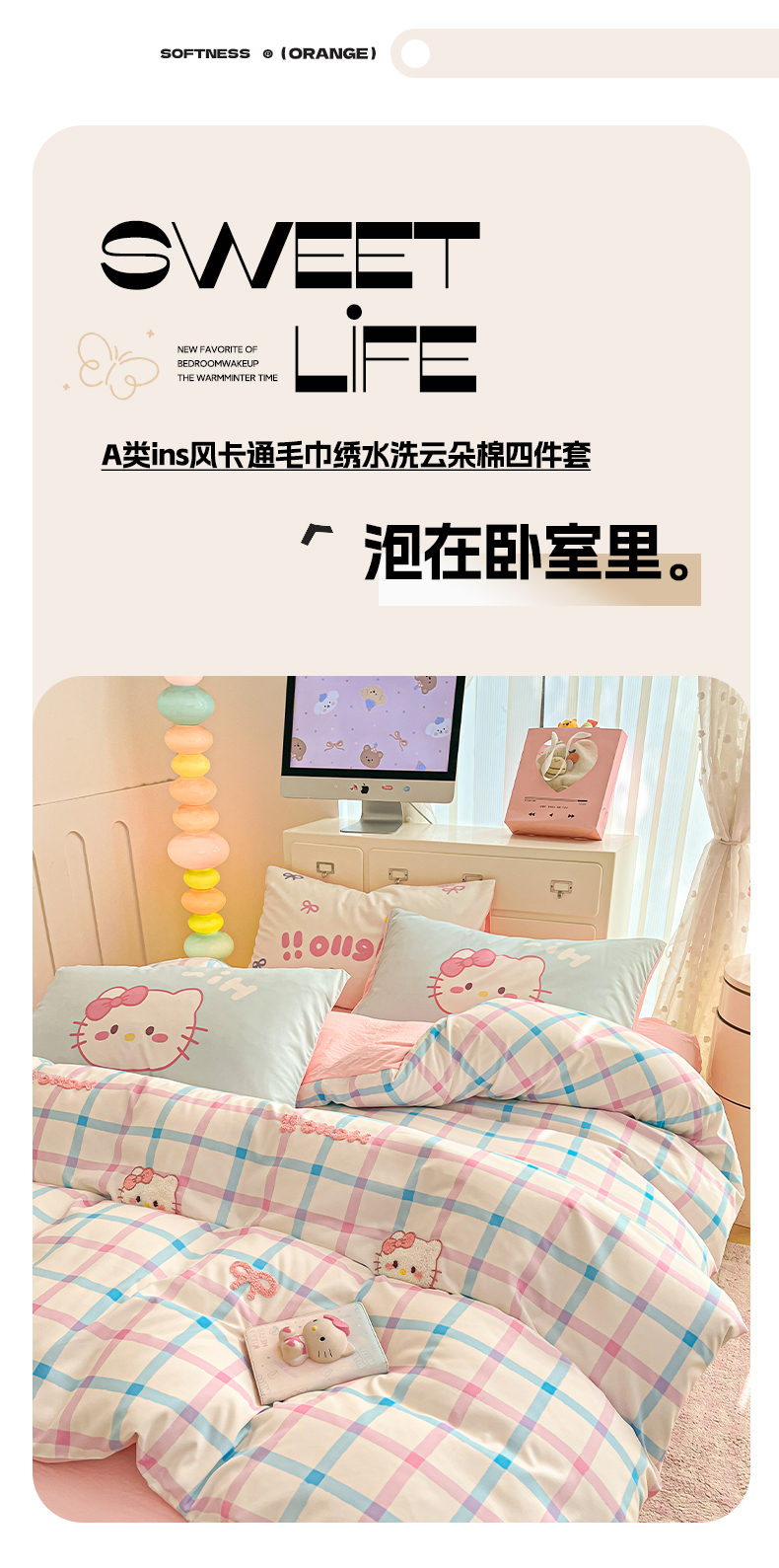 商品名称:如一 2025新款A类数码枕套卡通毛巾绣水洗棉四件套 甜美猫