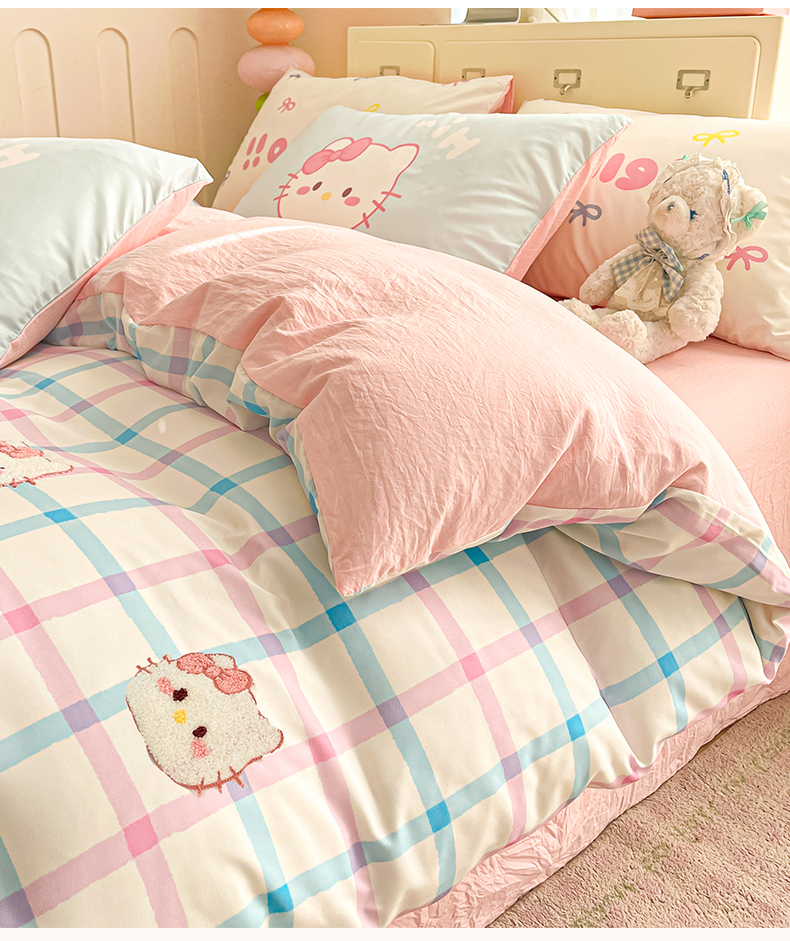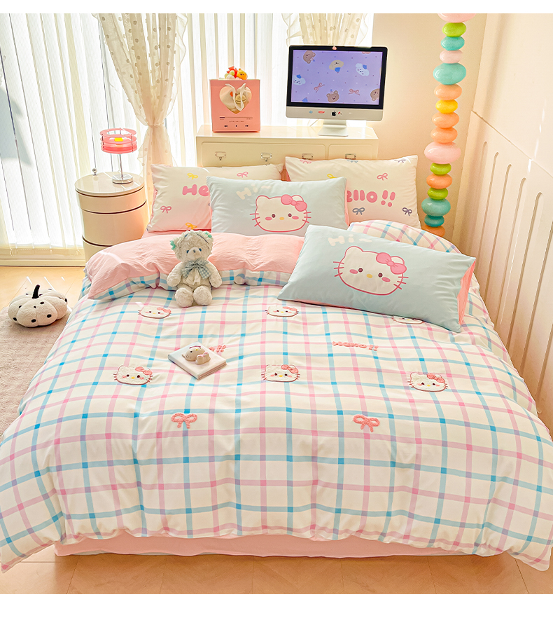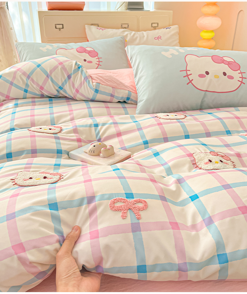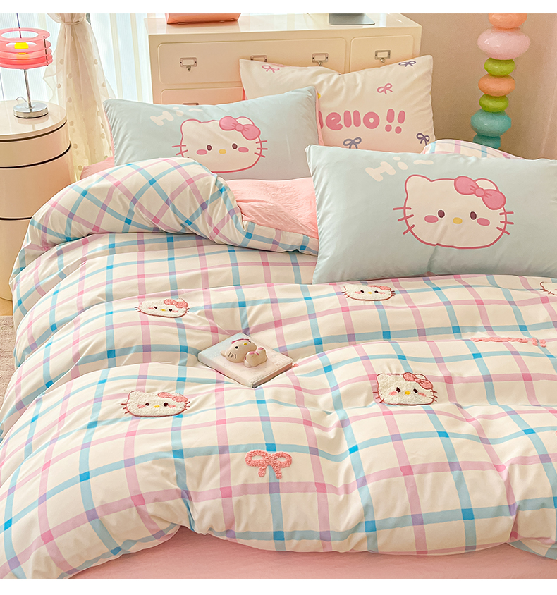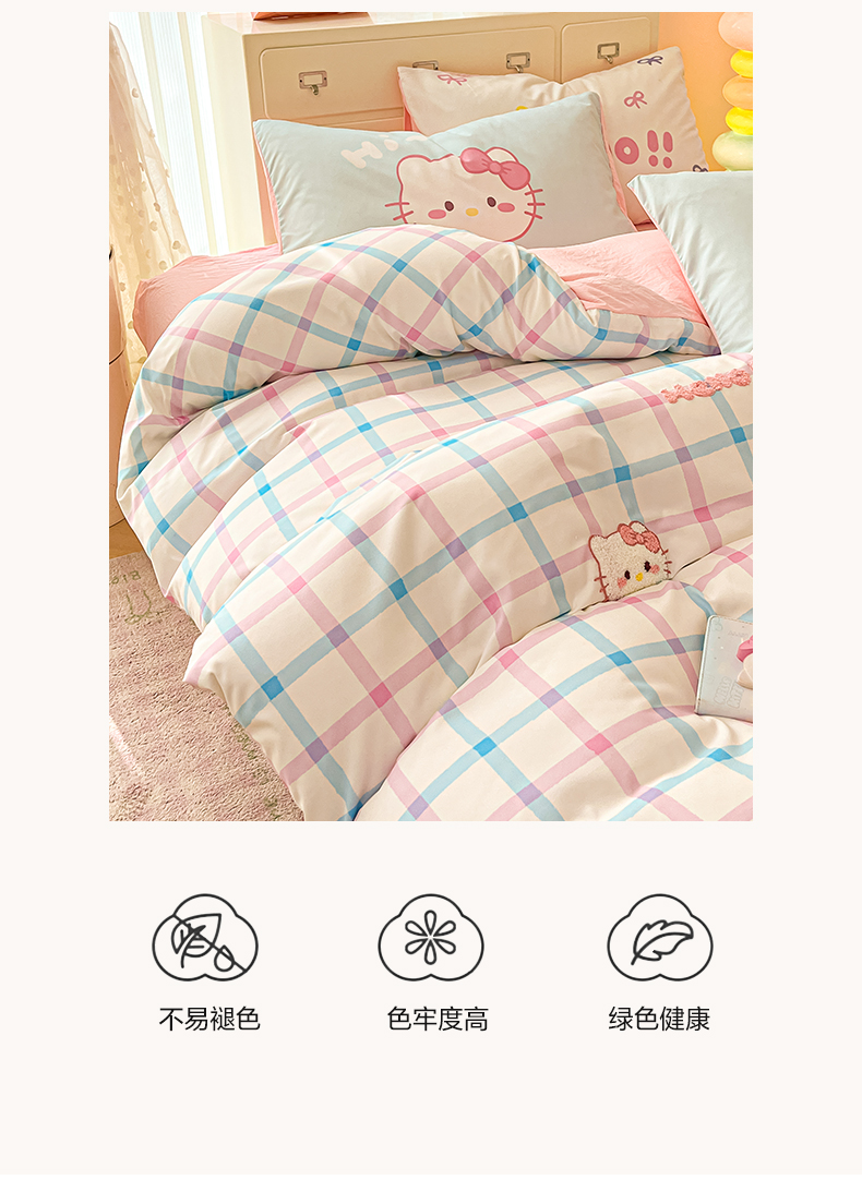 商品名称:如一 2025新款A类数码枕套卡通毛巾绣水洗棉四件套 甜美猫