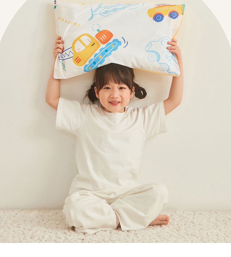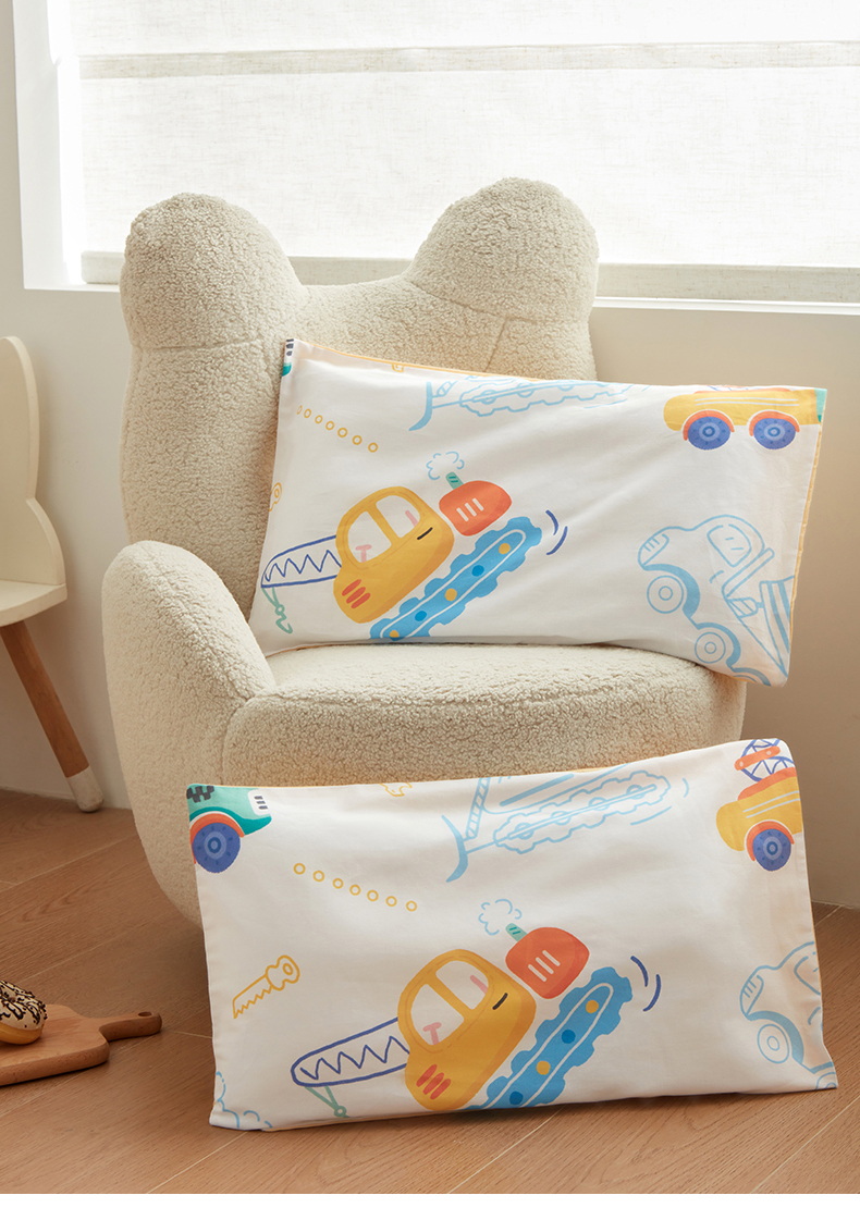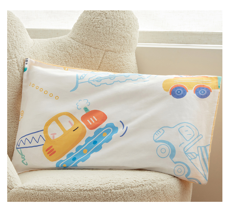艾佳宝贝 2025新款A类全棉纯棉儿童单枕套多尺寸可拆式枕头 工程小车