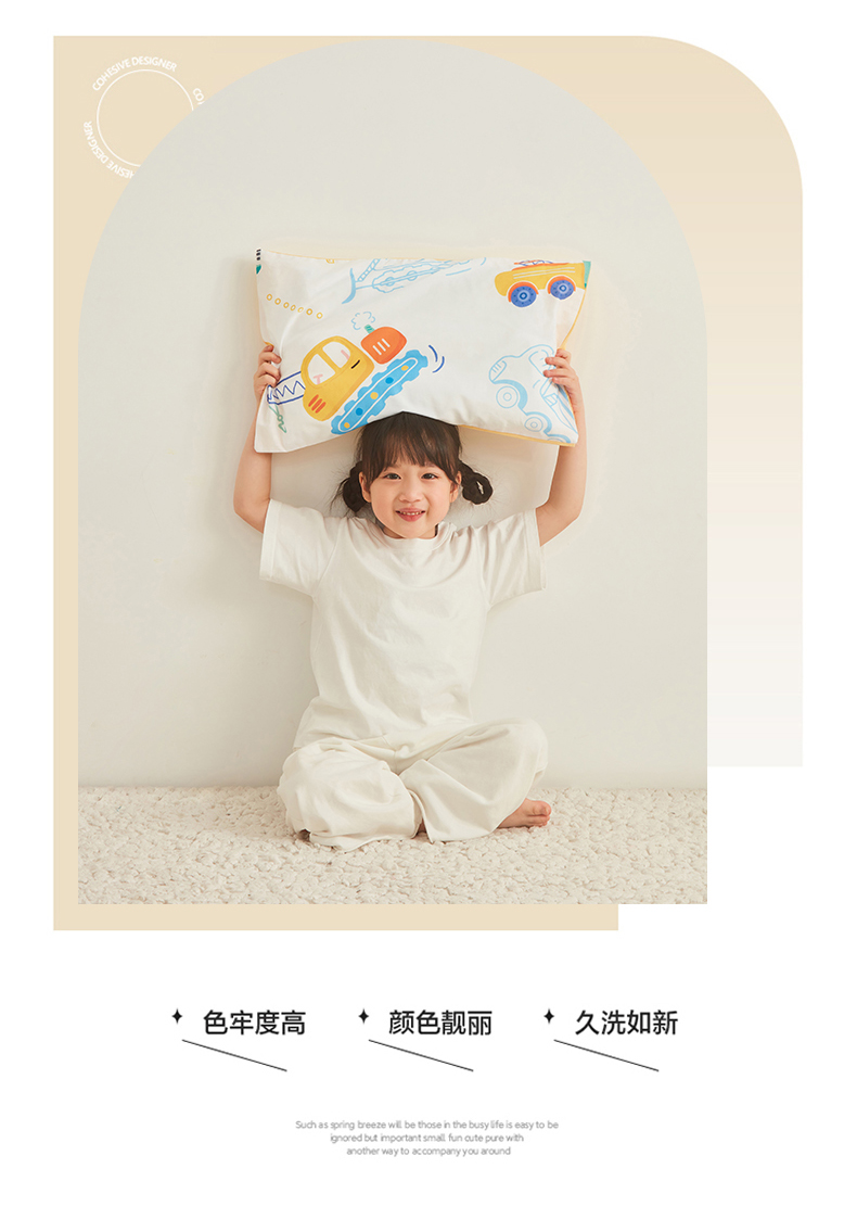 商品名称:艾佳宝贝 2025新款A类全棉纯棉儿童单枕套多尺寸可拆式枕头 工程小车