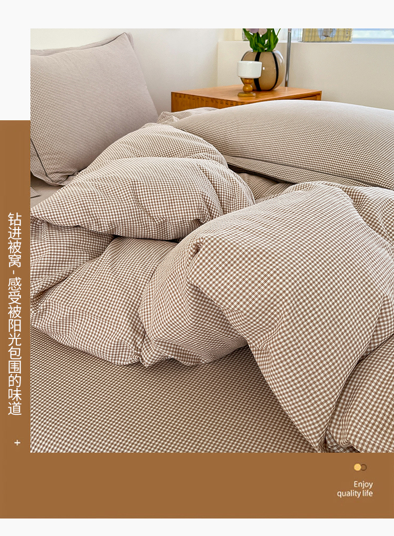 (总)金窝窝家纺 2025新款纯棉水洗棉四件套,爱锦灰,巴黎彩格,巴黎灰,春意盎然淡绿色,大发格粉蓝,大发格绿,多爱多粉,繁星奶咖米格,假日阳光彩格,绿咖时尚格,绿小格,米格,浅蓝小格,三彩格,时尚风蓝灰,相遇兰橙,相遇小粉,意境蓝灰,优雅粉格,优雅橘,优雅兰