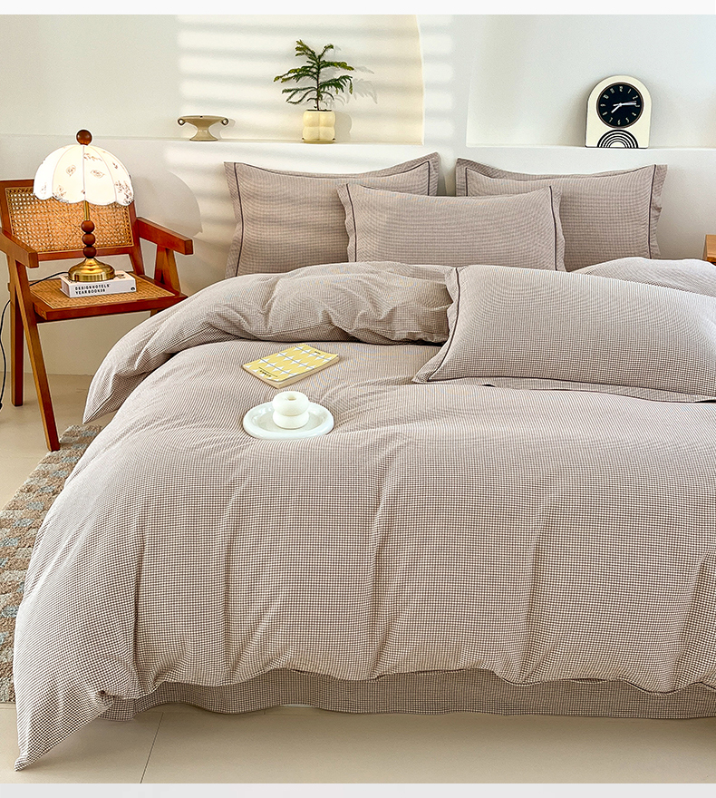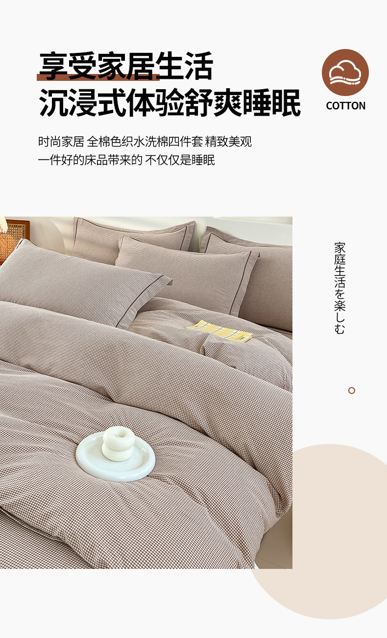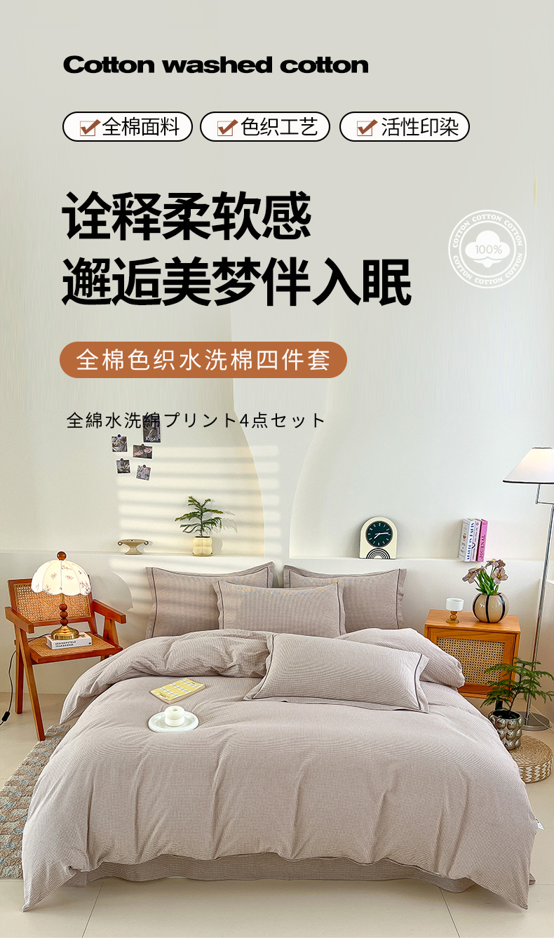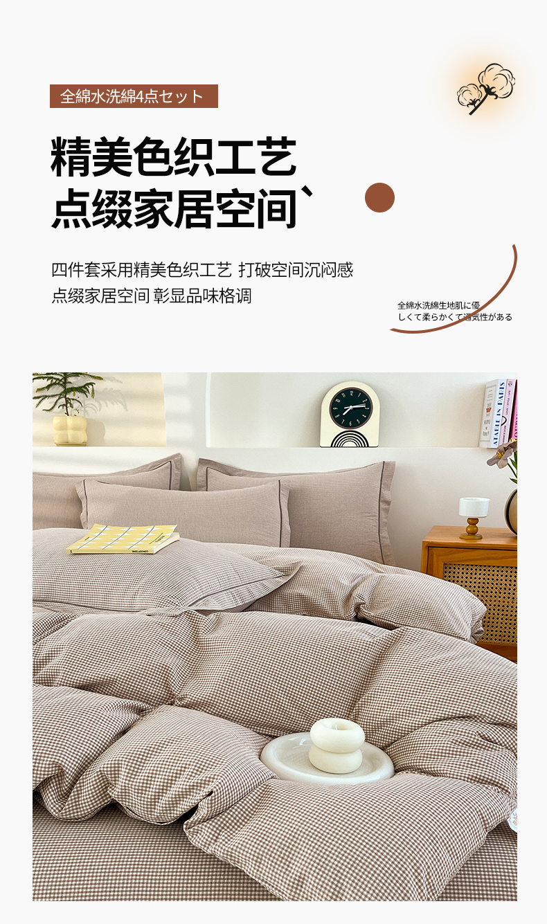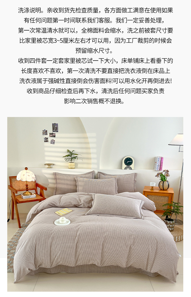 (总)金窝窝家纺 2025新款全棉色织水洗棉床盖四件套,春意盎然淡绿色,春薏时尚灰,多爱多粉色,繁星奶咖米格,绿咖时尚格,米菲灰,米格,浅兰小格