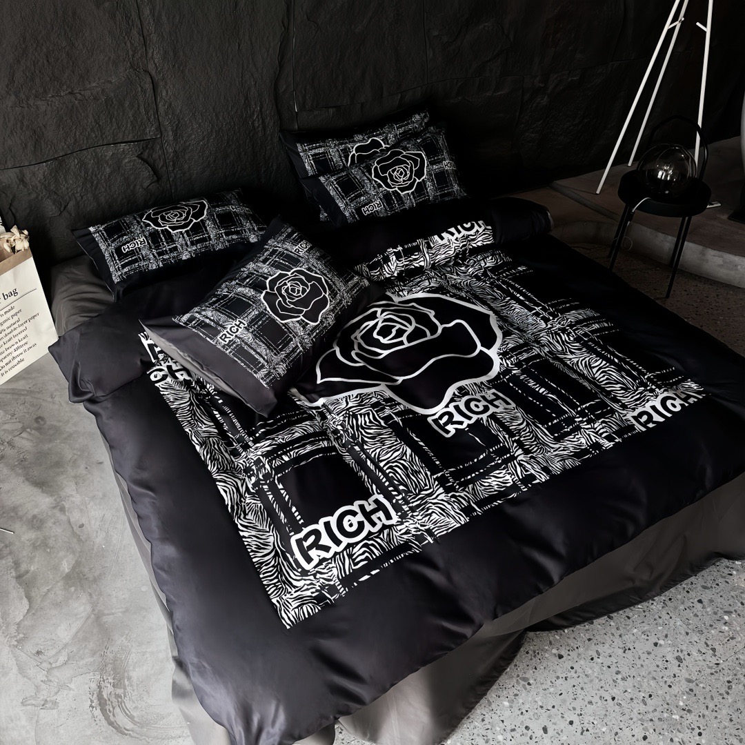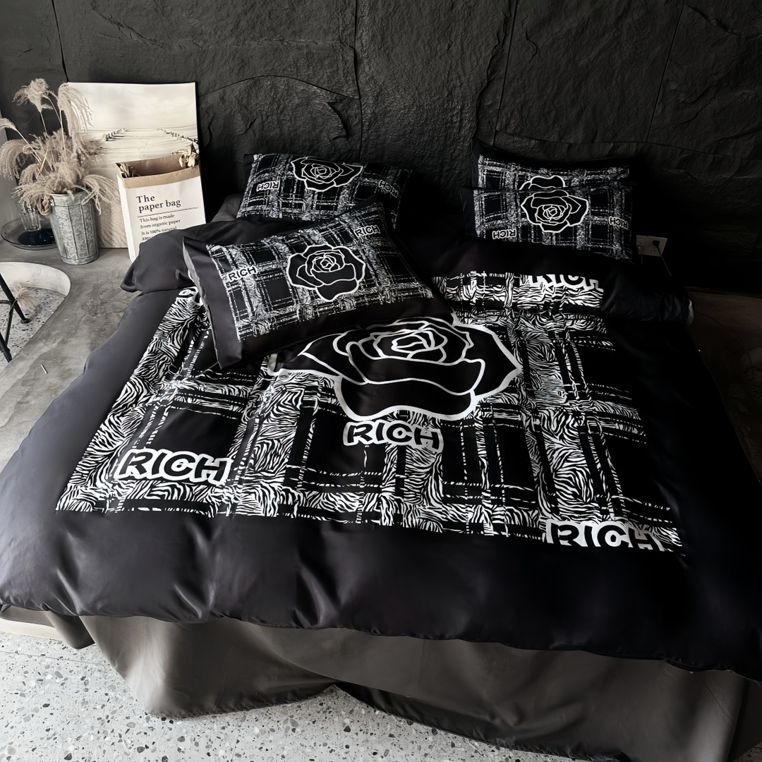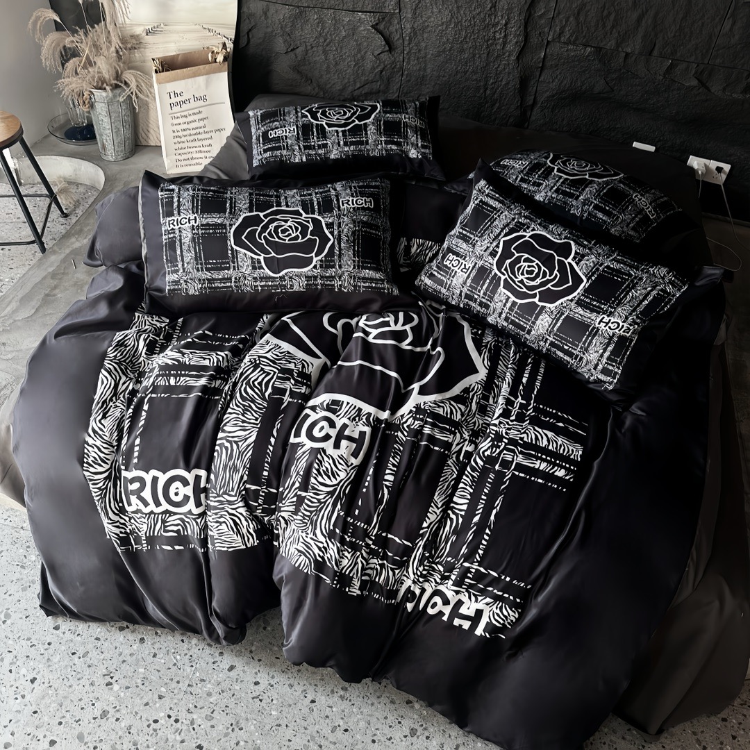 丽斐纺织 2025新款水洗冰丝数码印花四件套 黑山茶