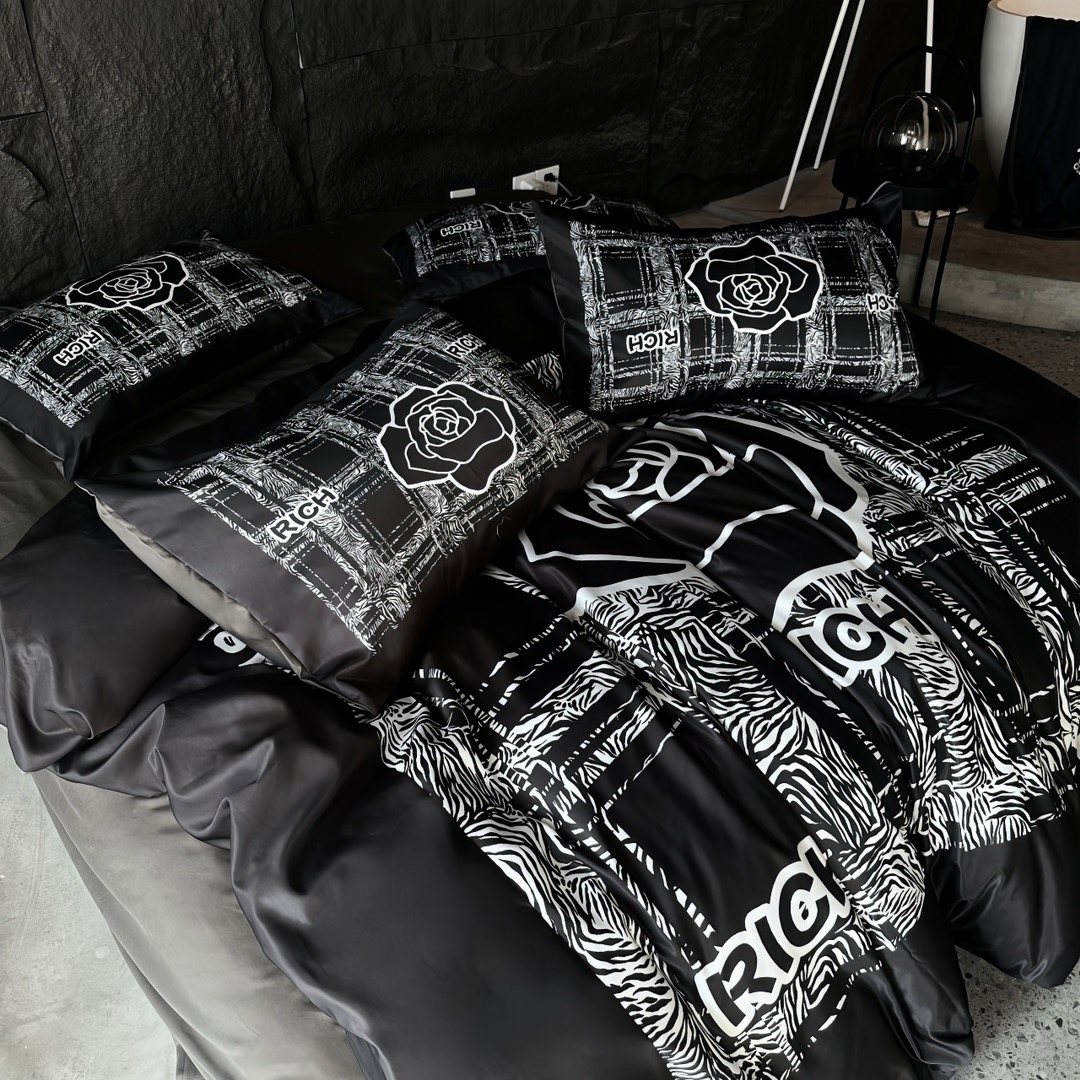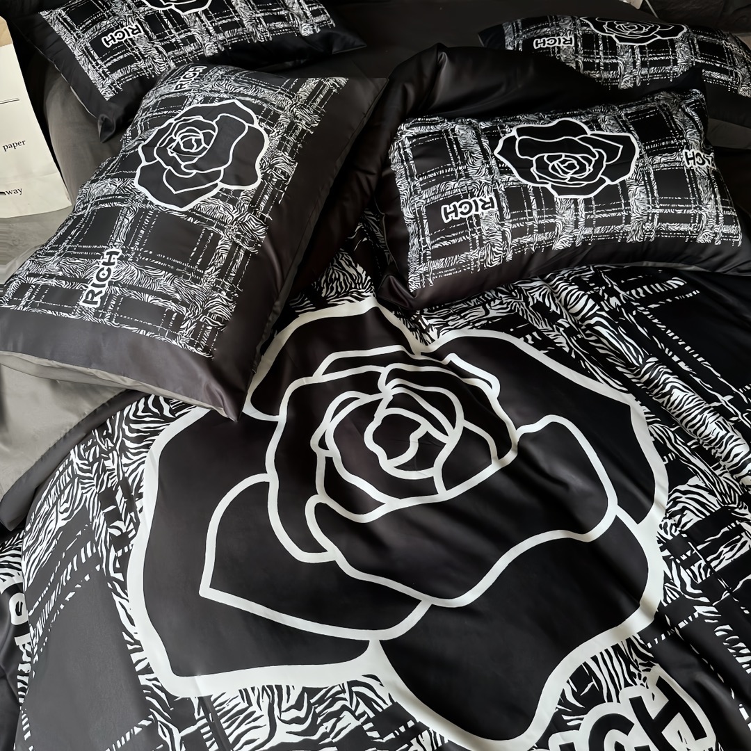 商品名称:丽斐纺织 2025新款水洗冰丝数码印花四件套 黑山茶