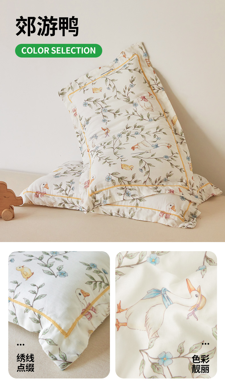商品名称:嗨生活2025新款天竹系列A类竹纤维四层纱枕套 儿童枕套 幼儿园枕套 郊游鸭