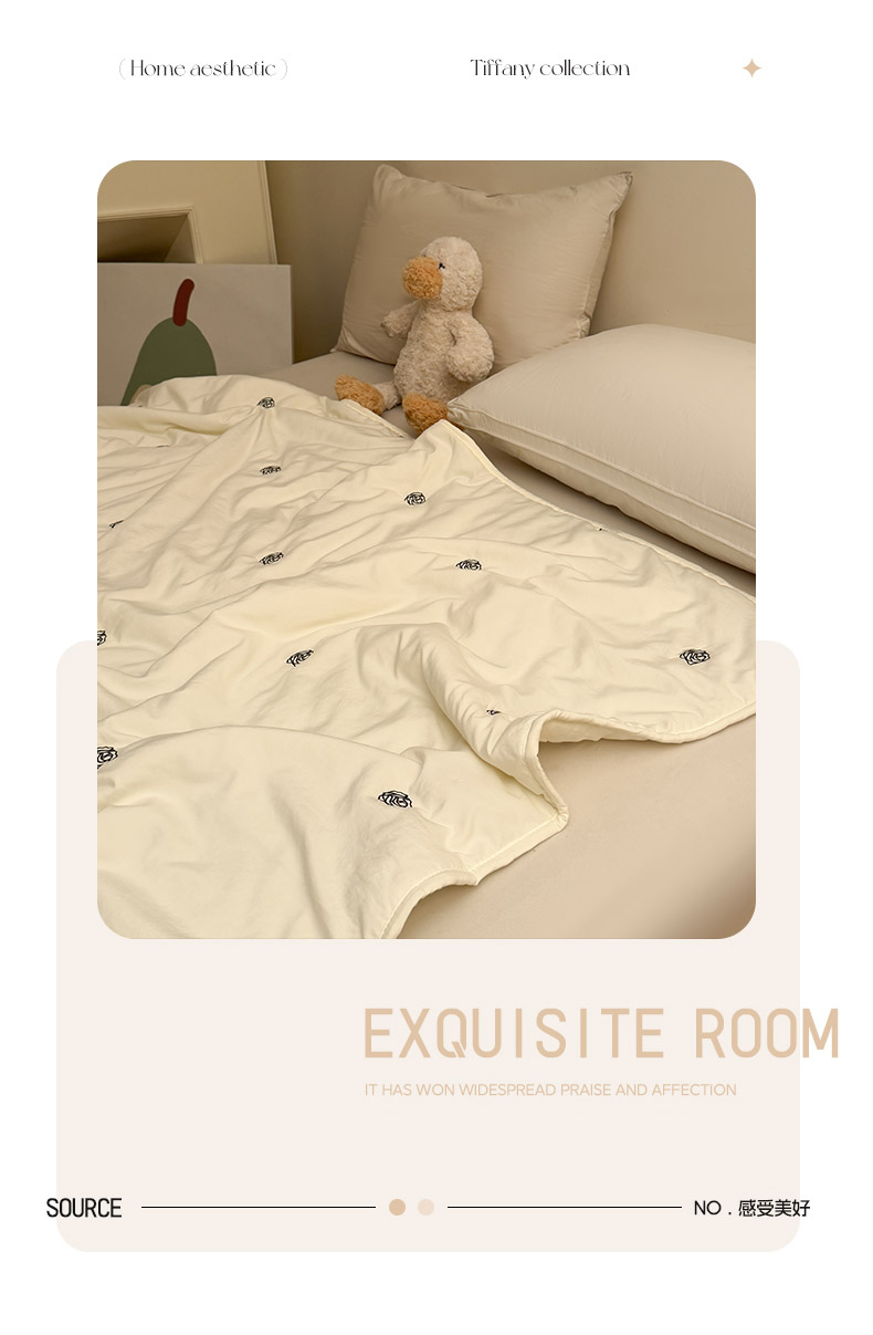 推推家纺2025新款简约系列水洗棉刺绣夏被 玫瑰-米白