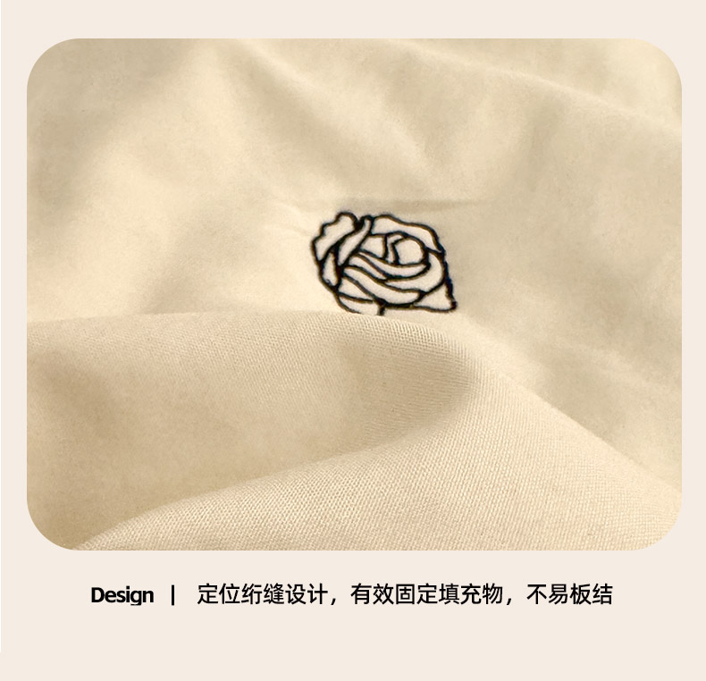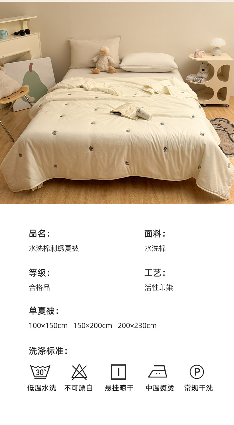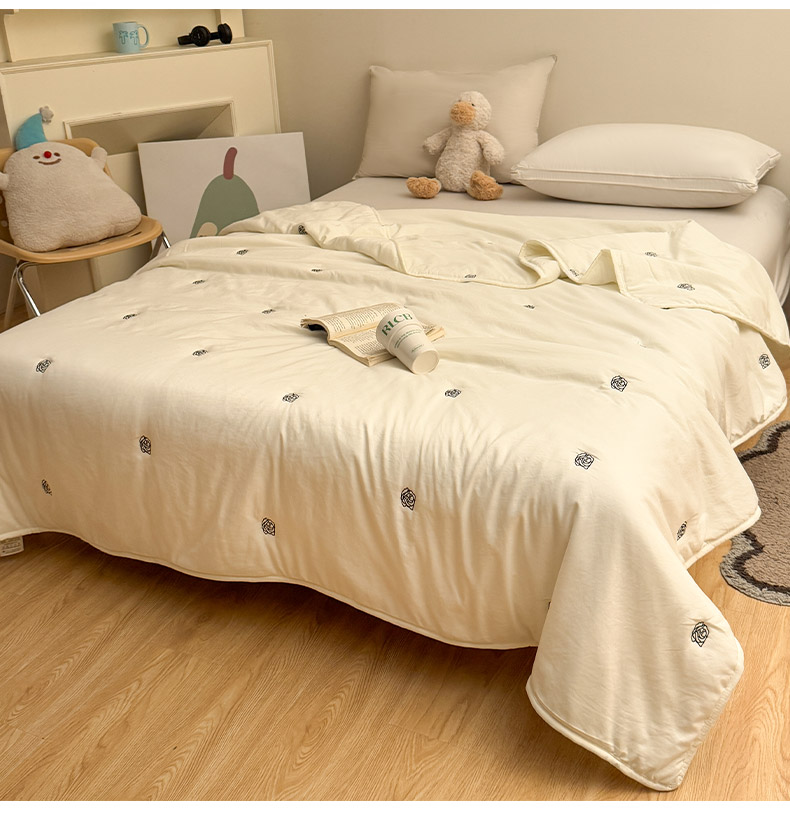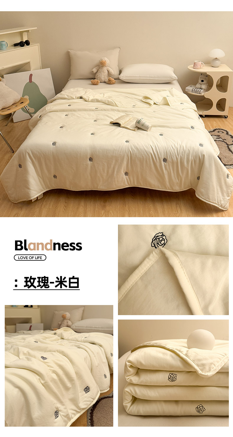 商品名称:推推家纺2025新款简约系列水洗棉刺绣夏被 玫瑰-米白