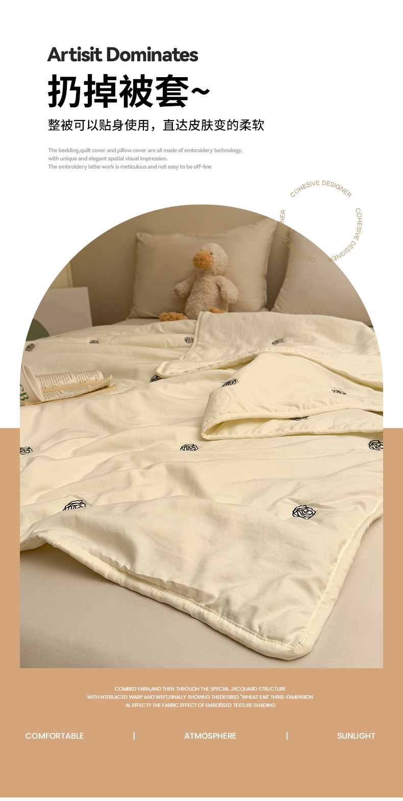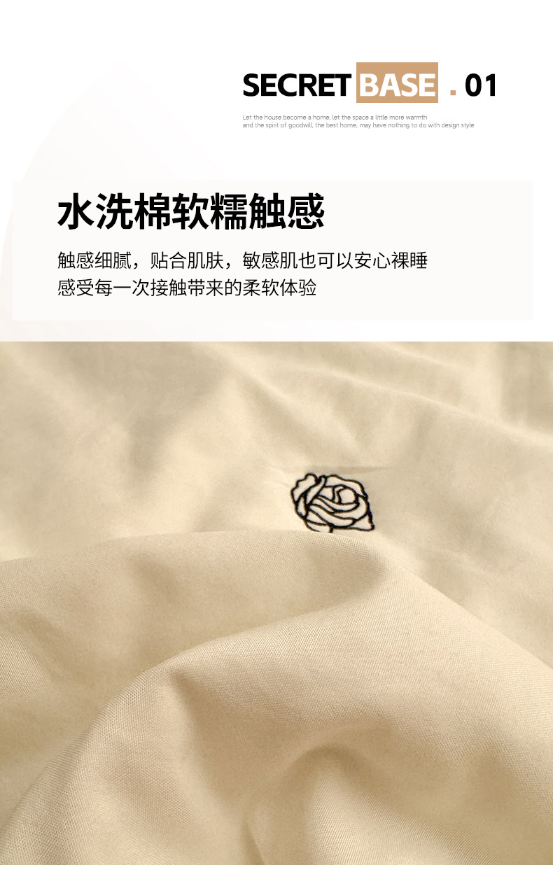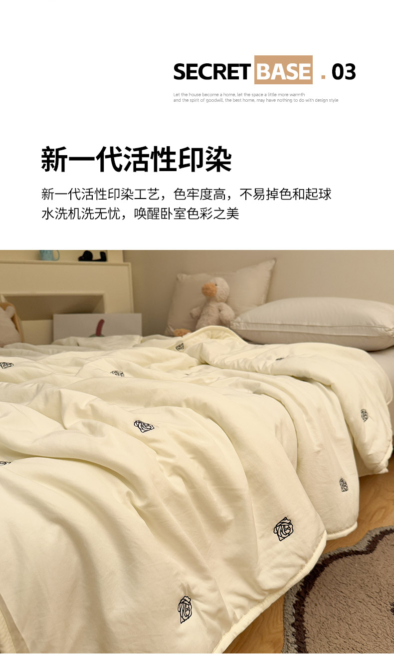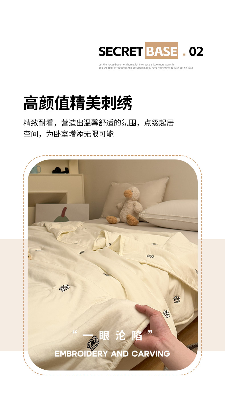 商品名称:推推家纺2025新款简约系列水洗棉刺绣夏被 玫瑰-米白