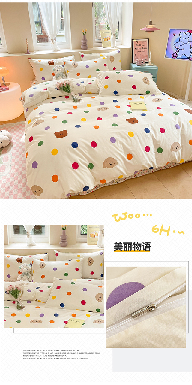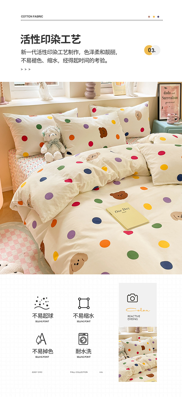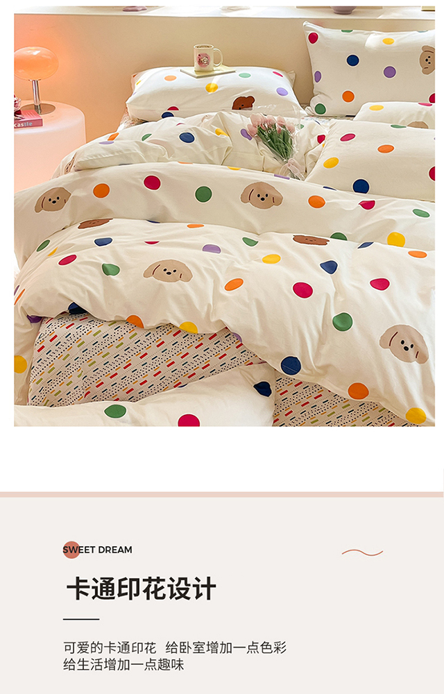 吉象家纺13070全棉四件套纯棉四件套直播小清新男孩女炫彩狗