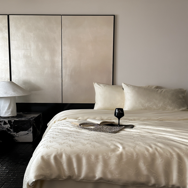 当前位置: 91家纺网 > 商品网购 > 床品套件 > 四件套 > 莱赛尔四件套 > 玉宇阁家居 2025新款60S兰精天丝大提花四件套 半岛茶-奶油色