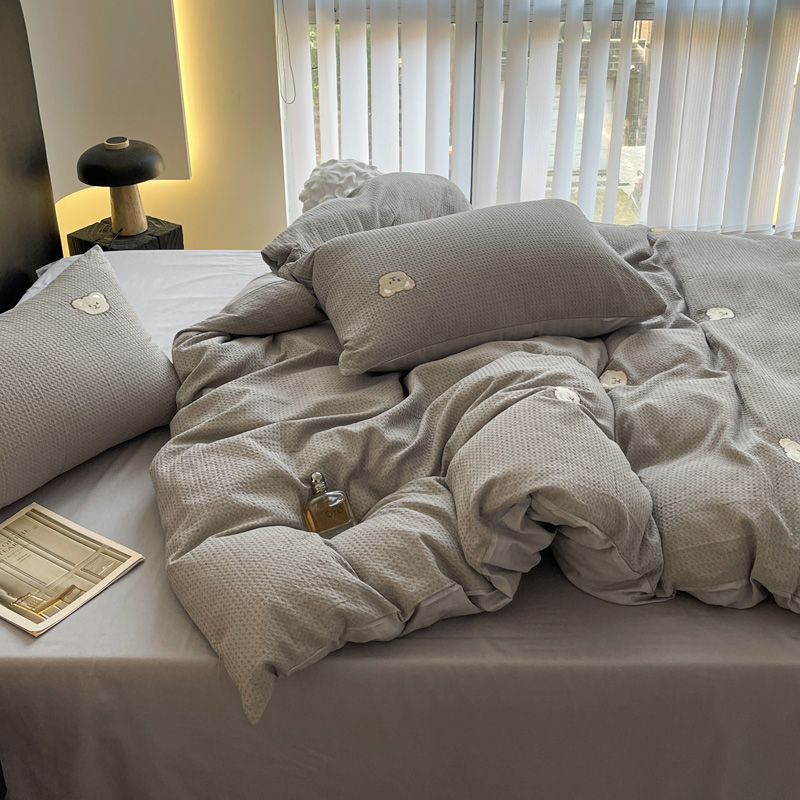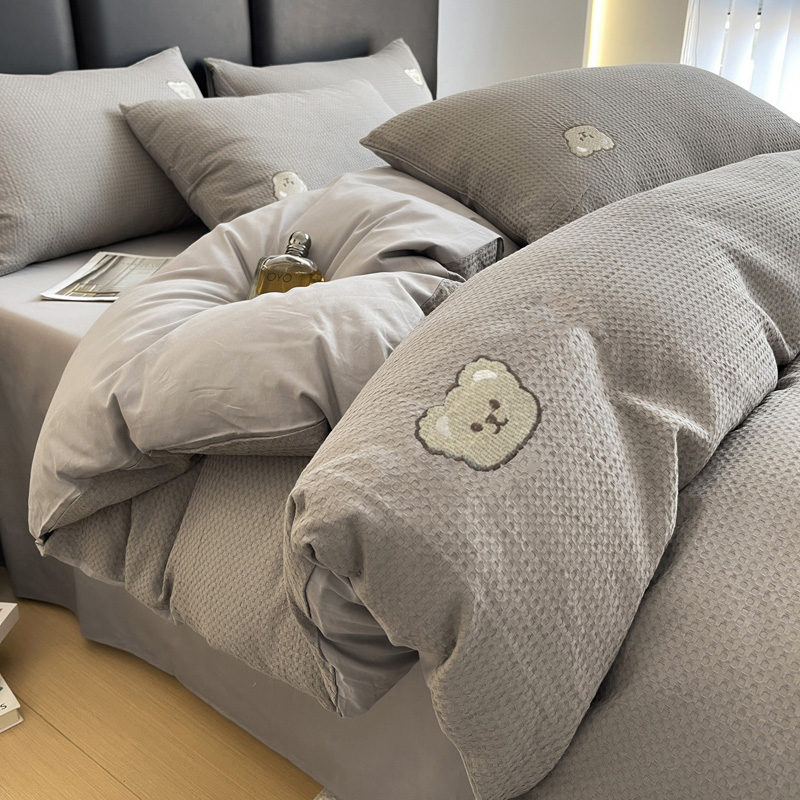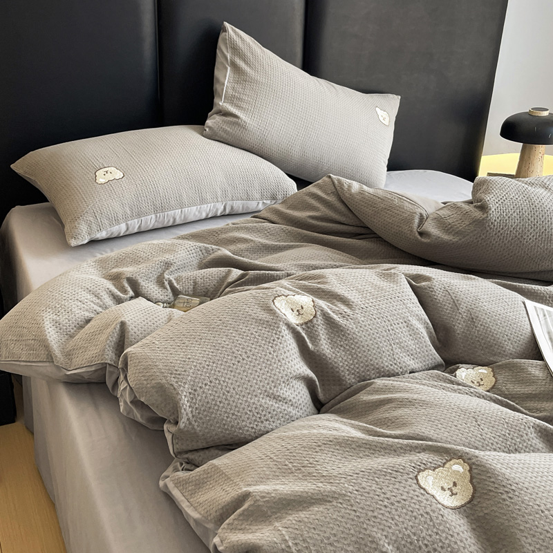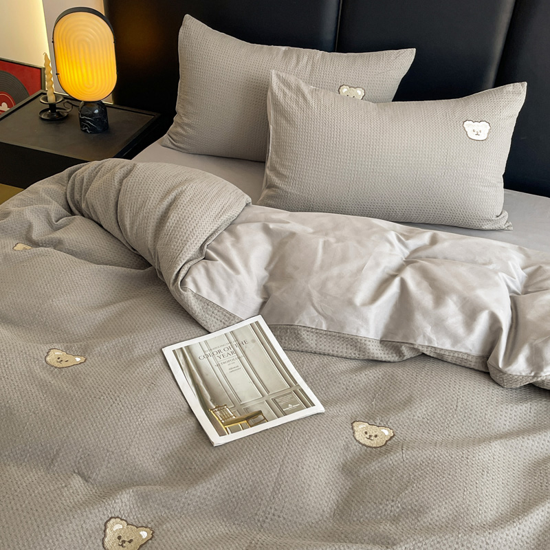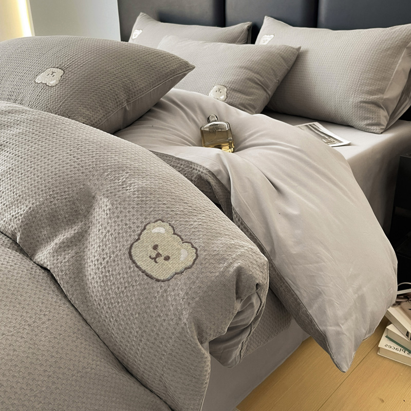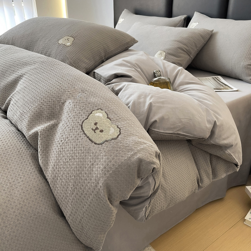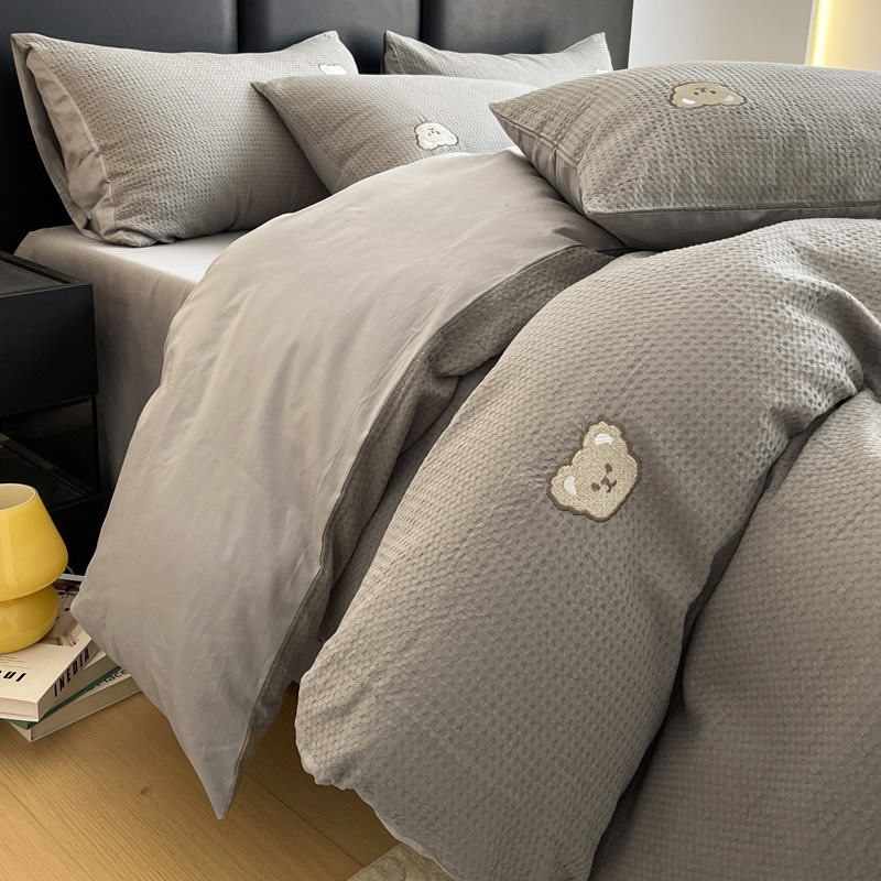 当前位置: 91家纺网 > 商品网购 > 床品套件 > 四件套 > 全棉普通四件套 > 静家居 2025新款全棉纯棉华夫格北欧小熊刺绣四件套系列-风格二 北欧小熊-浅灰