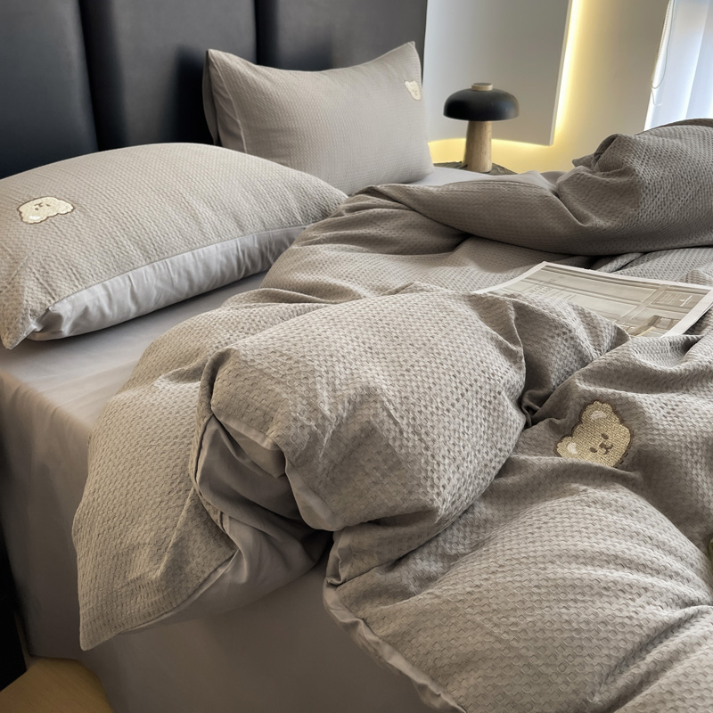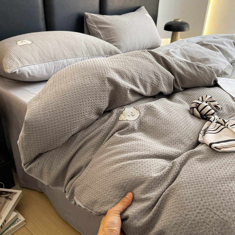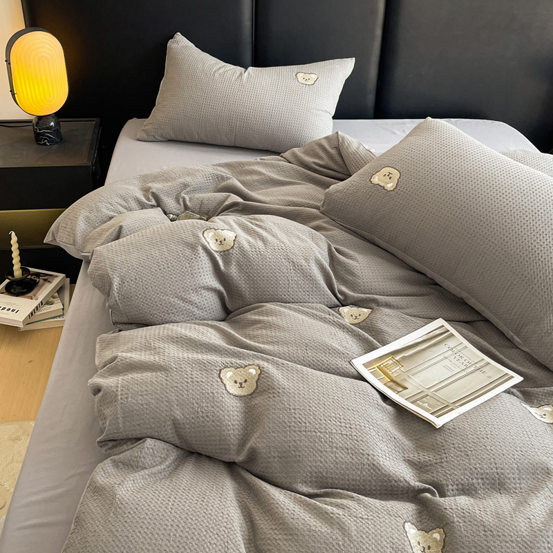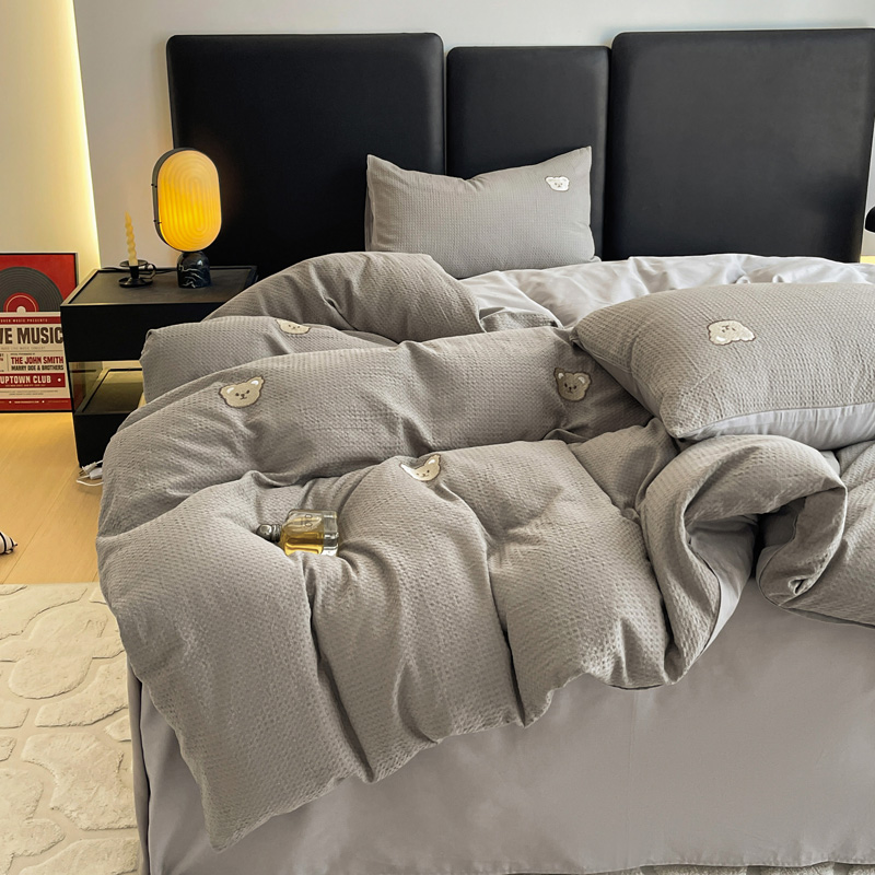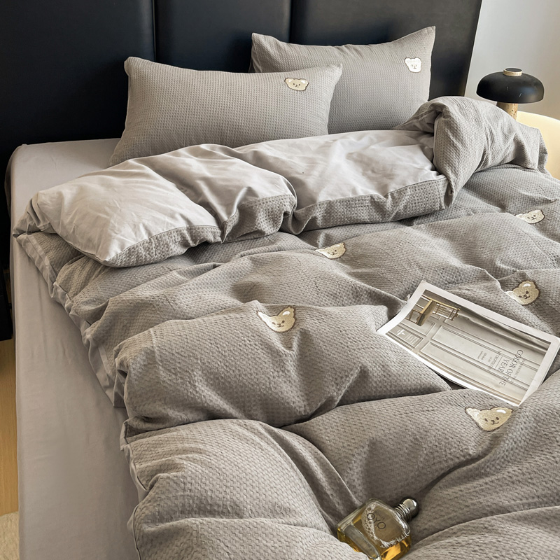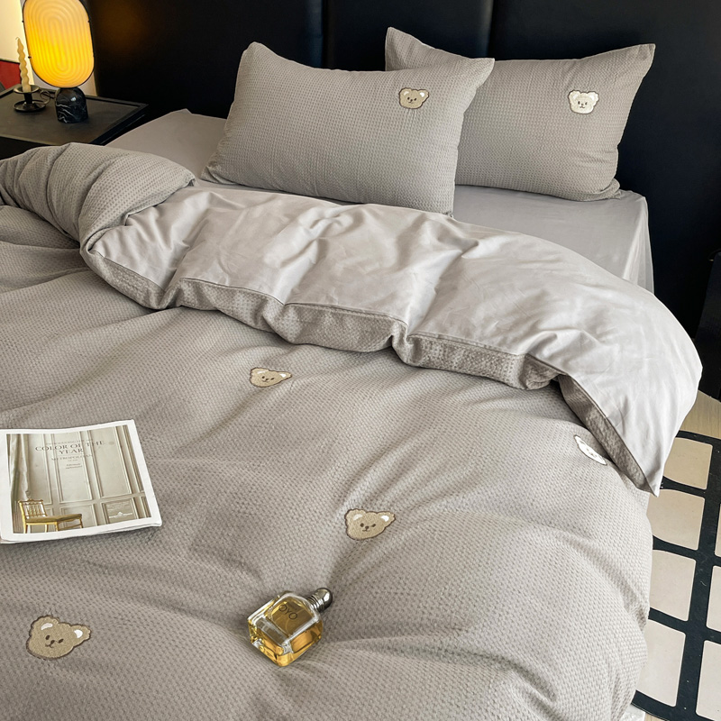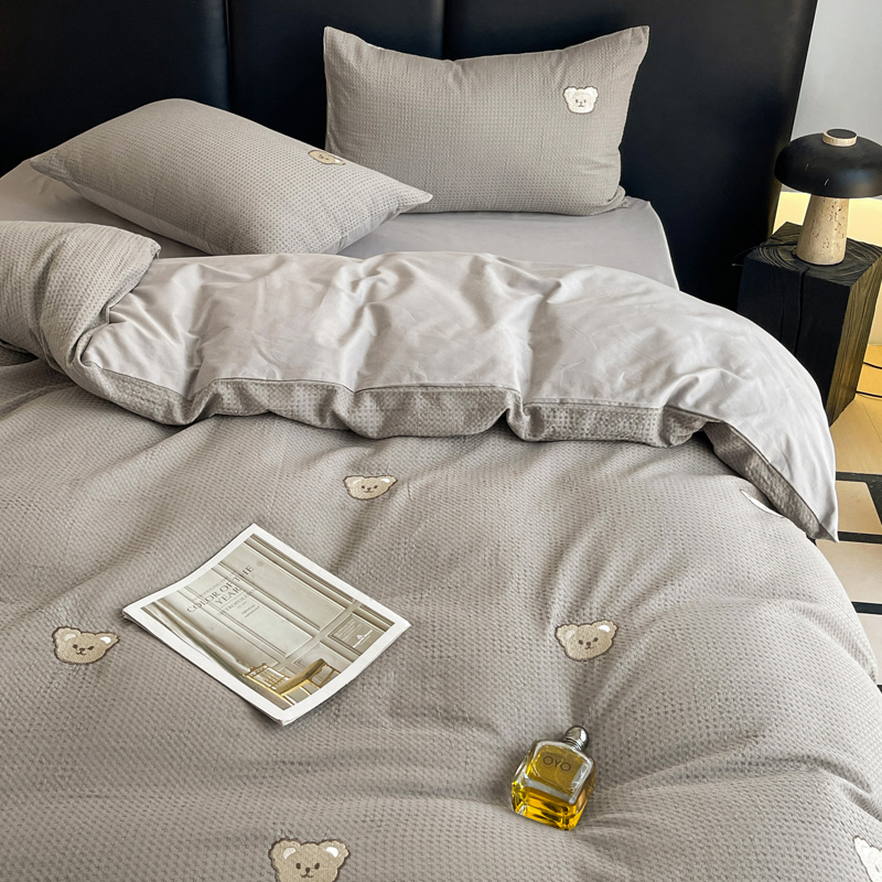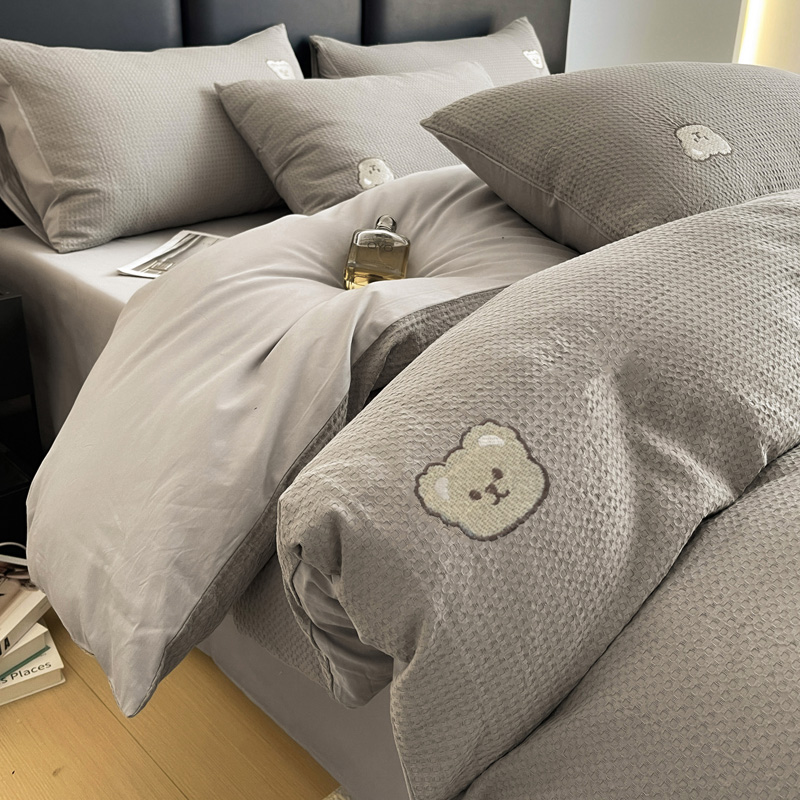 当前位置: 91家纺网 > 商品网购 > 床品套件 > 四件套 > 全棉普通四件套 > 静家居 2025新款全棉纯棉华夫格北欧小熊刺绣四件套系列-风格二 北欧小熊-浅灰