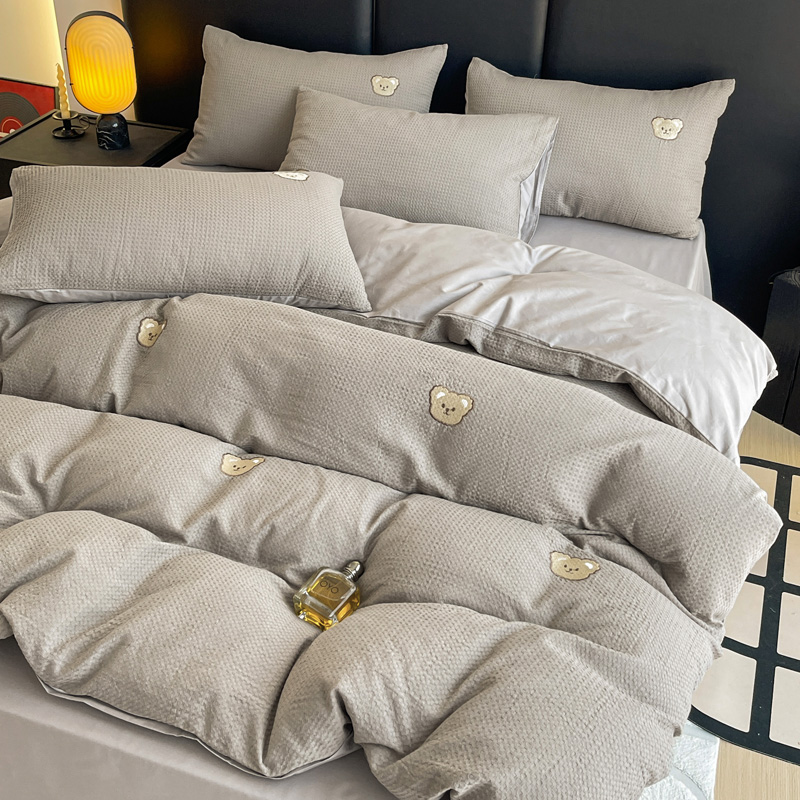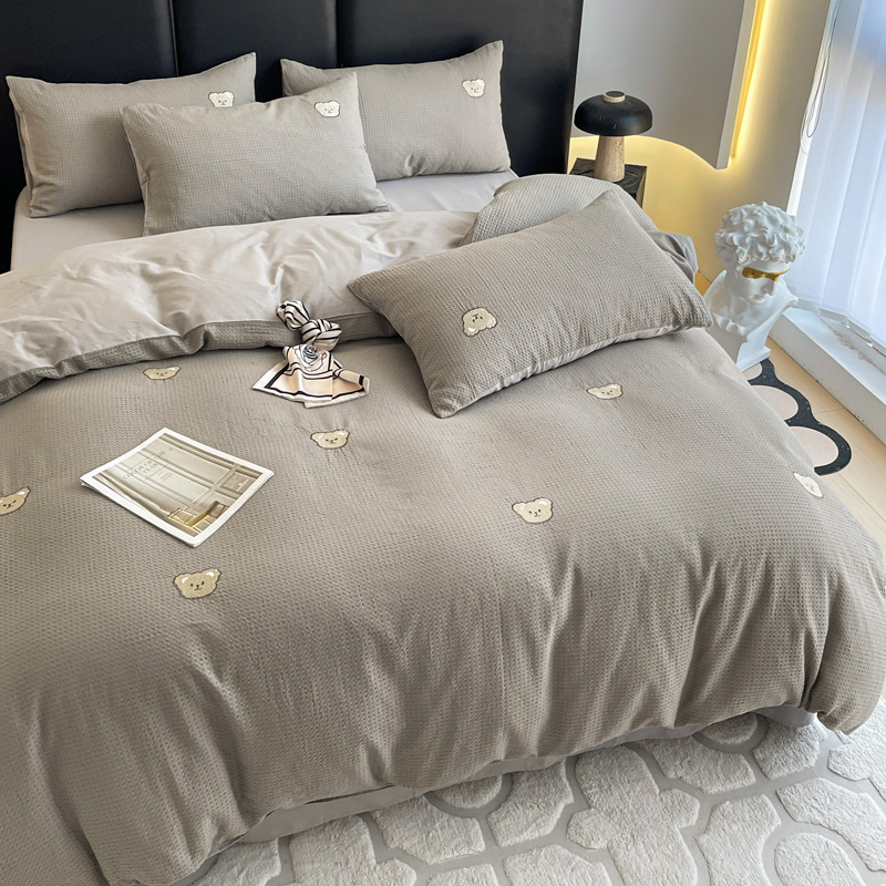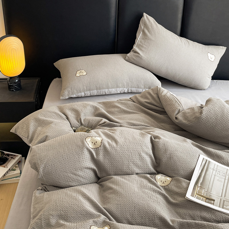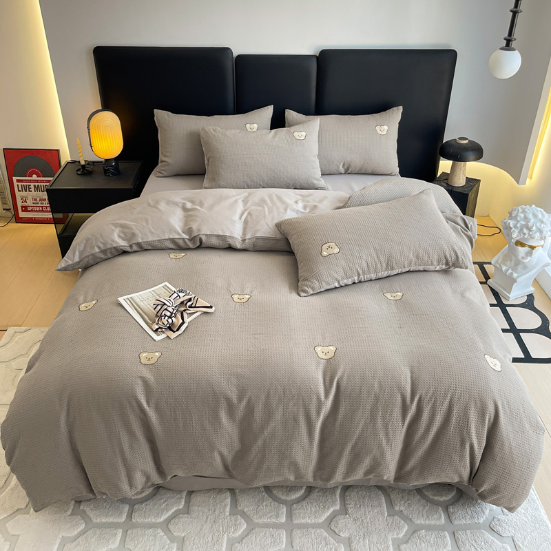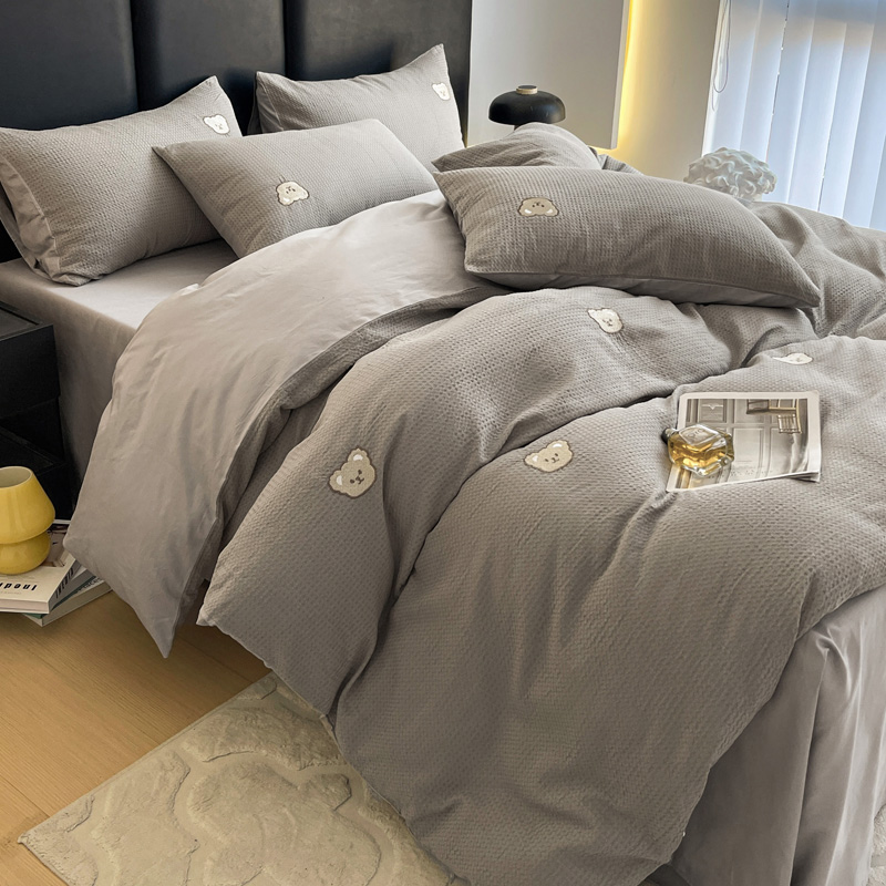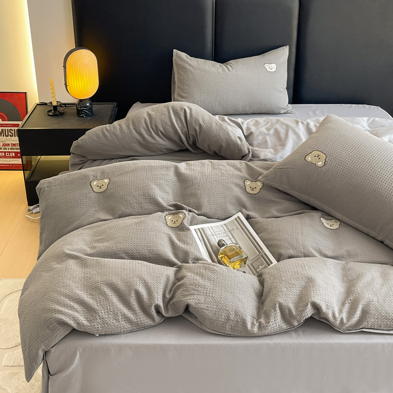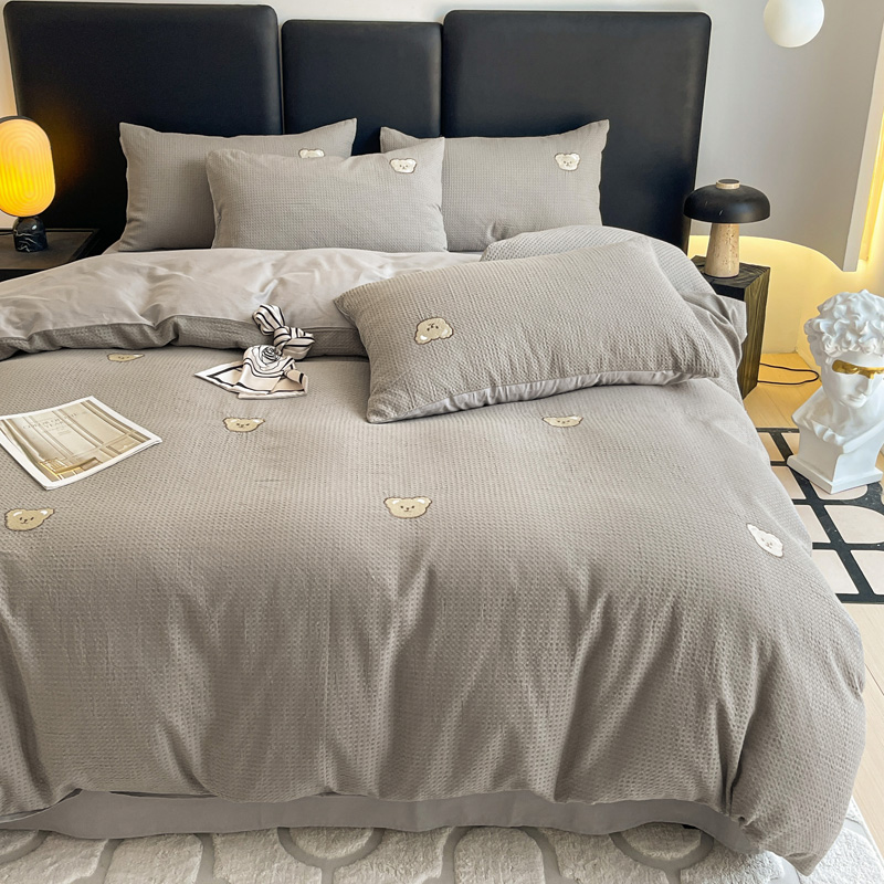 当前位置: 91家纺网 > 商品网购 > 床品套件 > 四件套 > 全棉普通四件套 > 静家居 2025新款全棉纯棉华夫格北欧小熊刺绣四件套系列-风格二 北欧小熊-浅灰