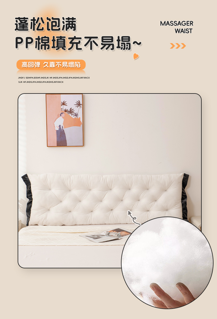 (总)碧尔家居 2025新款轻奢床上靠垫卧室床头靠枕银灰榻榻米靠背长条飘窗防撞软垫可拆洗,米黄,乳白,银灰