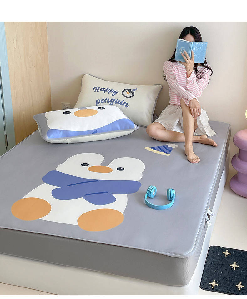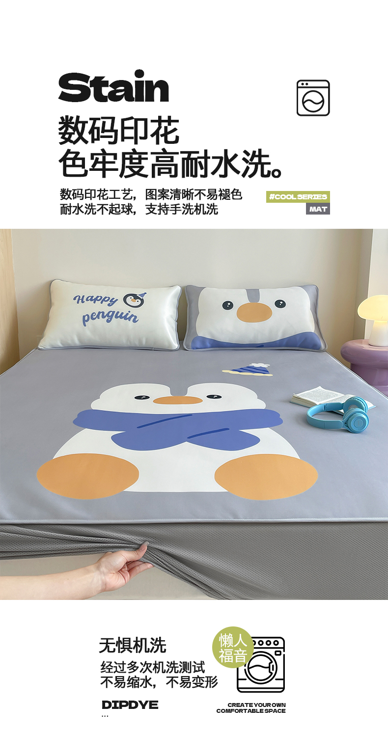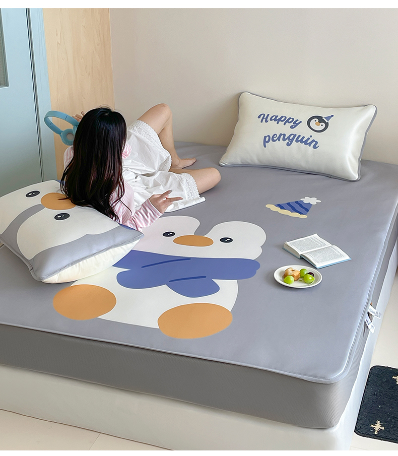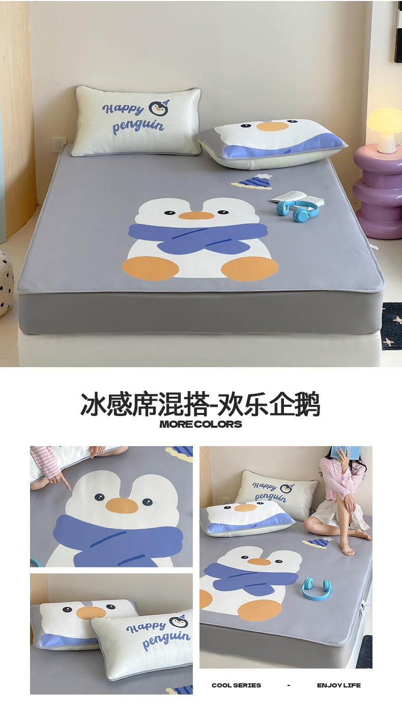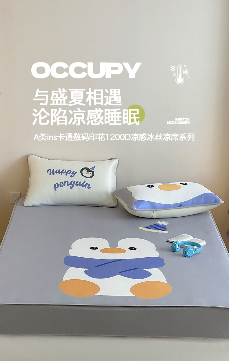 当前位置: 91家纺网 > 商品网购 > 床品套件 > 三件套 > 桃子家居 2025新款A类ins卡通数码印花1200D冰感冰丝凉席系列 冰感席混搭-欢乐企鹅