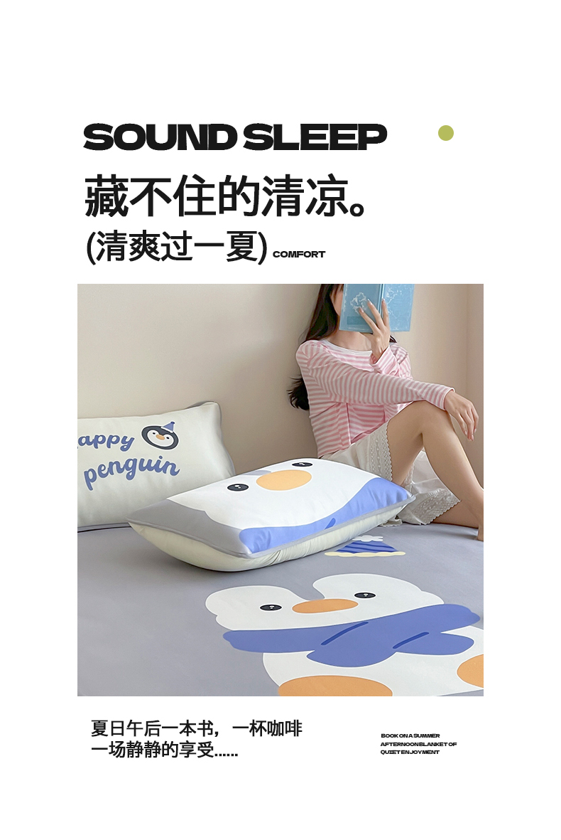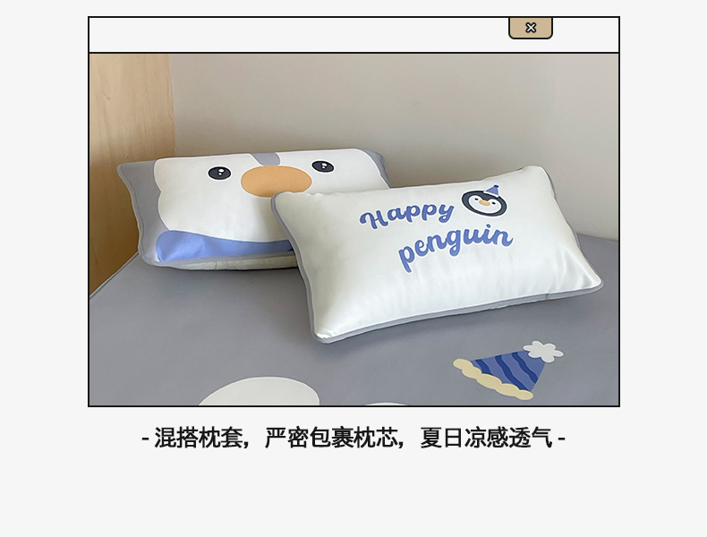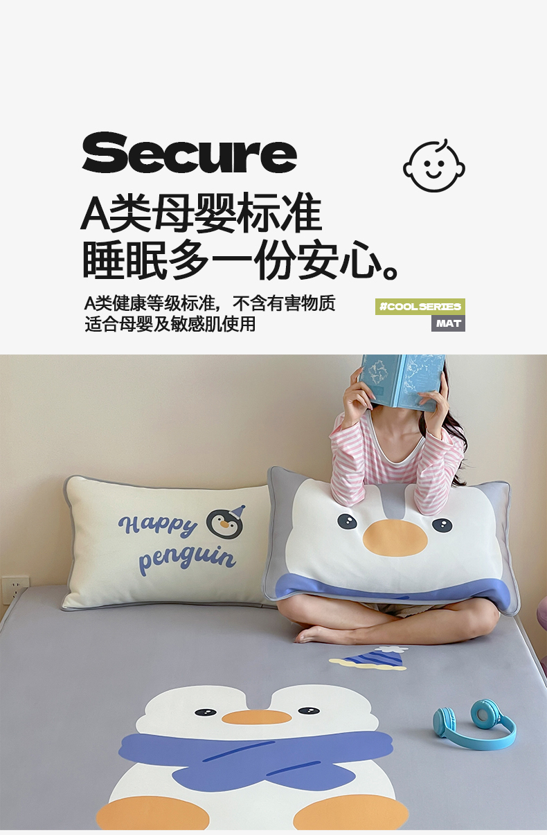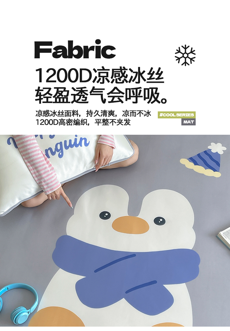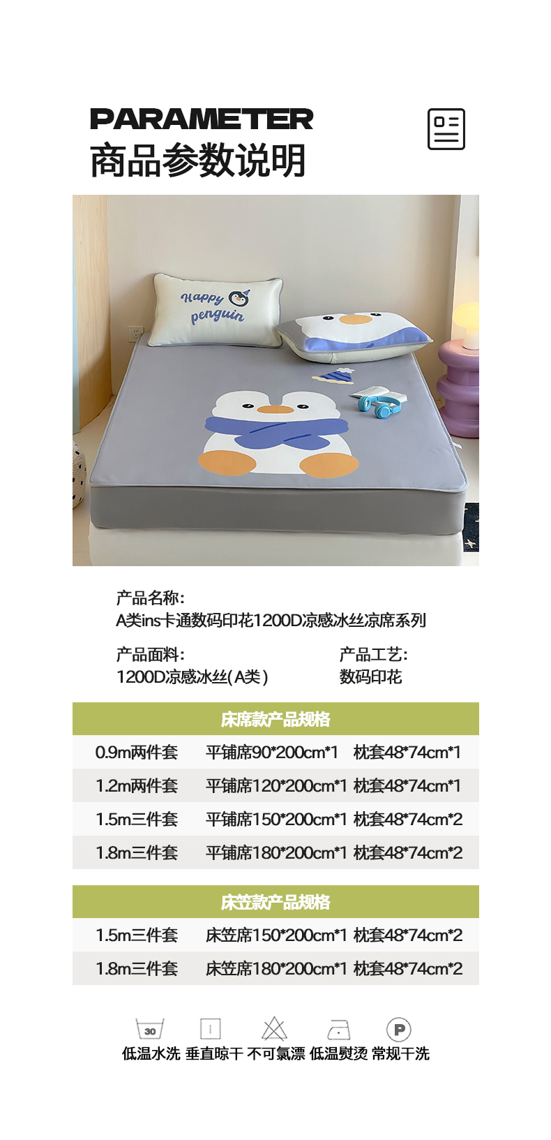 当前位置: 91家纺网 > 商品网购 > 床品套件 > 三件套 > 桃子家居 2025新款A类ins卡通数码印花1200D冰感冰丝凉席系列 冰感席混搭-欢乐企鹅