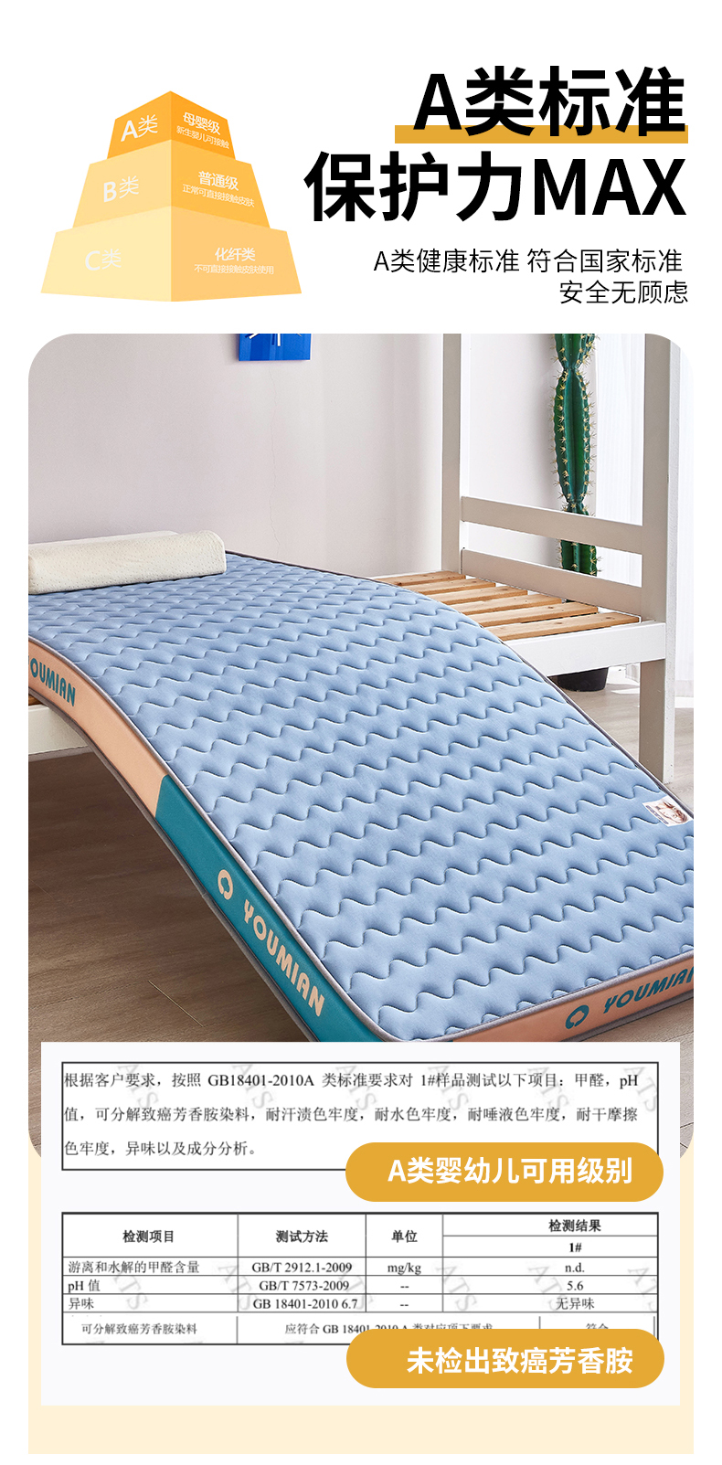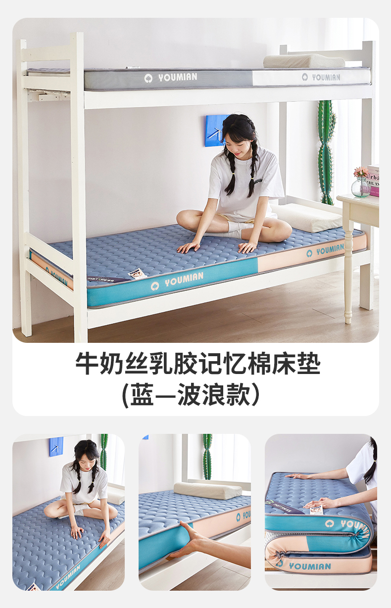 当前位置: 91家纺网 > 商品网购 > 床垫/床褥 > 优承佳生活馆(床垫) 2025新款字母牛奶丝双边乳胶床垫-学生款 立体款(字母边)-蓝-波浪