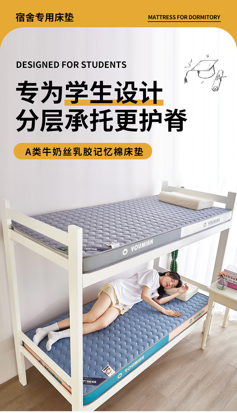 (总)优承佳生活馆(床垫) 2025新款学生床垫单边烫画款,单边款-白-灰边,单边款-白-蓝边,单边款-灰-小方格,单边款-灰-小于号