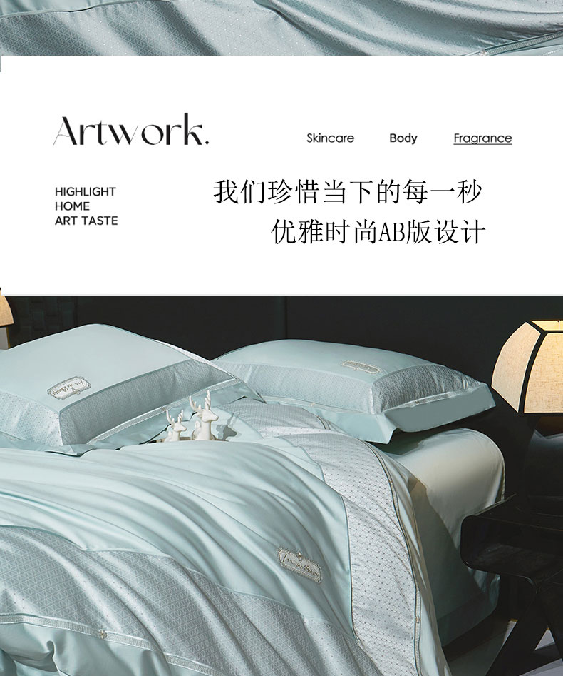 (总)蒂爵 全棉纯棉长绒棉肌理纹刺绣磨毛四件套-舒羽,舒羽-果绿,舒羽-暖橘,舒羽-水蓝