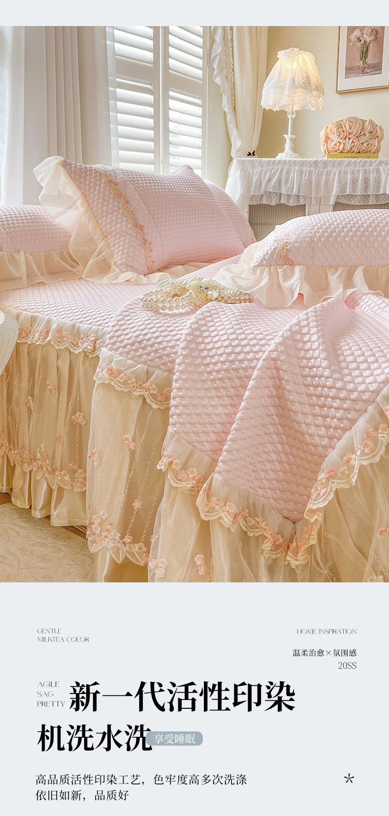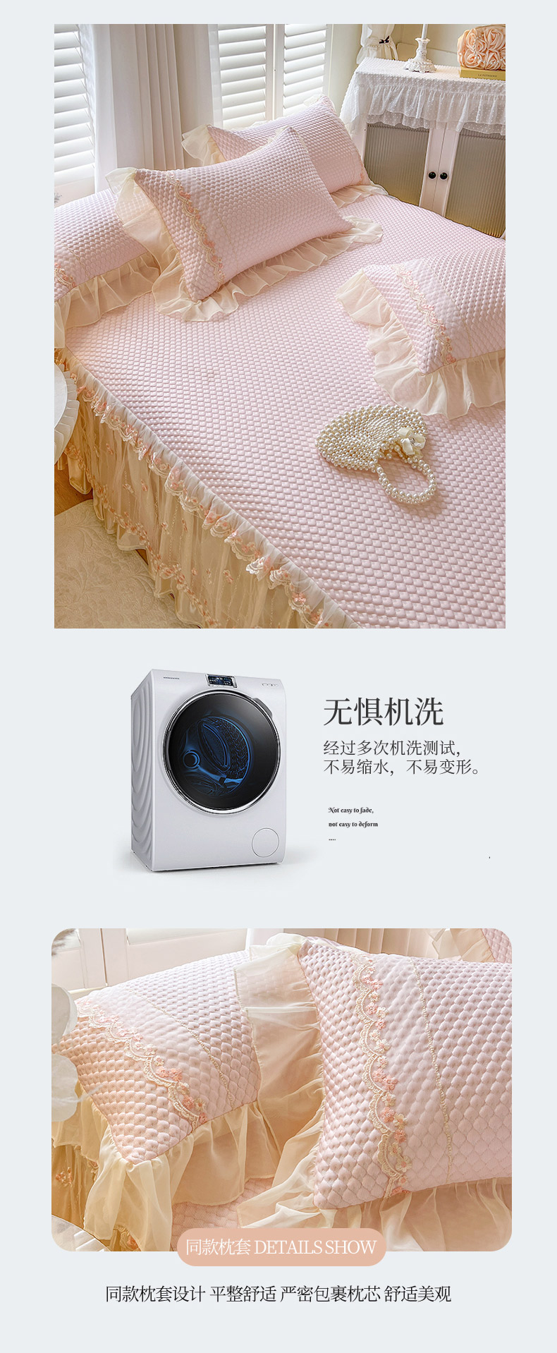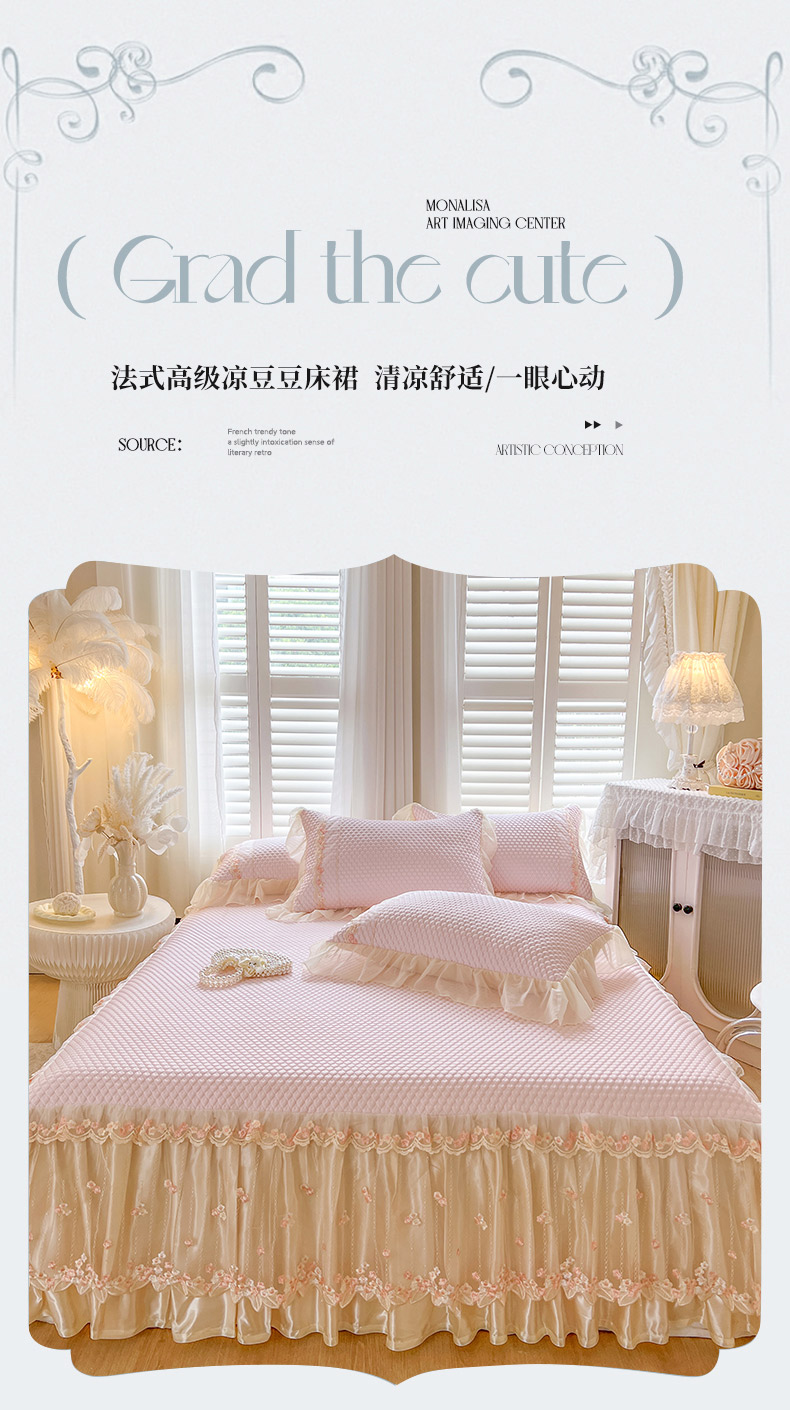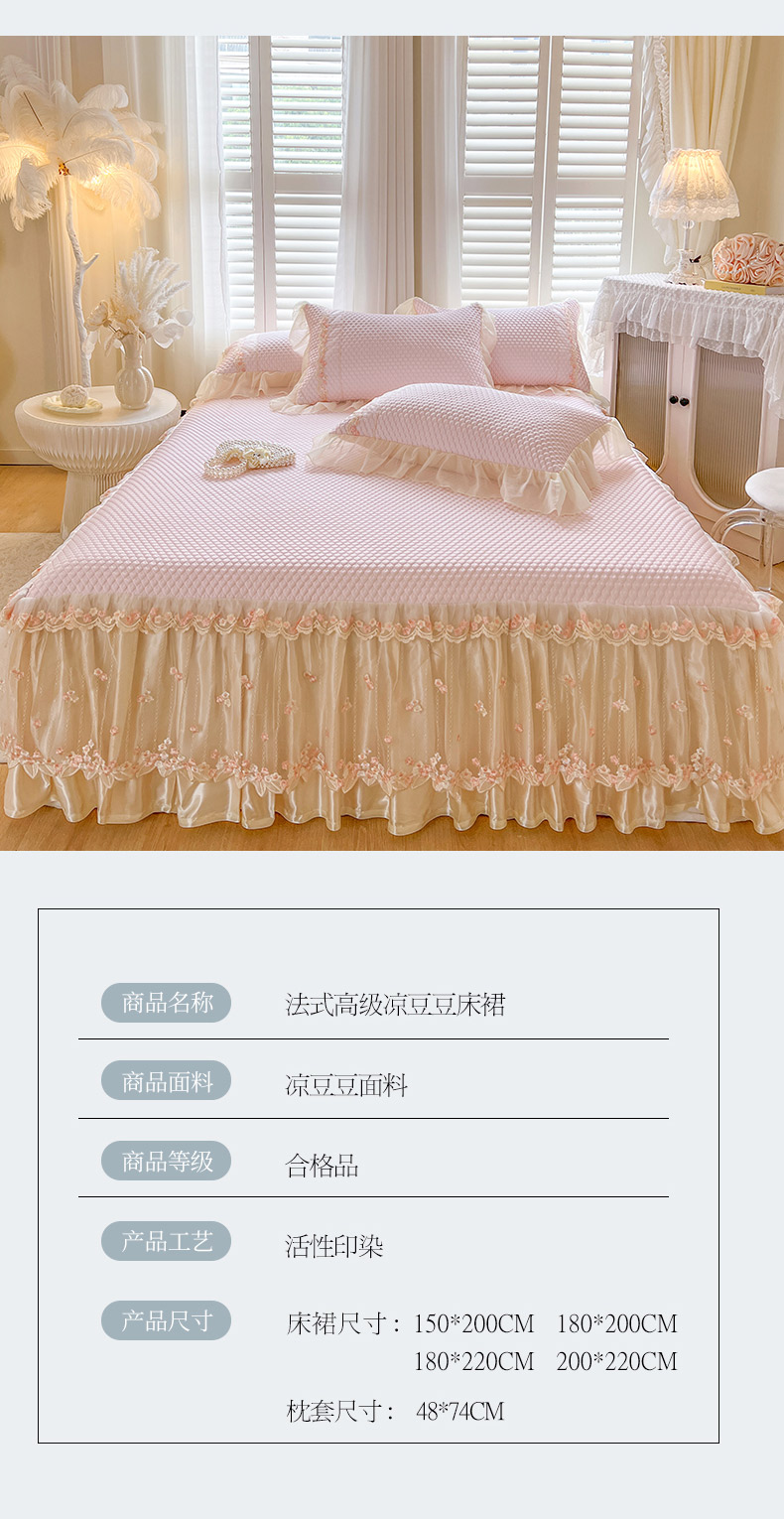 商品名称:瑞宝 2025新款法式高级凉豆豆床裙三件套-花漾(控价165起) 花漾-少女粉
