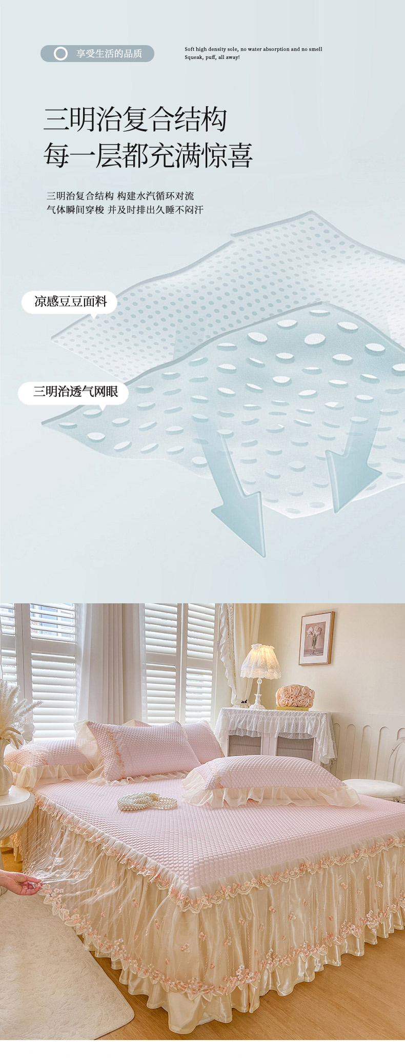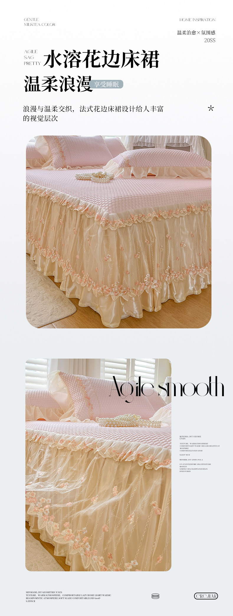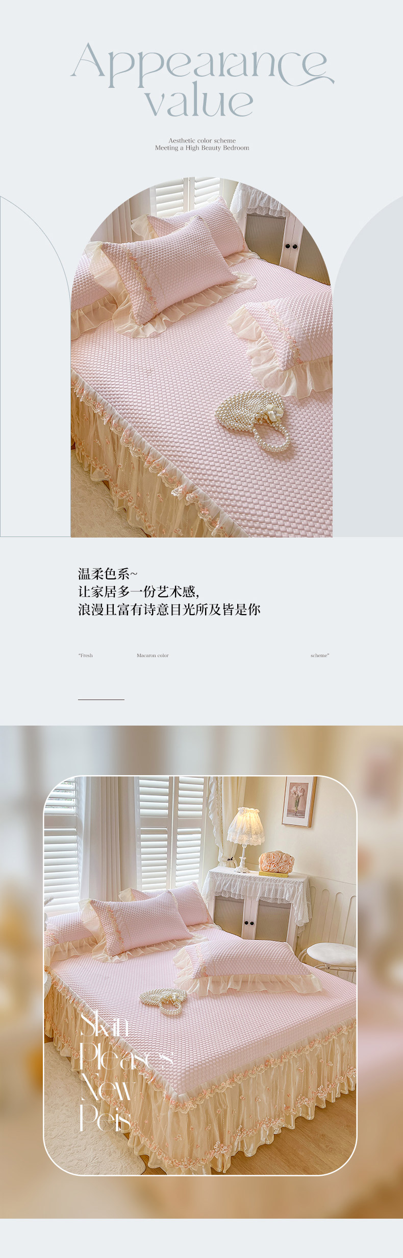 商品名称:瑞宝 2025新款法式高级凉豆豆床裙三件套-花漾(控价165起) 花漾-少女粉