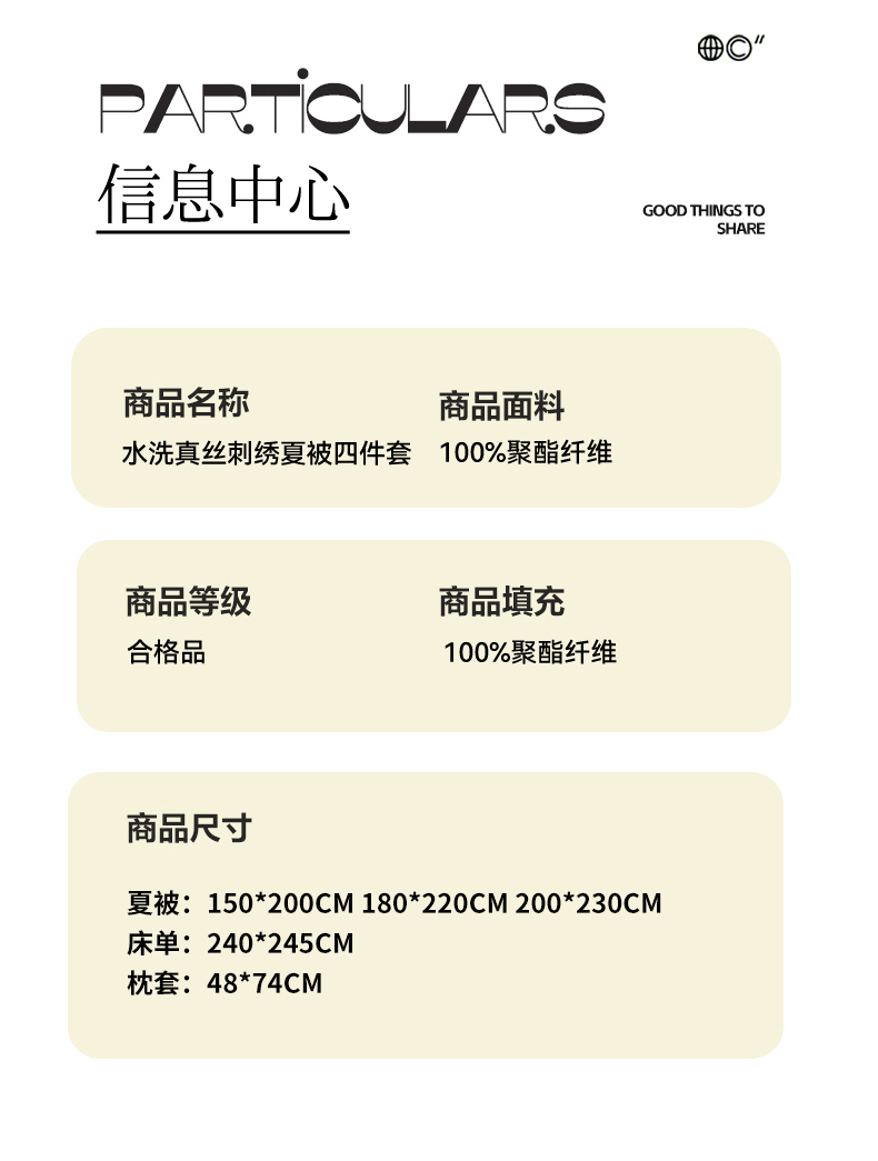 200x230cm夏被四件套 | ¥75.00 |
