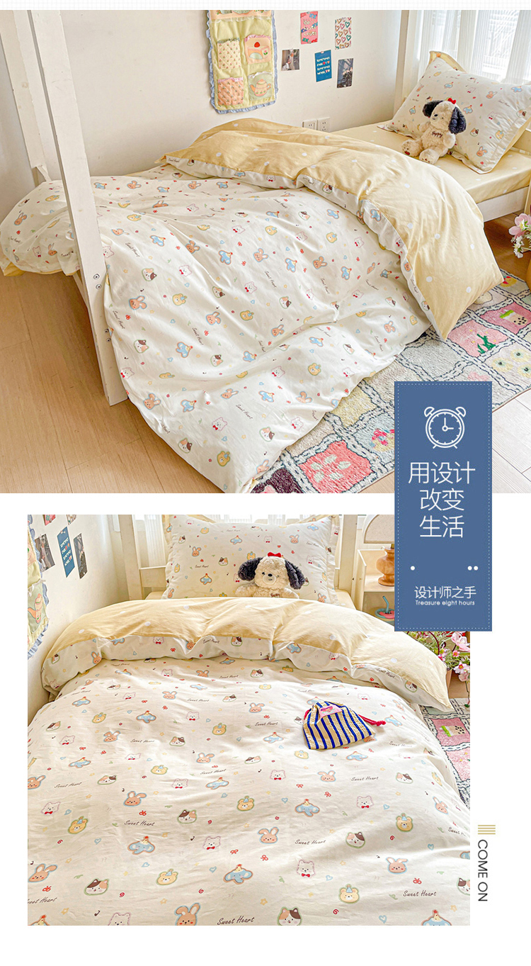 卡普二店 2024新款爆款加厚卡通小清新全棉纯棉学生宿舍三件套床笠隔天可拿 萌宠国度