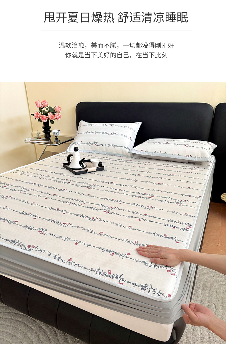 商品名称:绒艺席业 2025新款赫本风印花凉席席子系列床笠款 昨日情书
