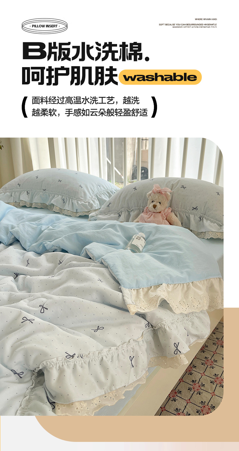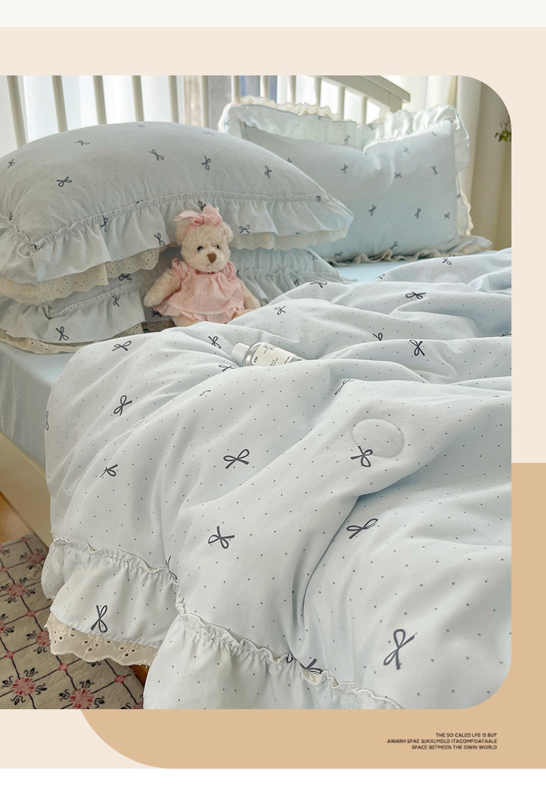 当前位置: 91家纺网 > 商品网购 > 床品套件 > 四件套 > 夏被四件套 > 轻奢坊 2025新款水洗棉双层纱双层花边夏被夏凉被空调被四件套 夏被-蓝结