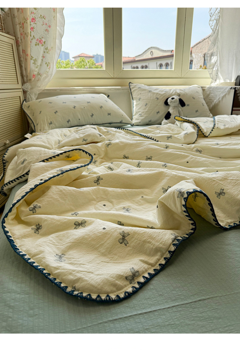 当前位置: 91家纺网 > 商品网购 > 床品套件 > 四件套 > 夏被四件套 > 星巴k家纺 2025新款春夏云感双层纱A类母婴级三角针夏被贝壳边夏凉被贝壳绣【可提供买家秀】 贝壳绣-蝴蝶结蓝