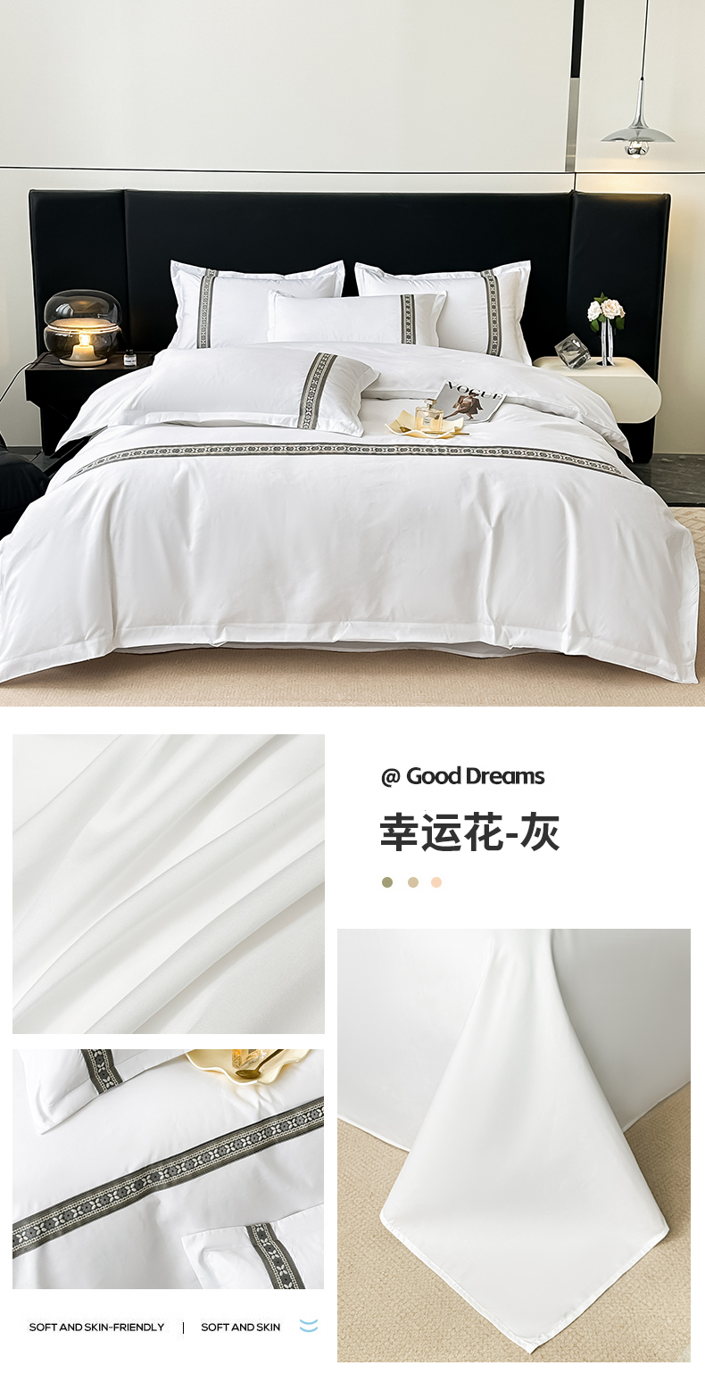 当前位置: 91家纺网 > 商品网购 > 床品套件 > 四件套 > 普通磨毛四件套 > 梦庭帛美 2025新款宾馆刺绣四件套 幸运花-灰