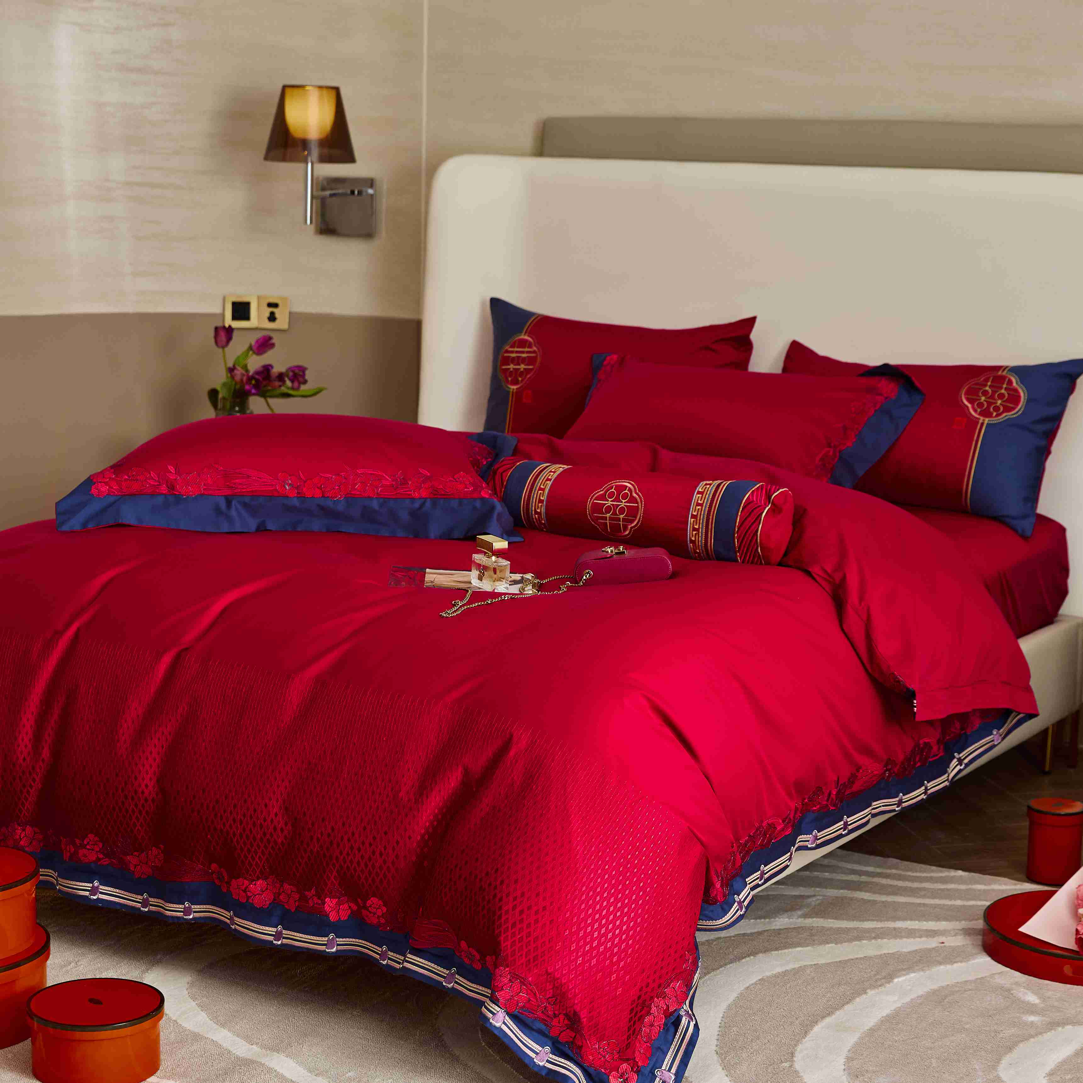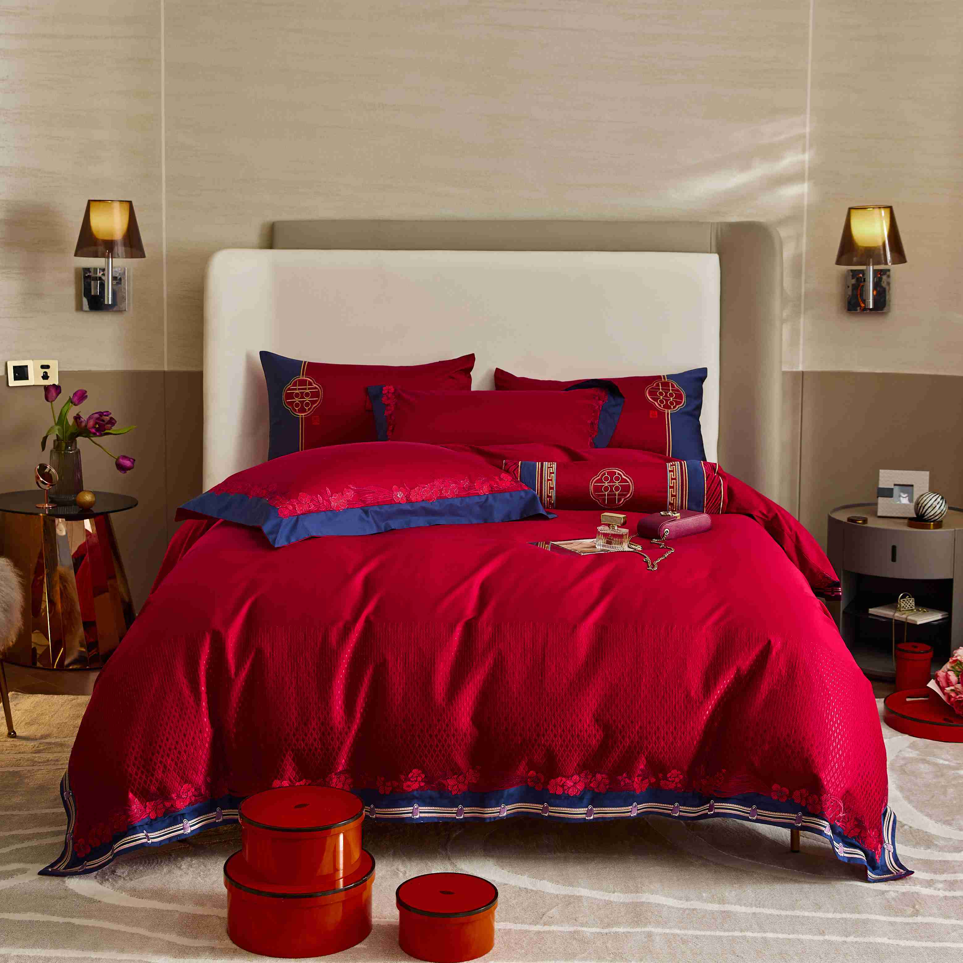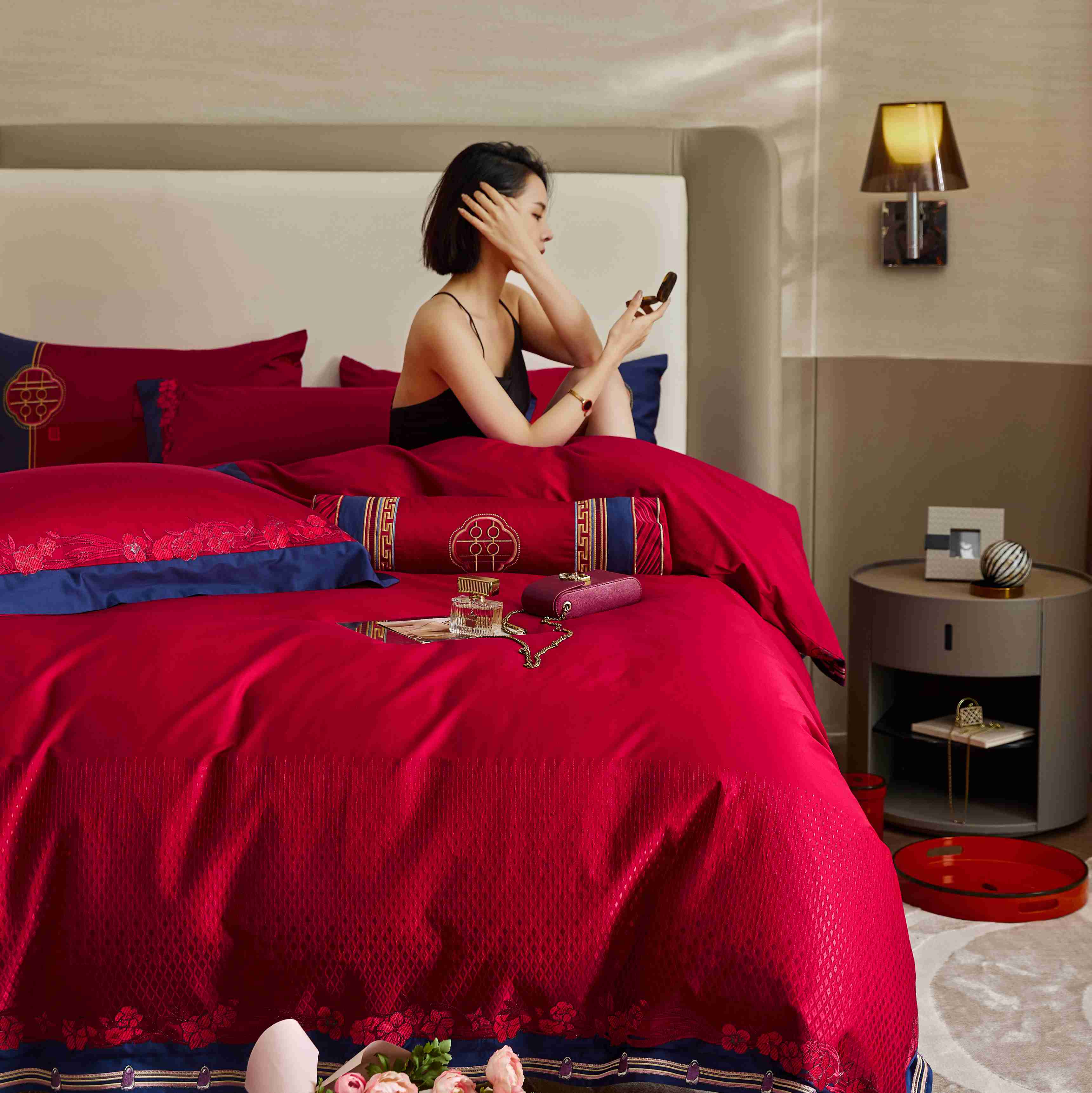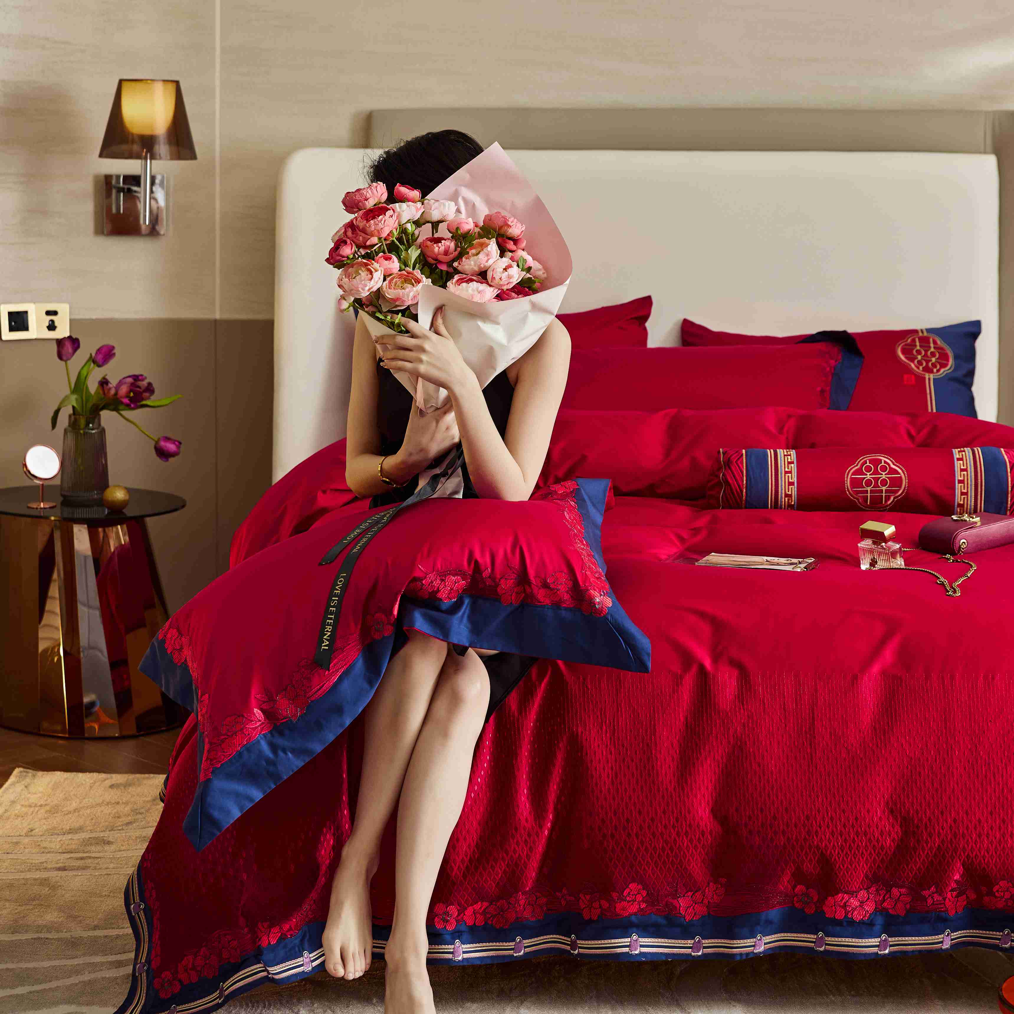 (总)涞澳家纺 2026新款全棉纯棉色织提花(婚庆)四件套,赤韵花影,绯花简语,吉庆红韵,轻红漫花,朱砂暖眠
