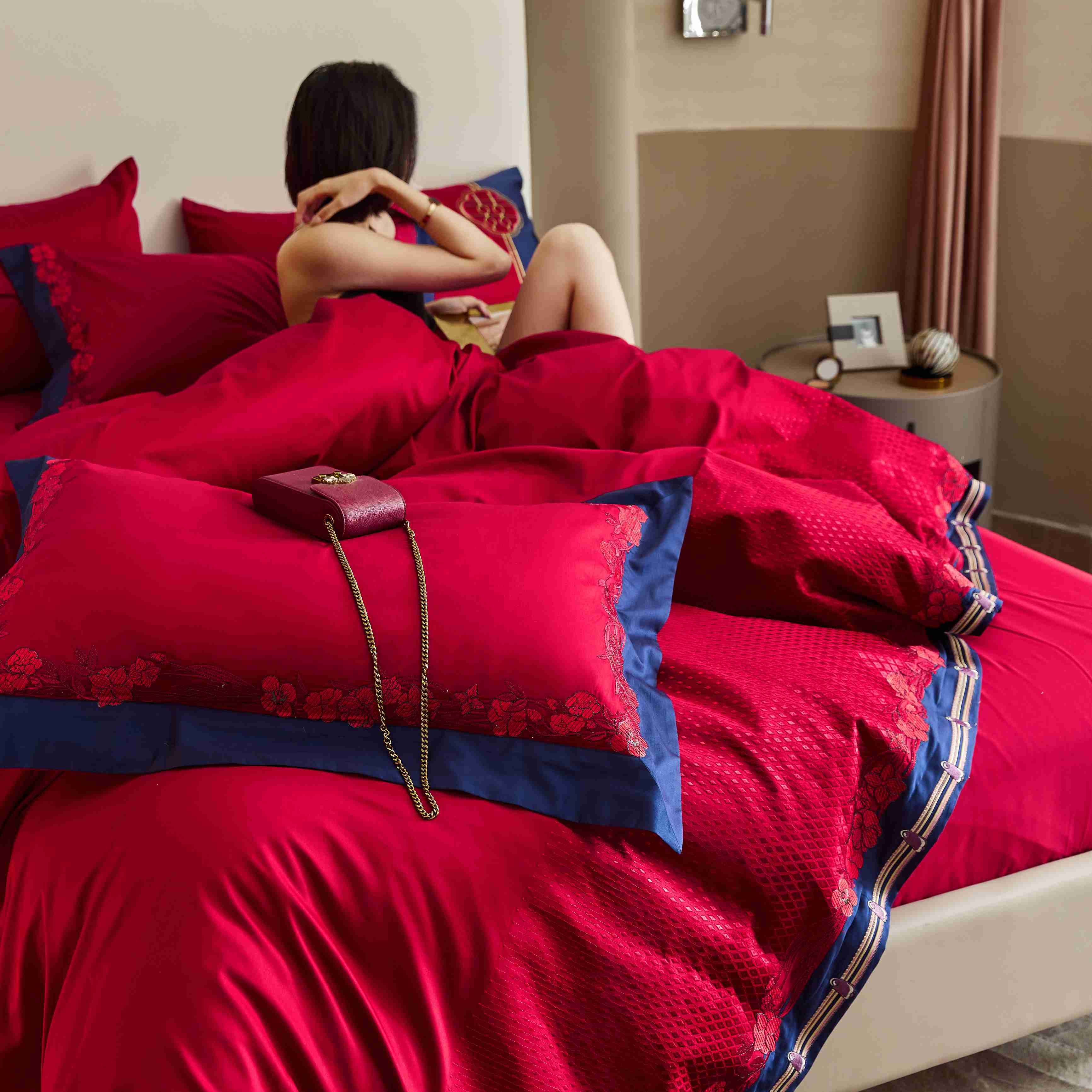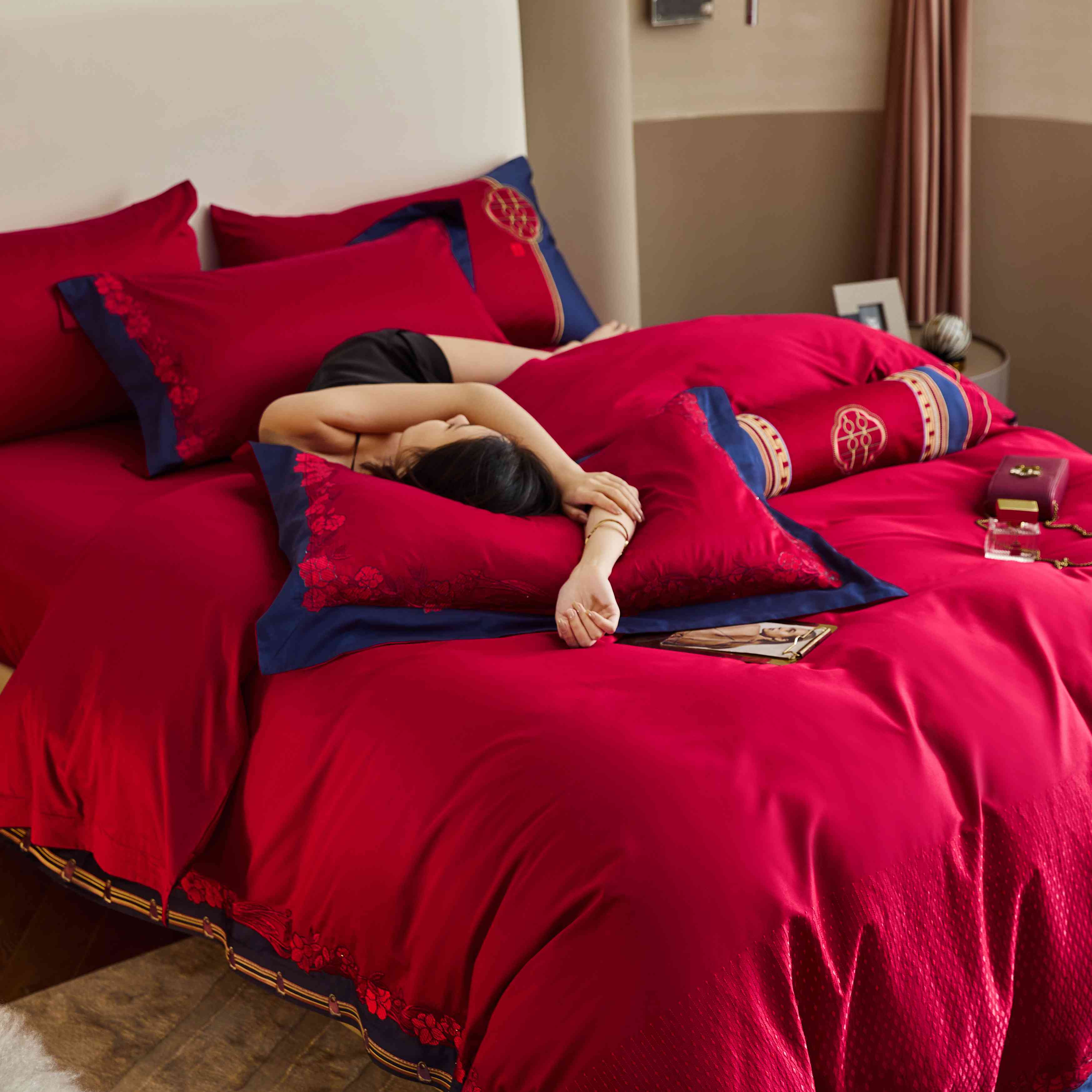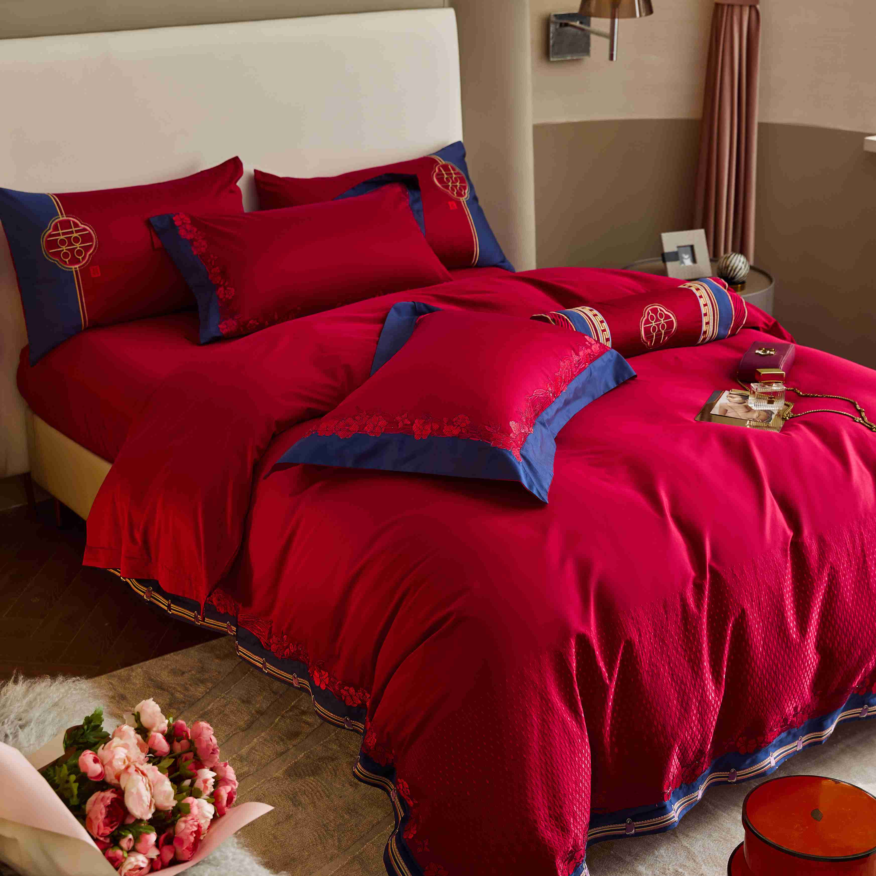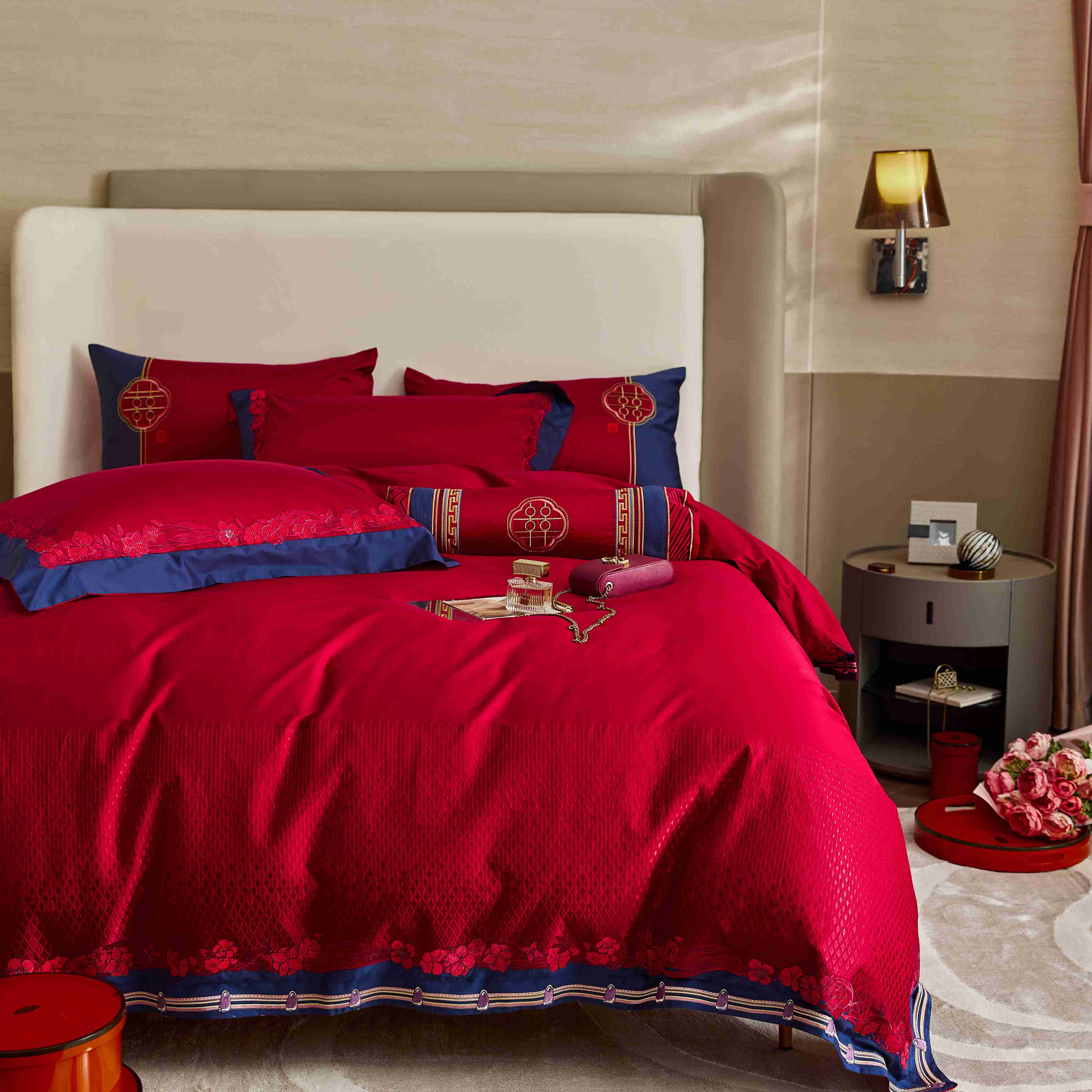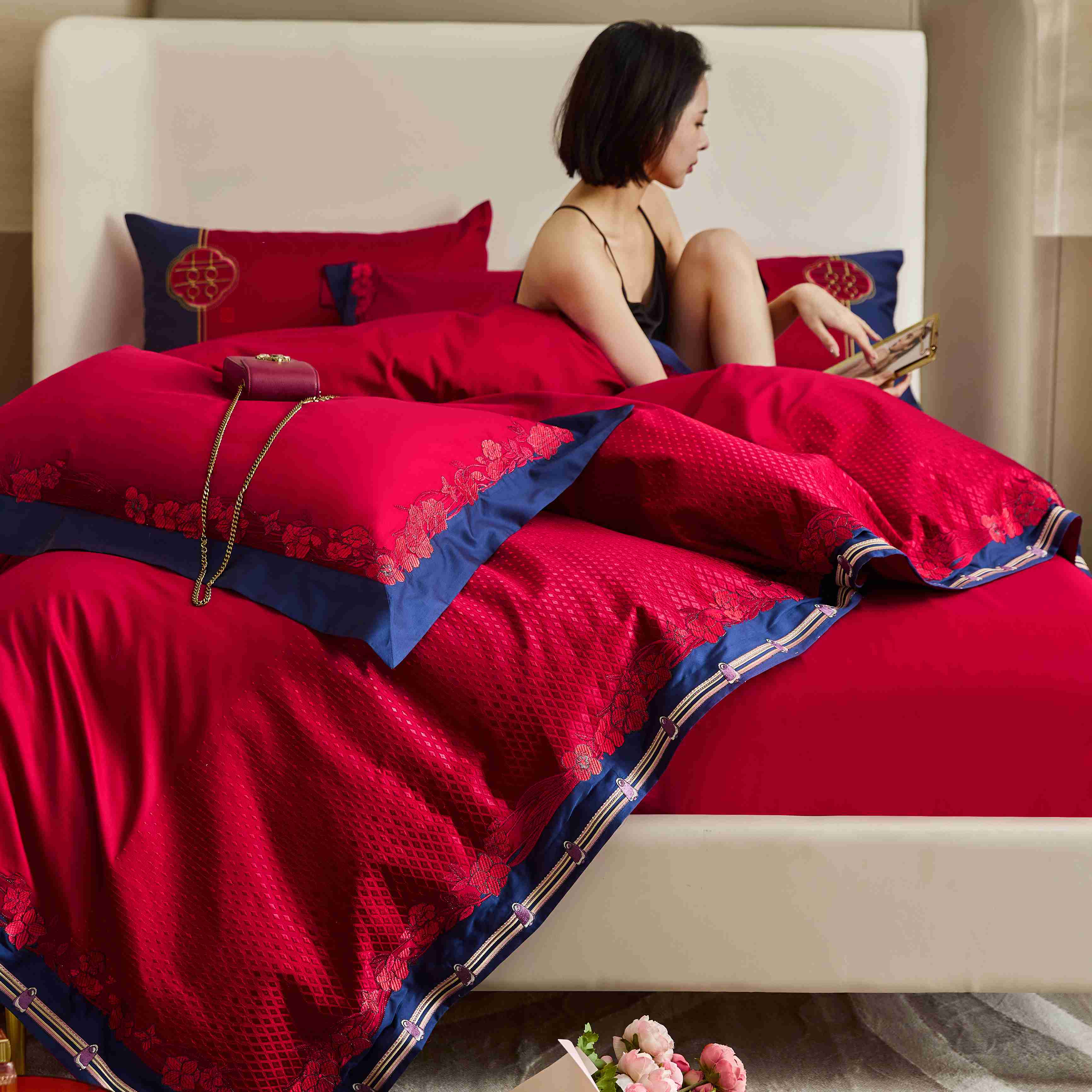 (总)涞澳家纺 2026新款全棉纯棉色织提花(婚庆)四件套,赤韵花影,绯花简语,吉庆红韵,轻红漫花,朱砂暖眠