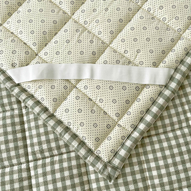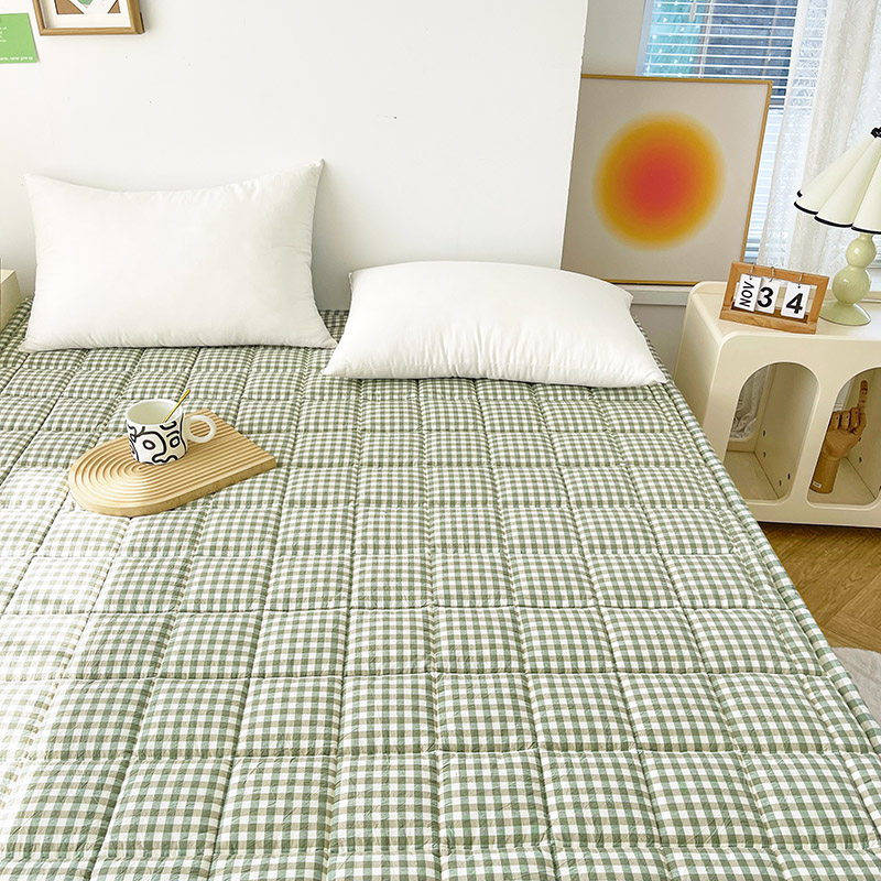 • 91家纺网 家纺一手货源 找家纺 丽诺床垫 2025新款亲肤舒适全棉纯棉色织棉花床褥床垫 绿小格