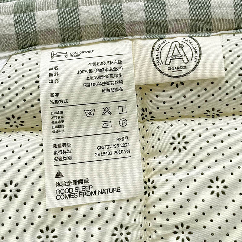 当前位置: 91家纺网 > 商品网购 > 床垫/床褥 > 丽诺床垫 2025新款亲肤舒适全棉纯棉色织棉花床褥床垫 绿小格