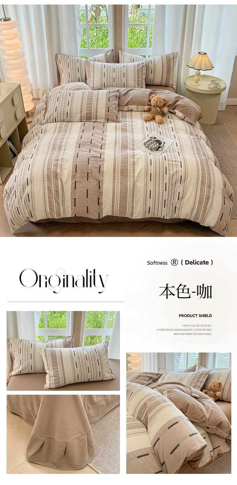 当前位置: 91家纺网 > 商品网购 > 床品套件 > 四件套 > 全棉普通四件套 > 米可2025春夏新款A类色织华夫格提花全棉四件套 本色咖