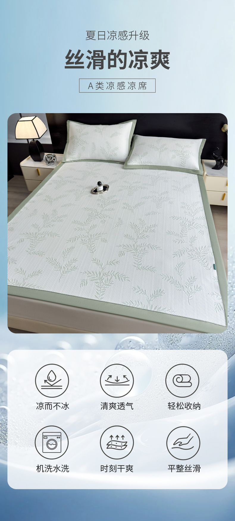 商品名称:席世家 2025新款A类凉感冰豆豆凉席-花卉卡通系列 绿意