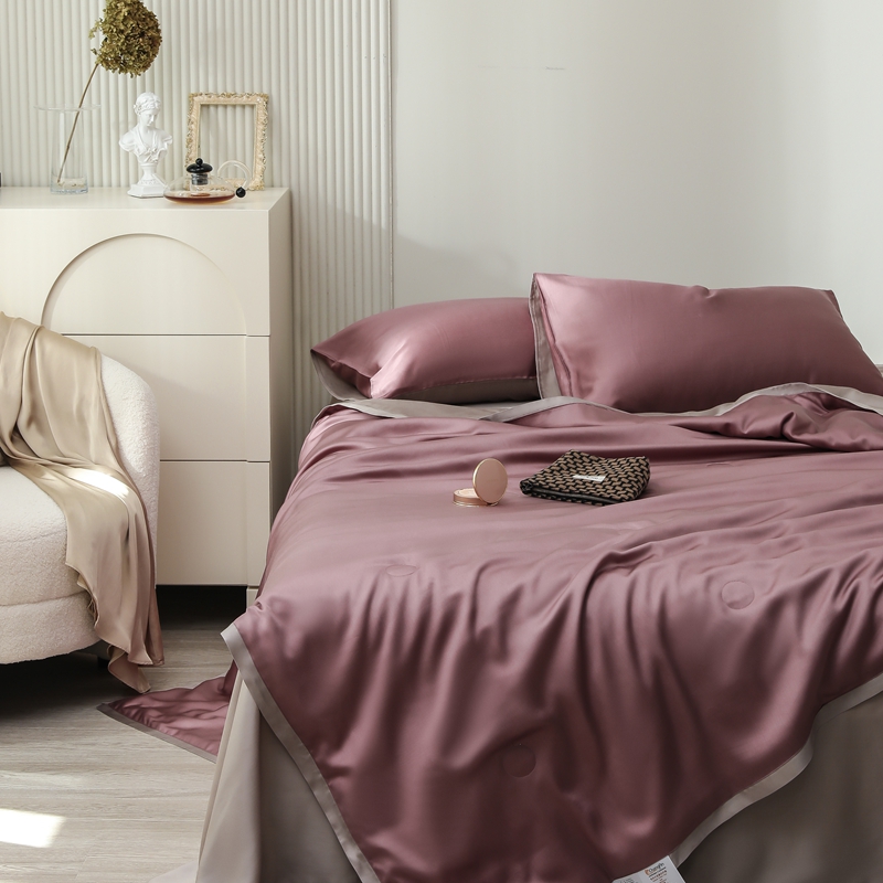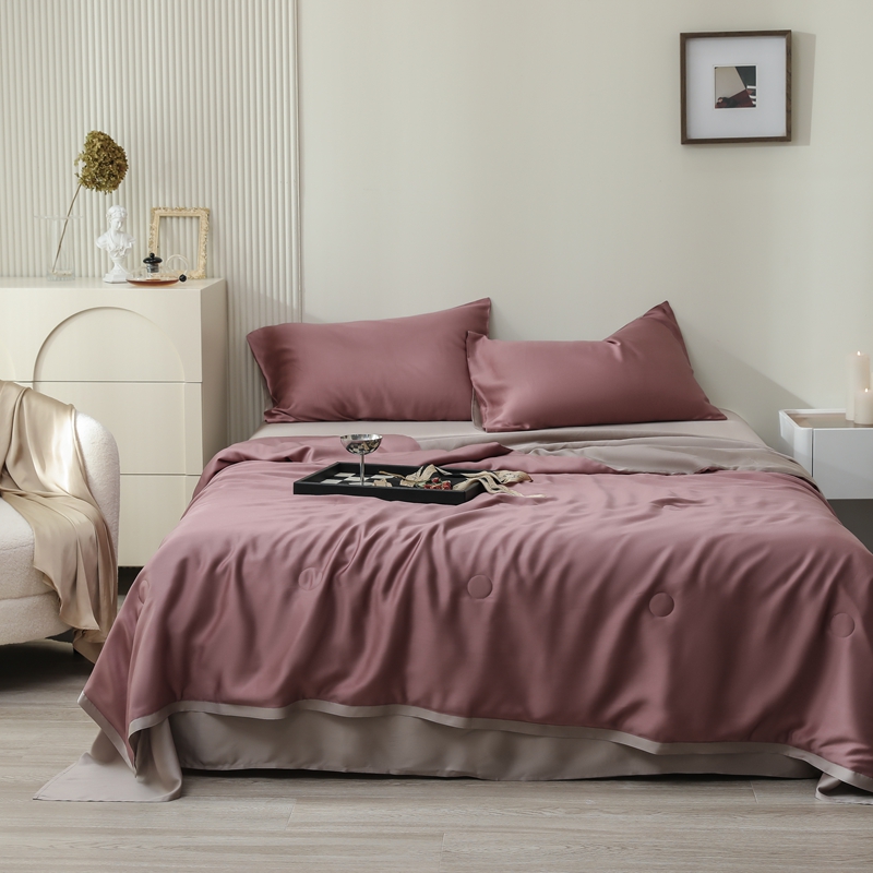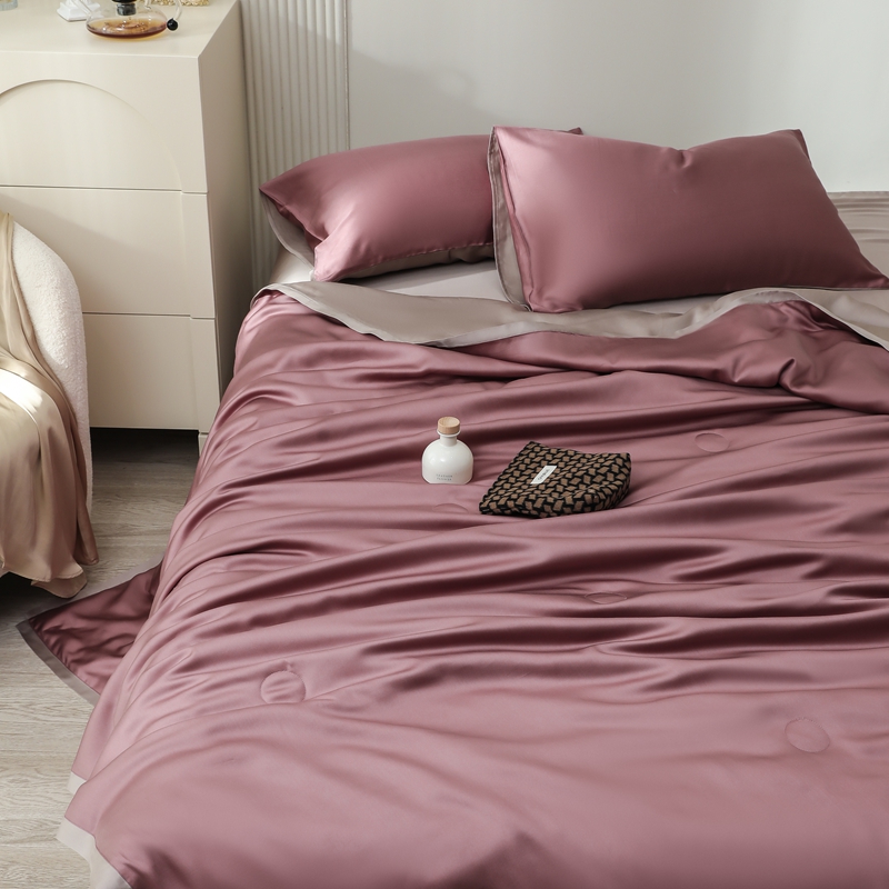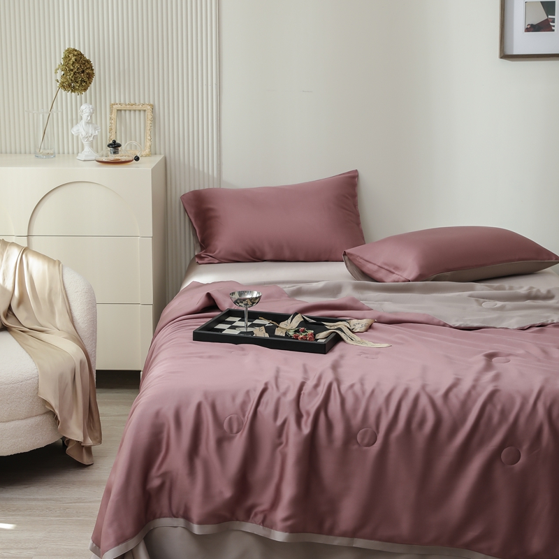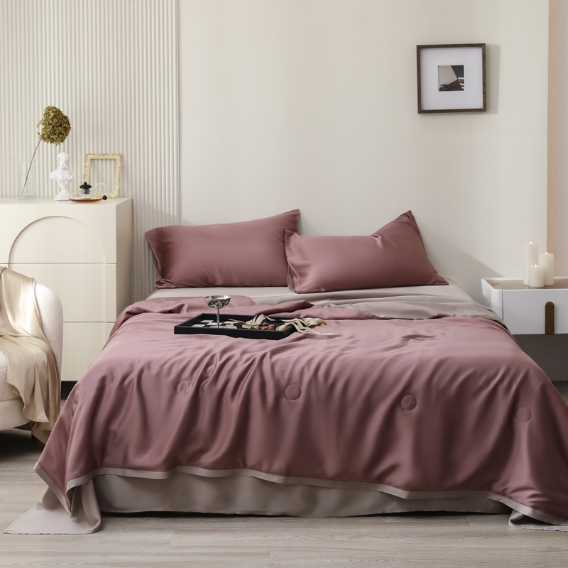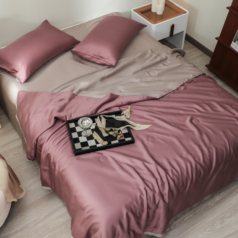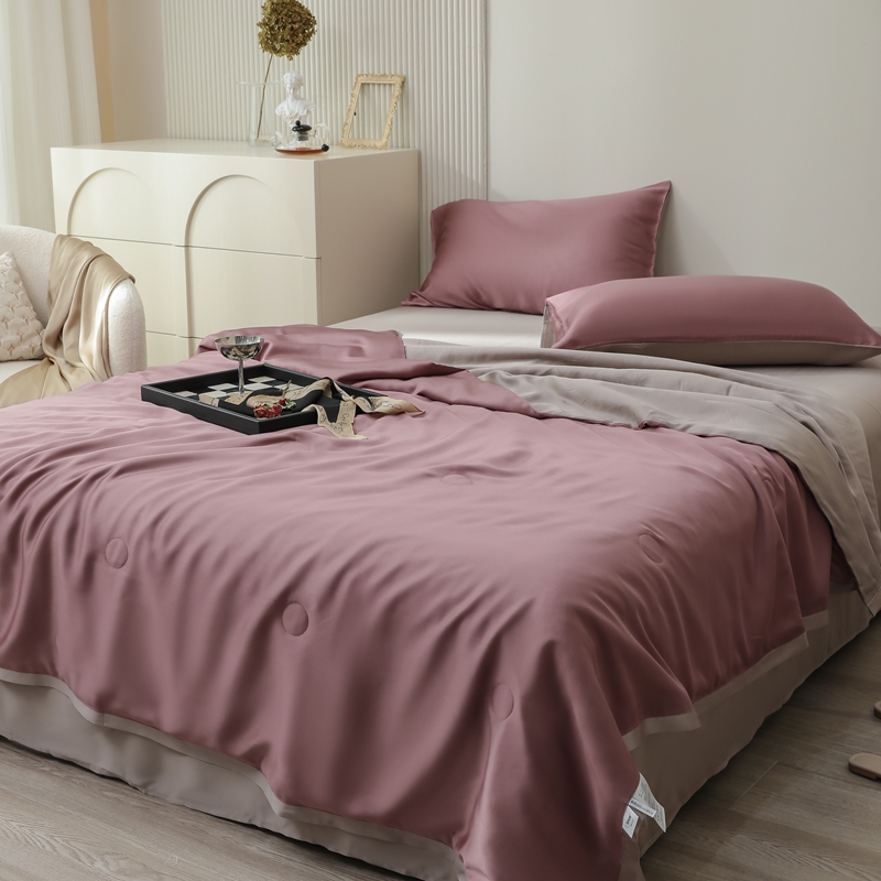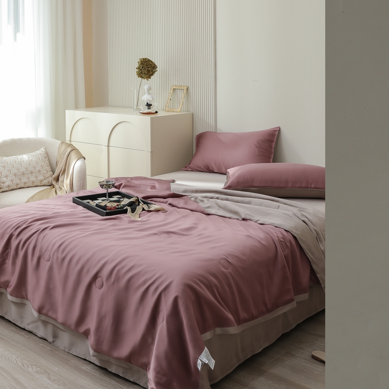 当前位置: 91家纺网 > 商品网购 > 床品套件 > 四件套 > 夏被四件套 > 眷恋家纺 2025春夏新款双拼纯色60天丝夏被四件套 野樱莓-芋泥灰