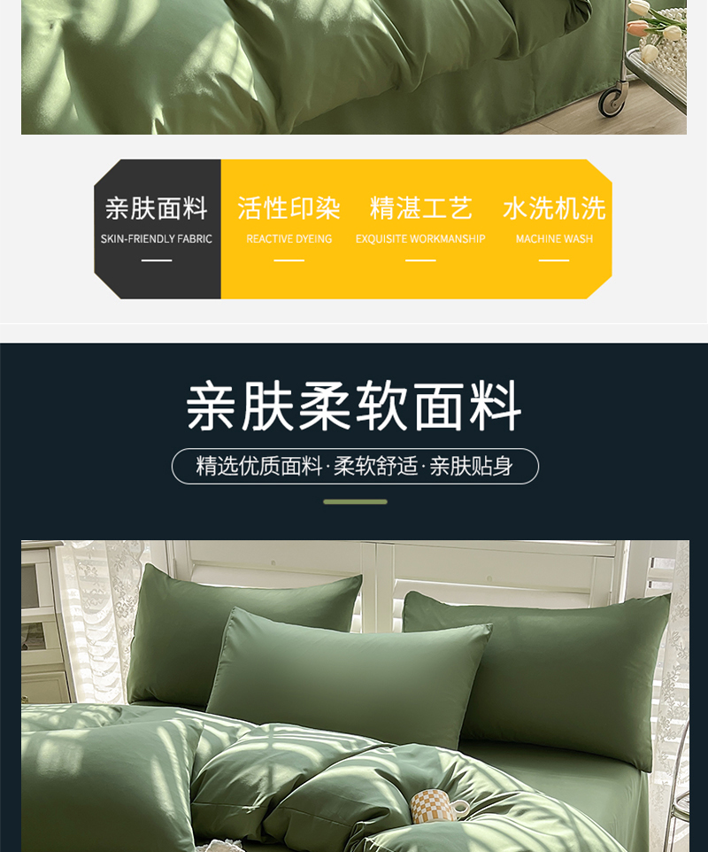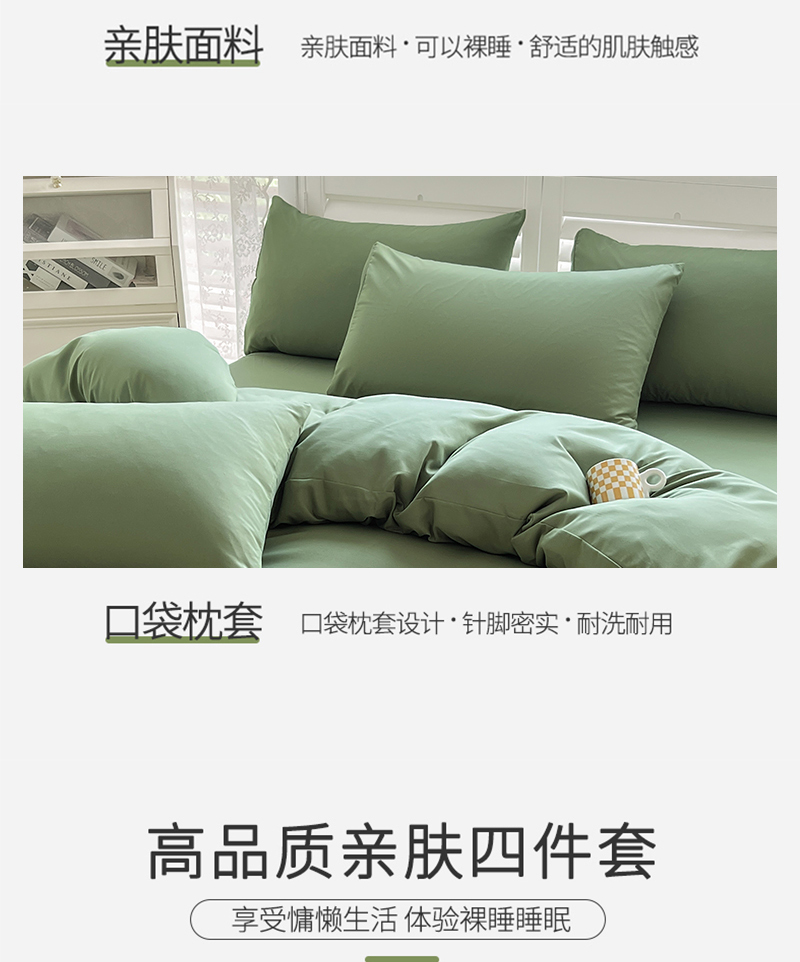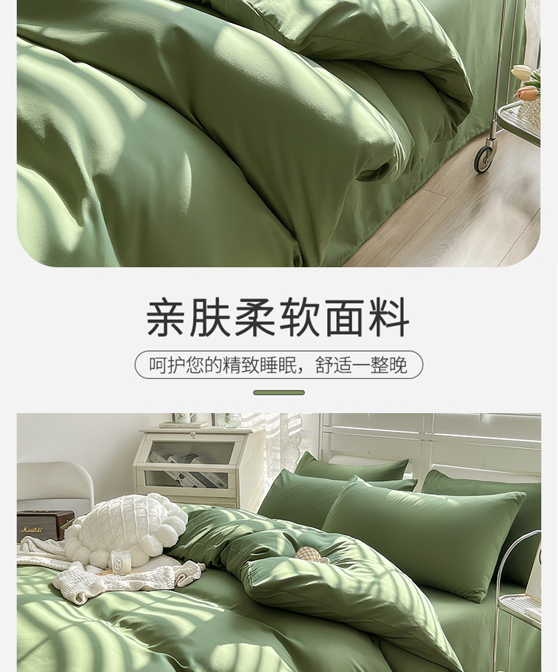 当前位置: 91家纺网 > 商品网购 > 床品套件 > 四件套 > 其它四件套 > 啊雅家居 2025新款学生宿舍双拼磨毛被套床单床笠单品三件套四件套 草绿