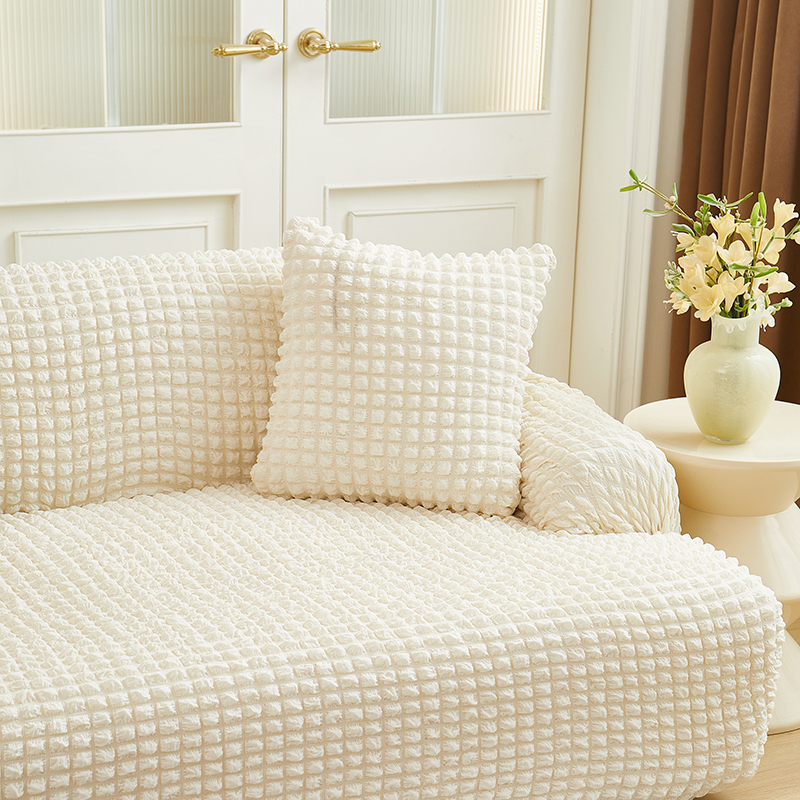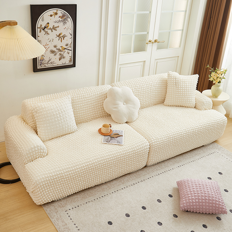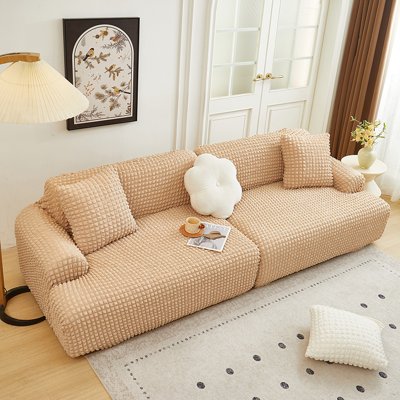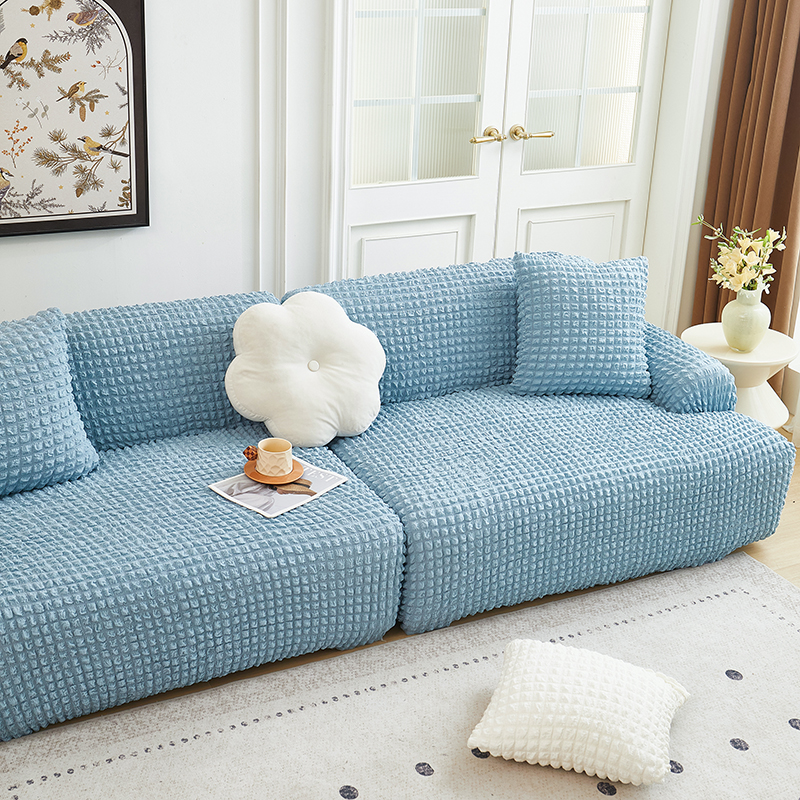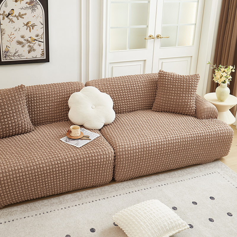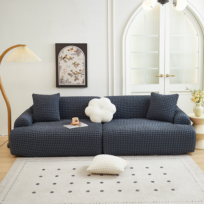 商品名称:丝绮鹿 2025新款泡泡爆米花系列—直排松紧款沙发套 碳灰