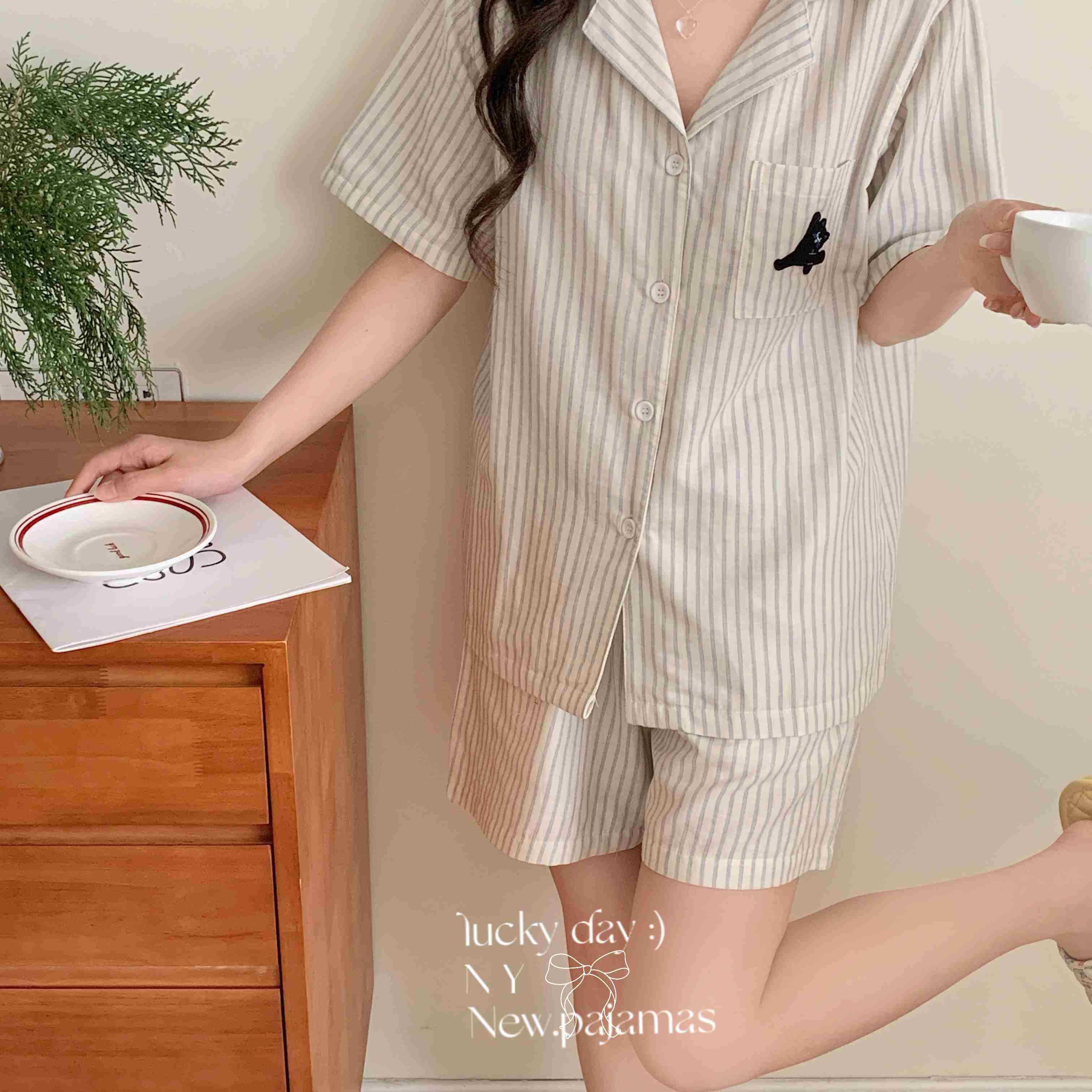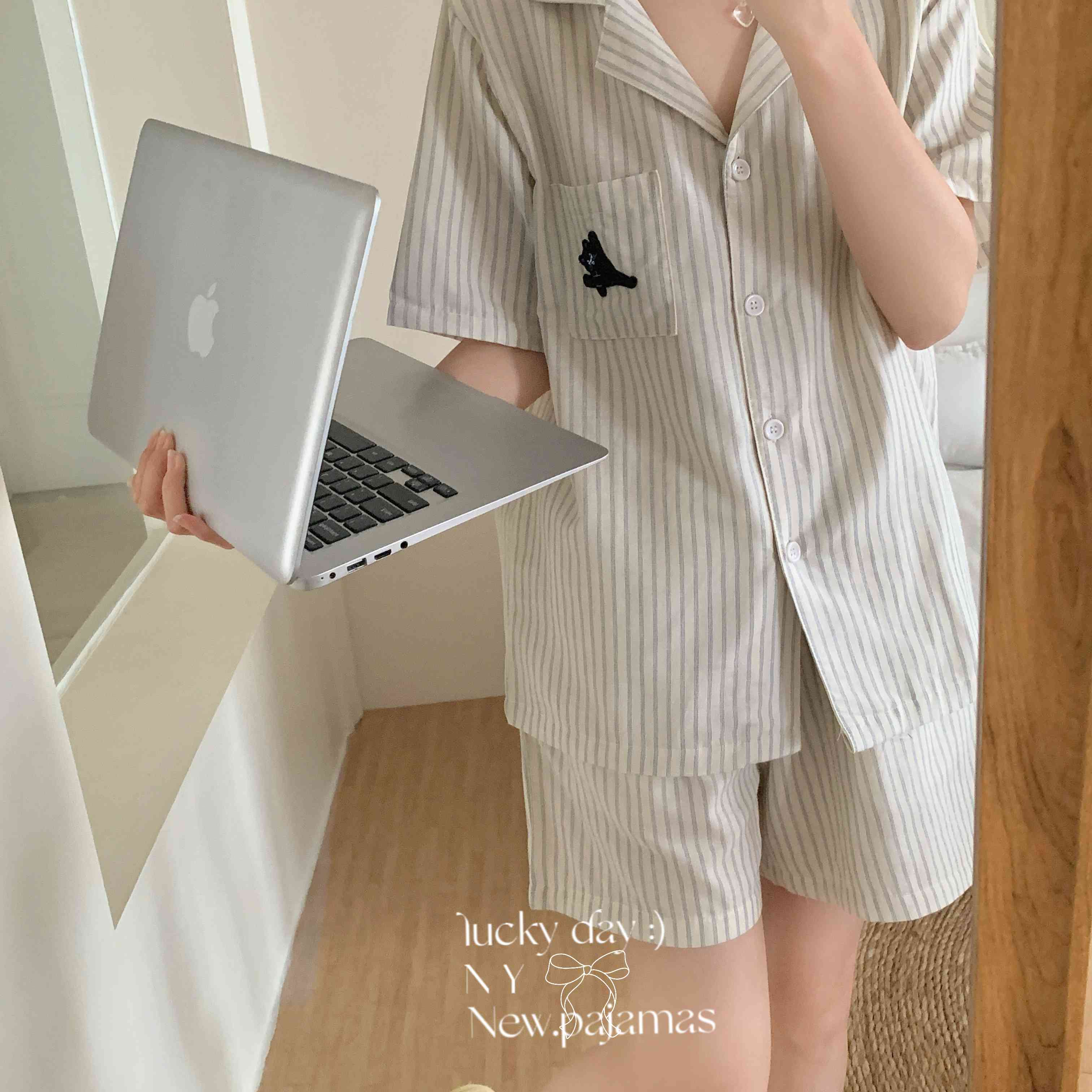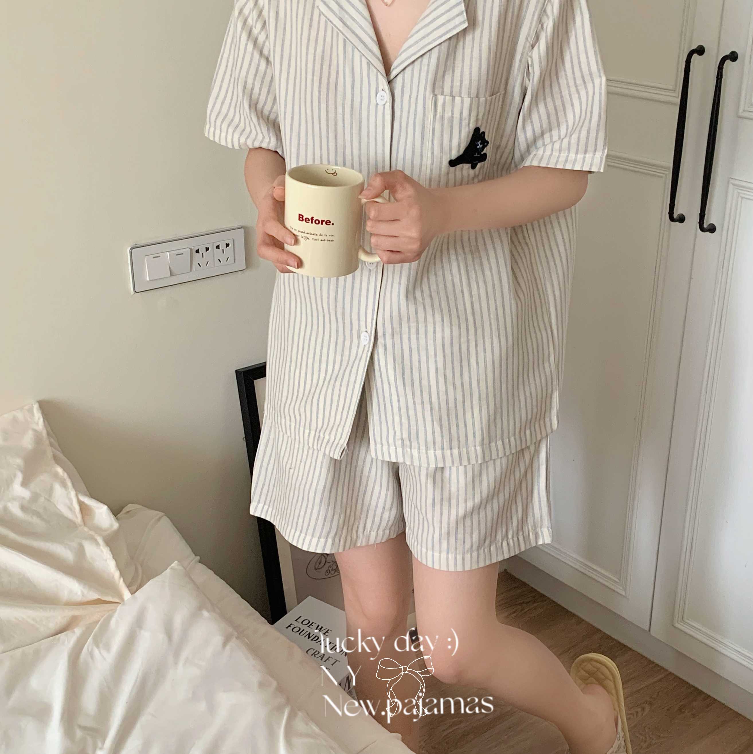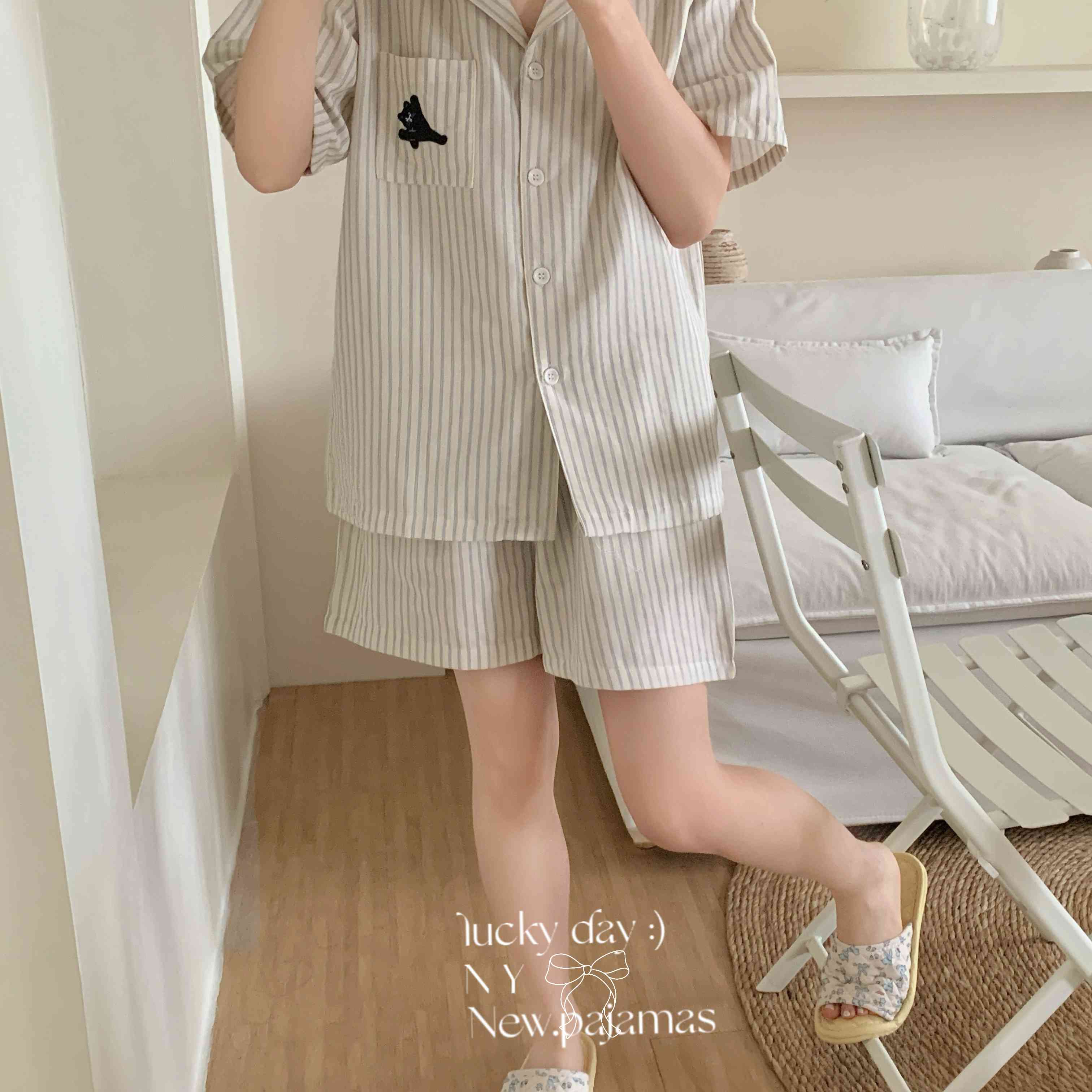 (总)纽约生活 2025新款条纹黑猫短短家居服