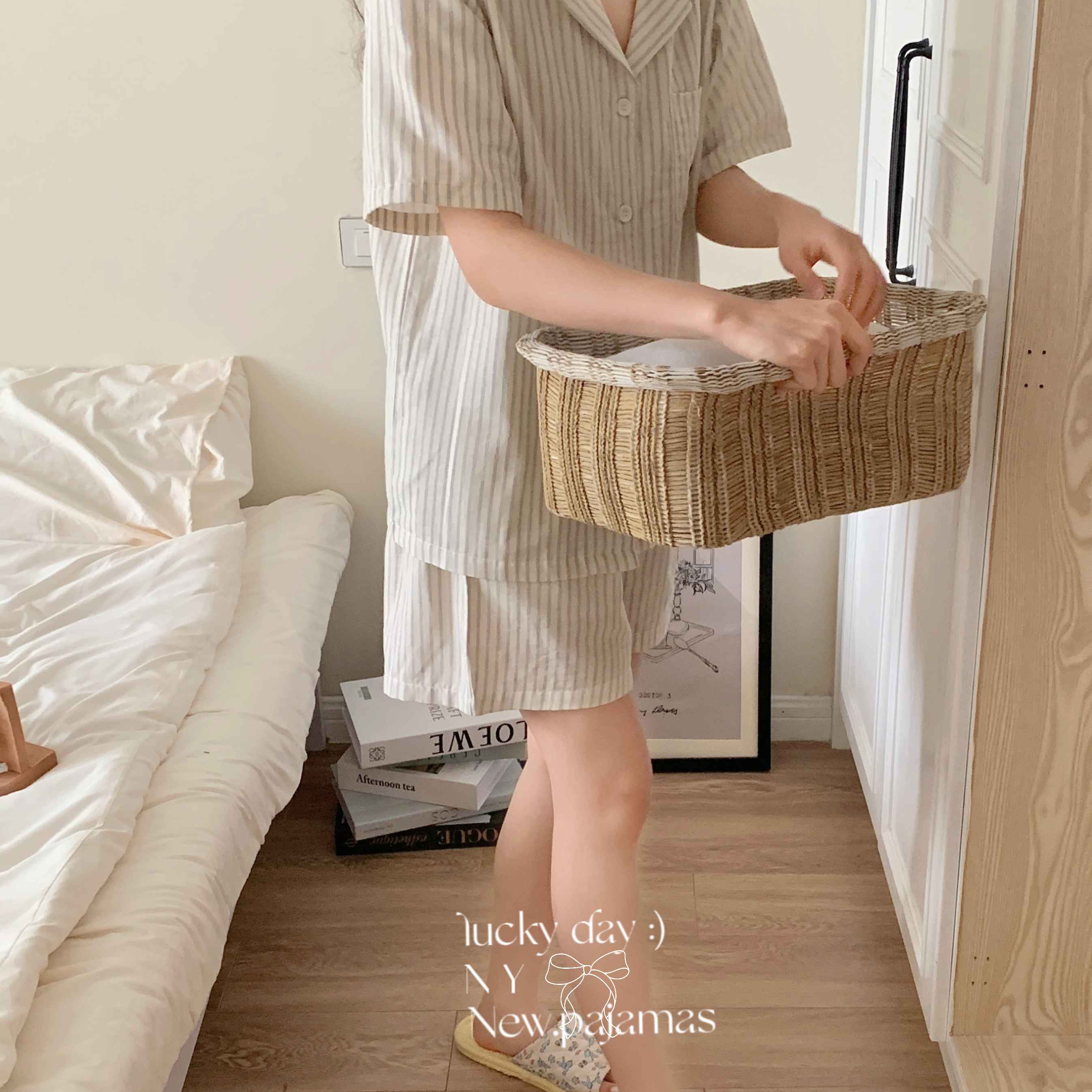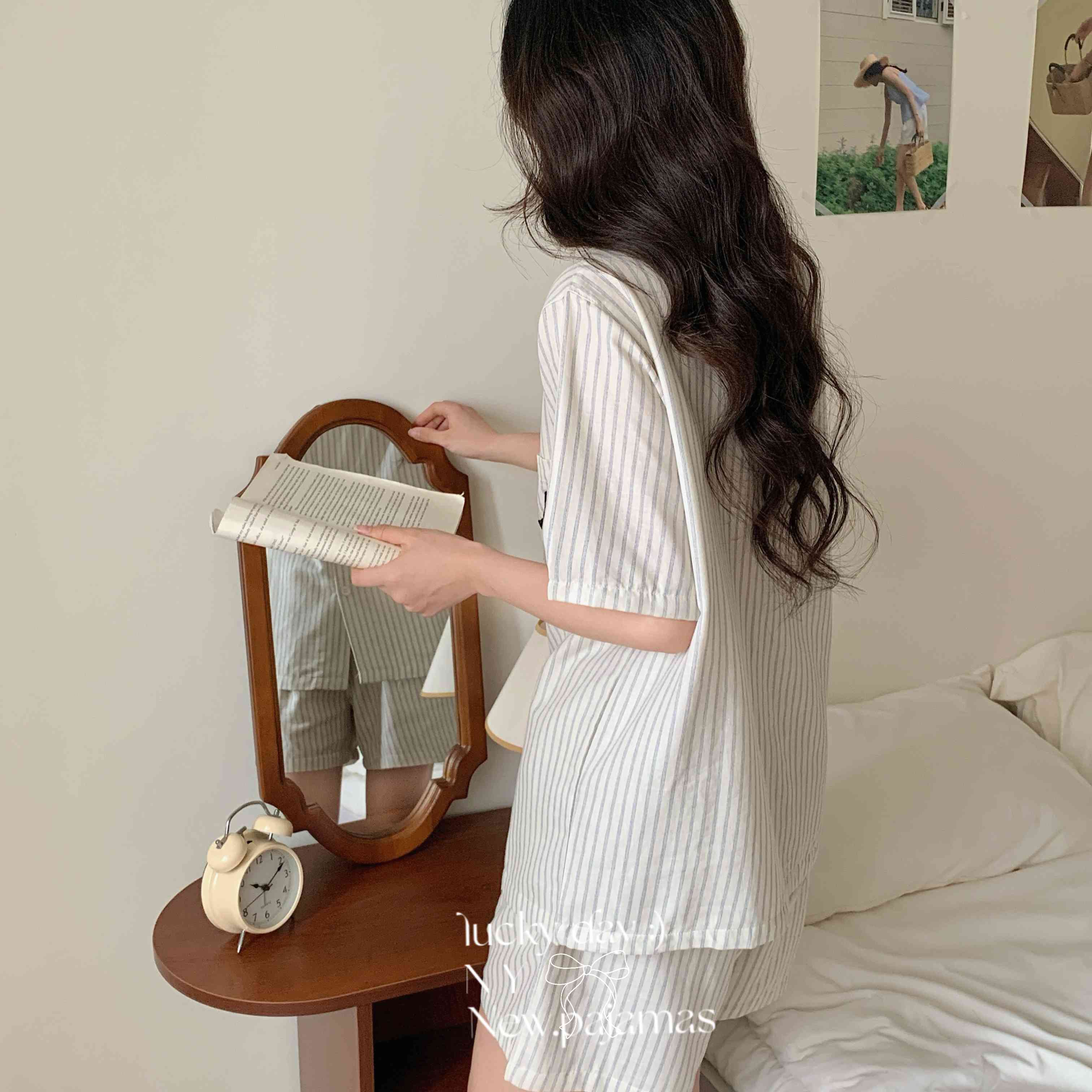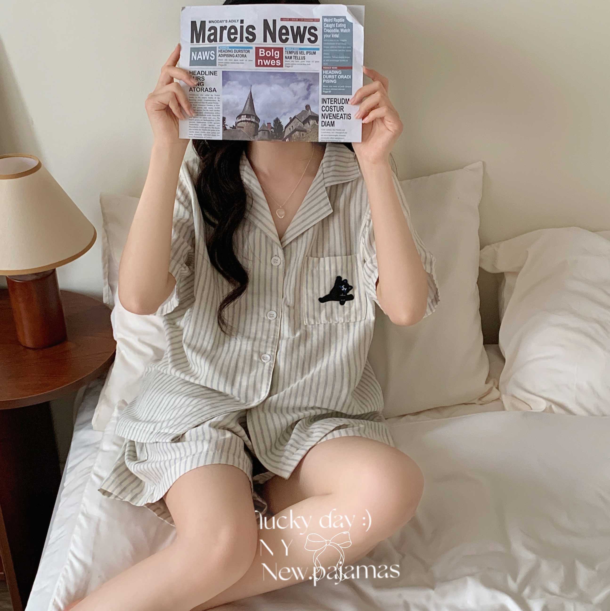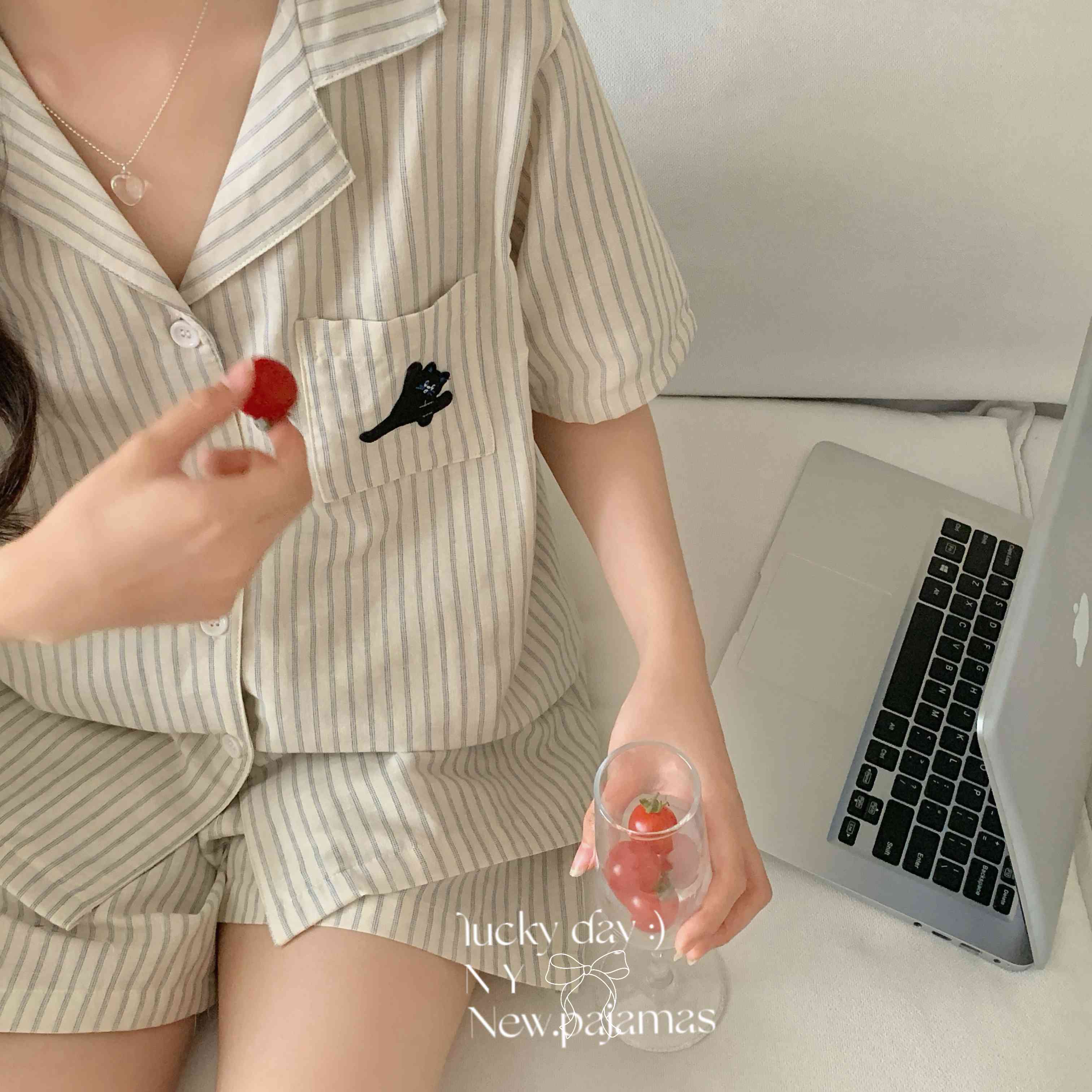 (总)纽约生活 2025新款条纹黑猫短短家居服