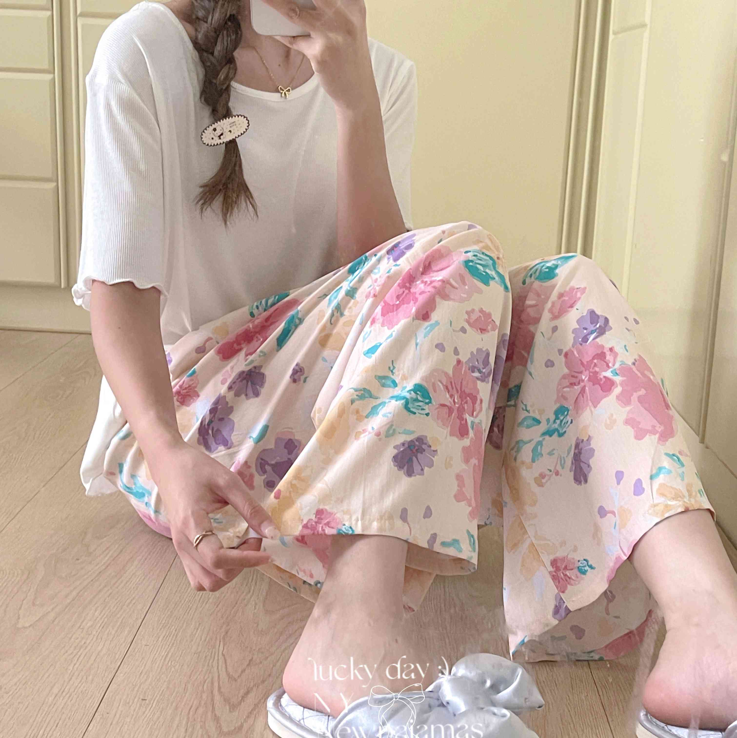 商品名称:纽约生活 2025新款人棉阔腿裤 花海