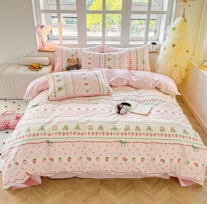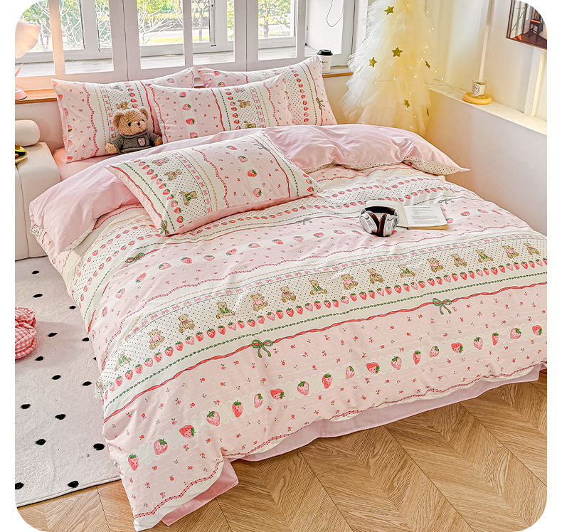 昊翔家纺 2025新款13372全棉印花系列四件套 草莓甜心
