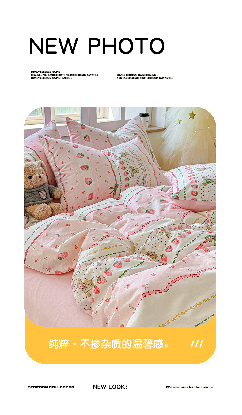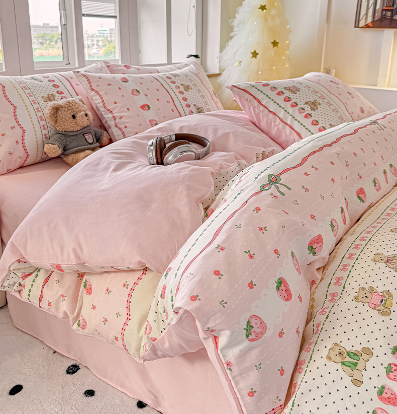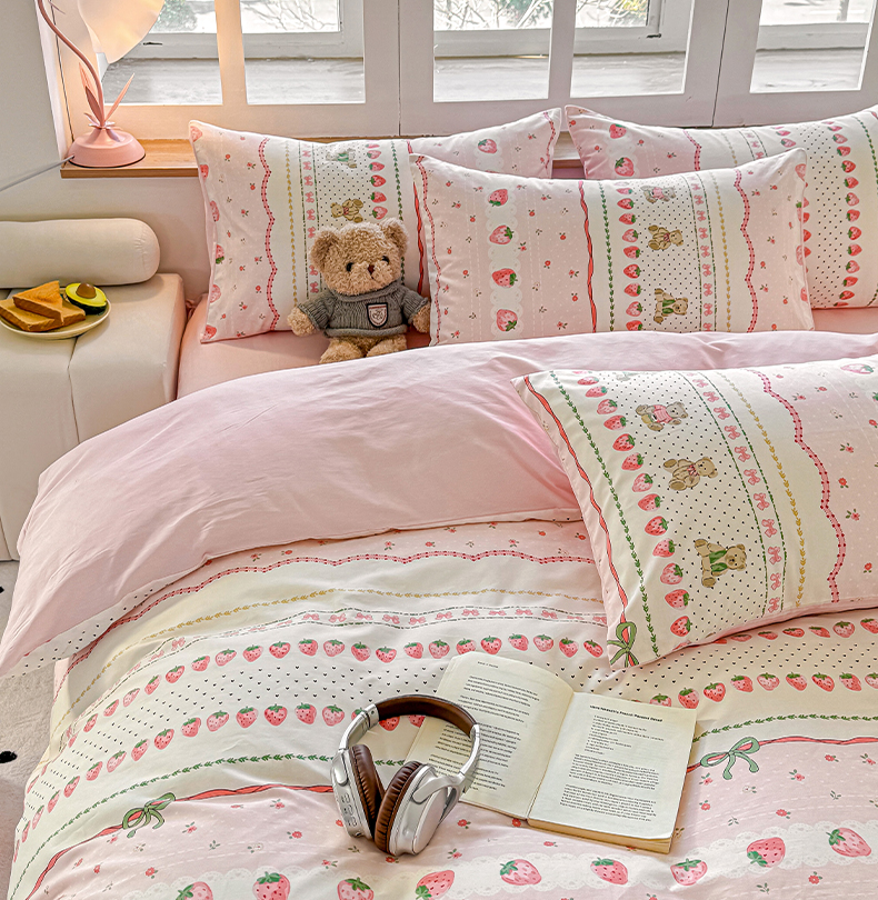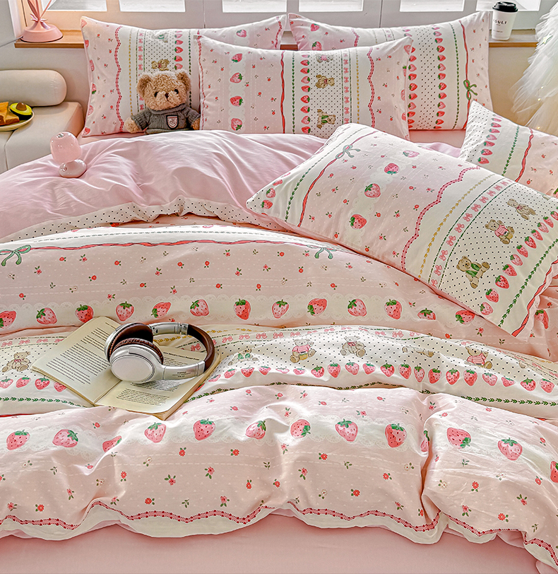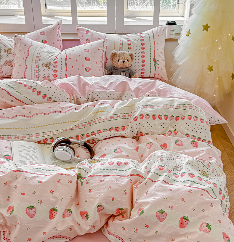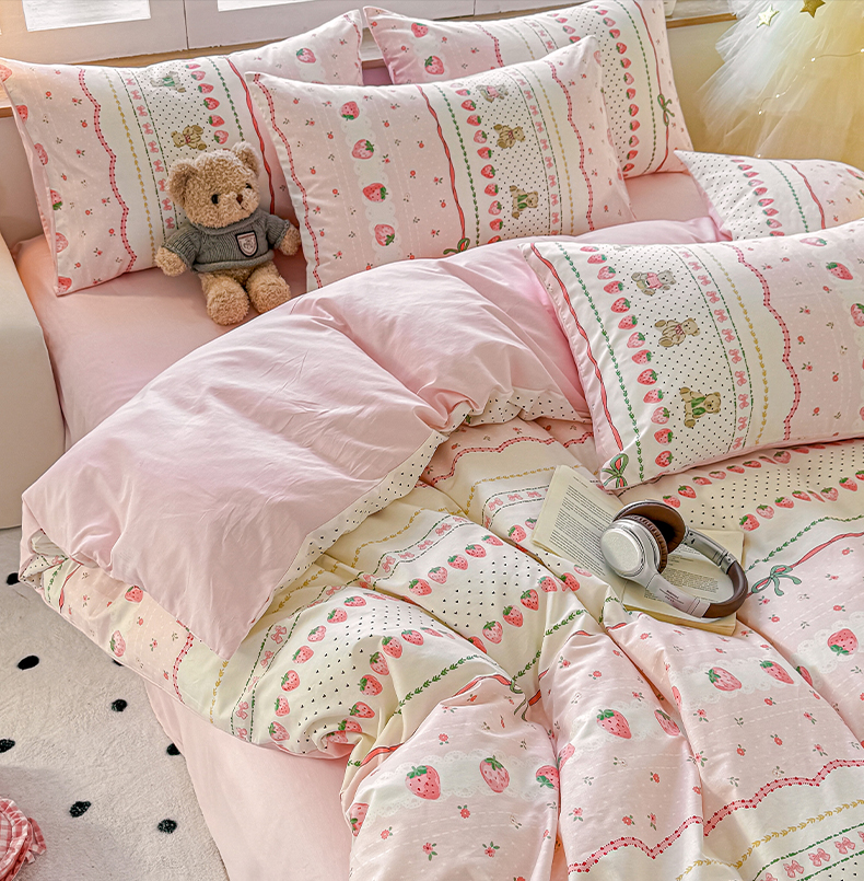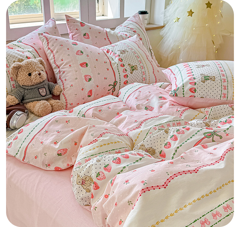 商品名称:昊翔家纺 2025新款13372全棉印花系列四件套 草莓甜心