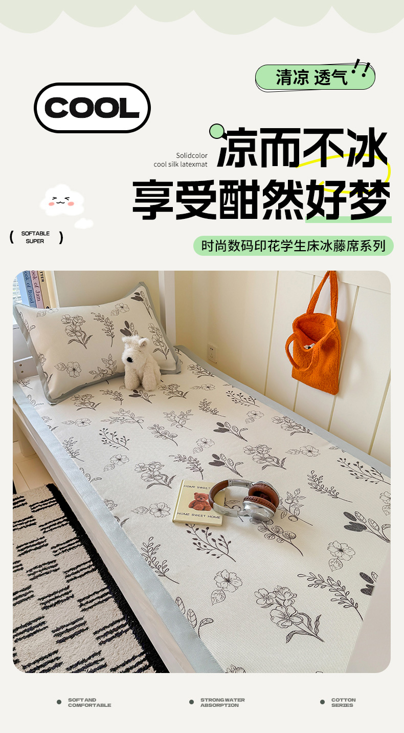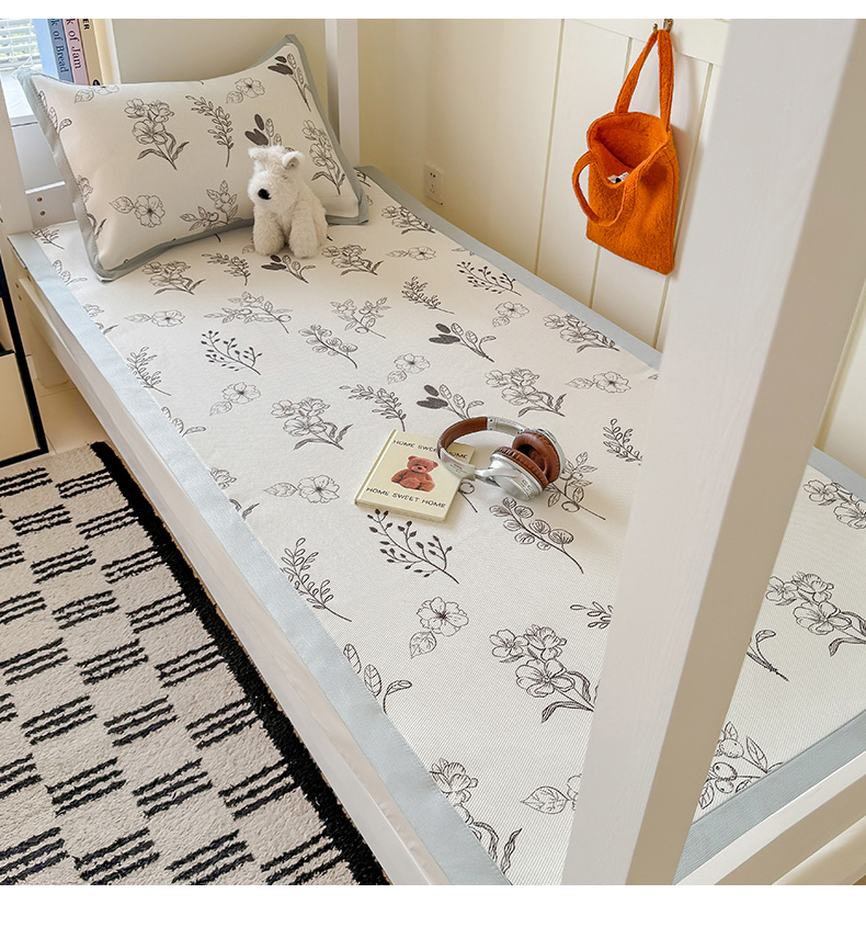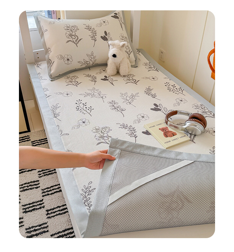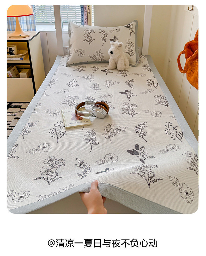 商品名称:安哆啦家纺 2025新款A类小清新卡通学生季宿舍床儿童用冰藤凉席席子两件套 冰藤席-空墨