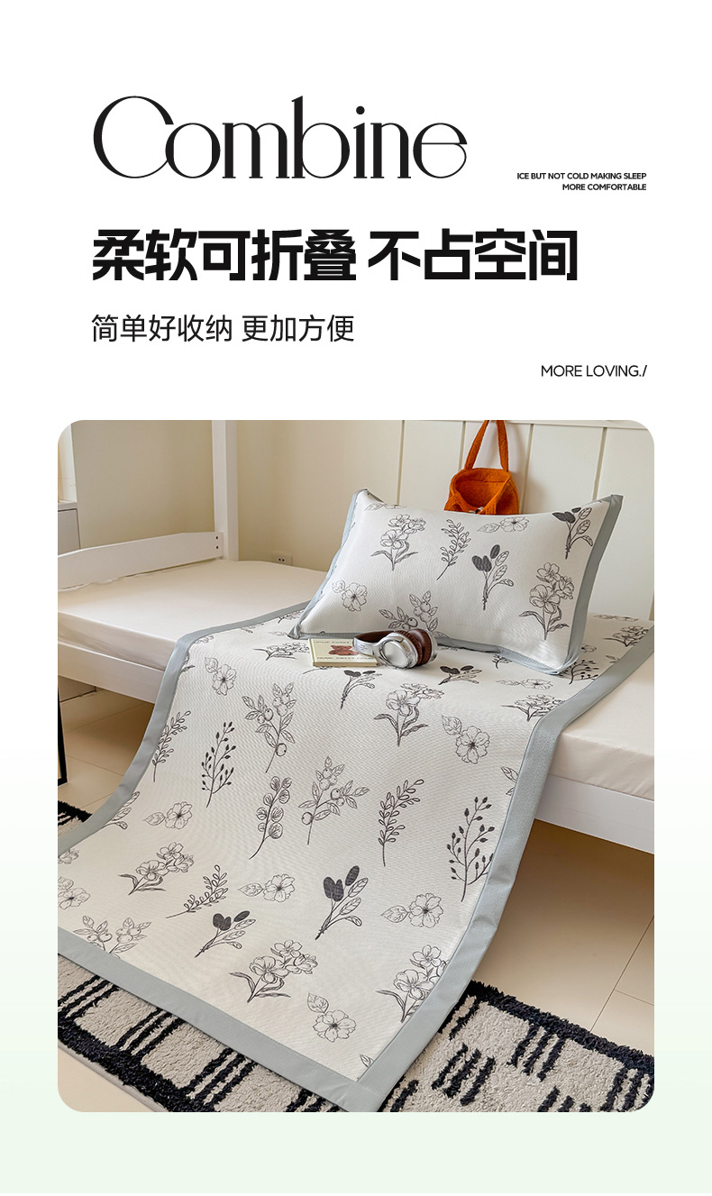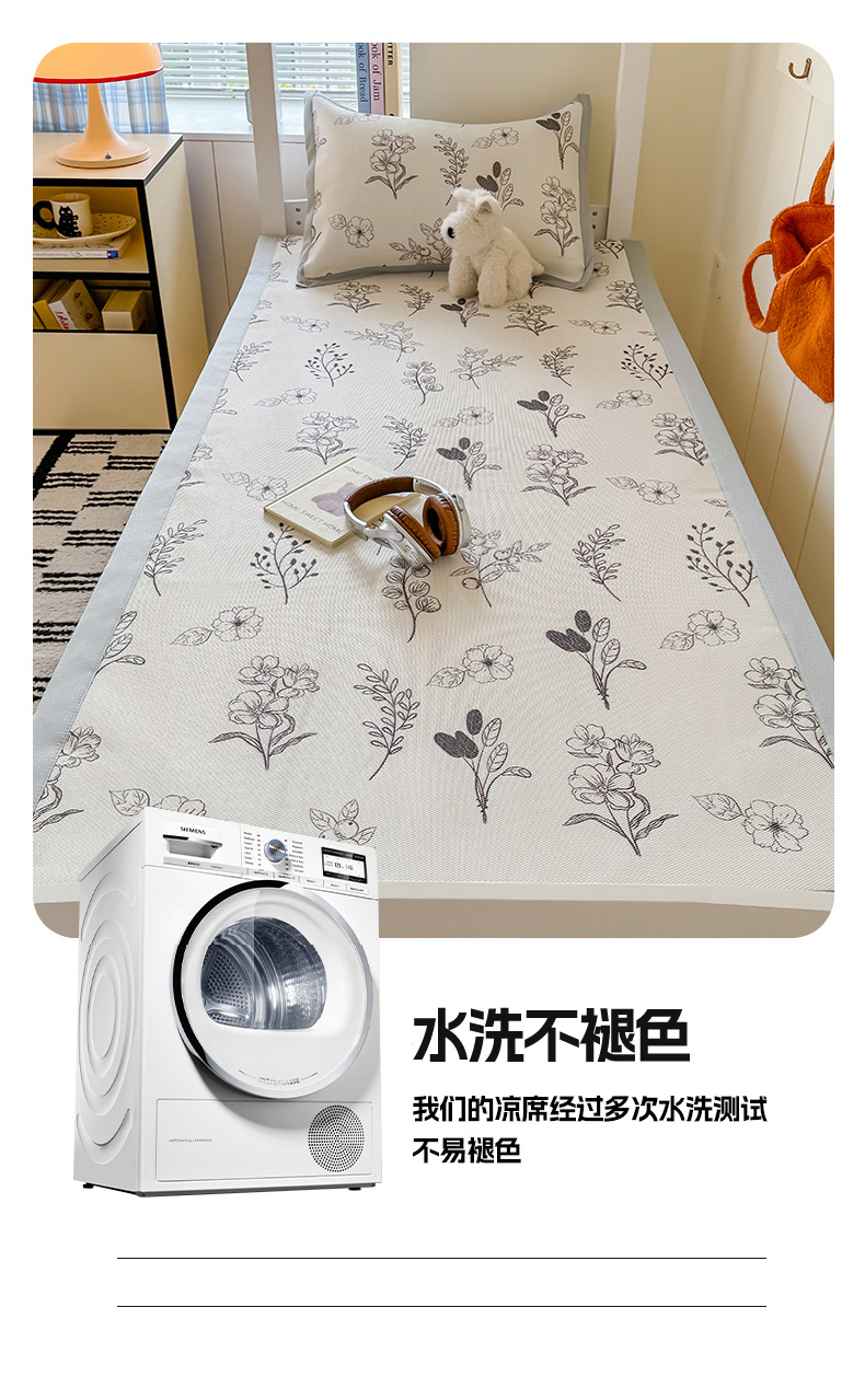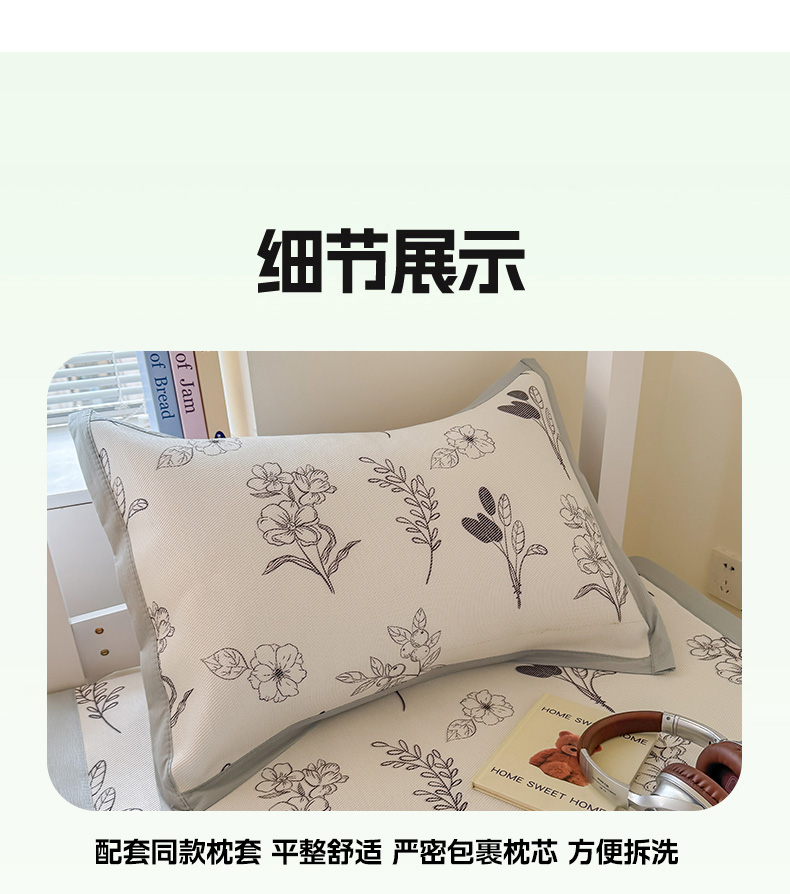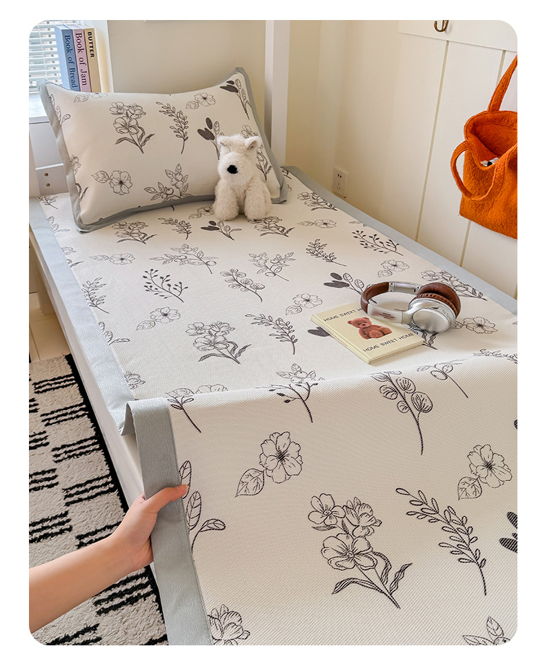 商品名称:安哆啦家纺 2025新款A类小清新卡通学生季宿舍床儿童用冰藤凉席席子两件套 冰藤席-空墨