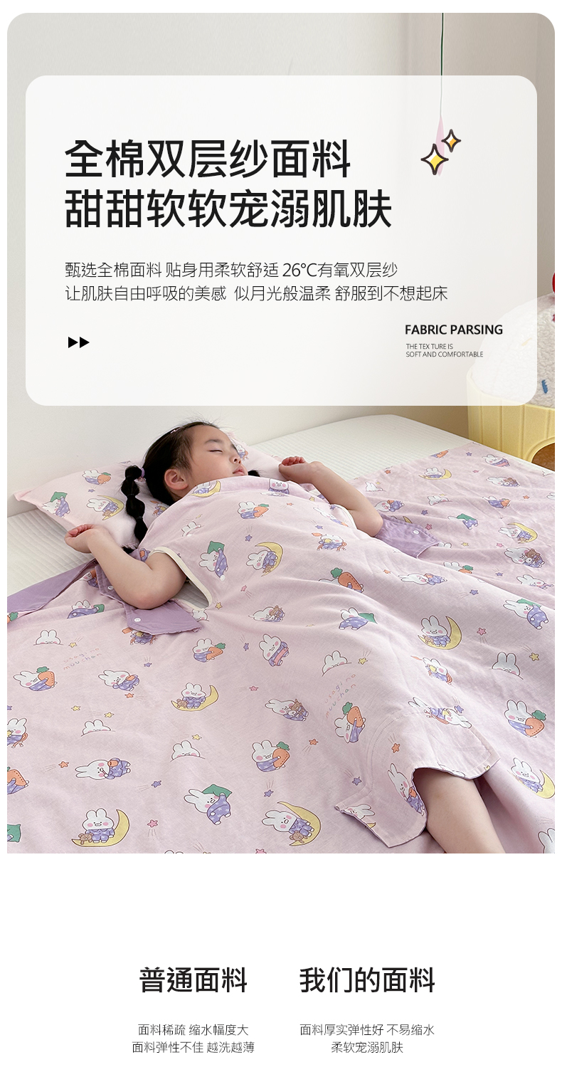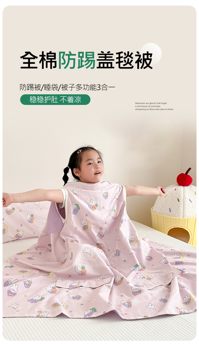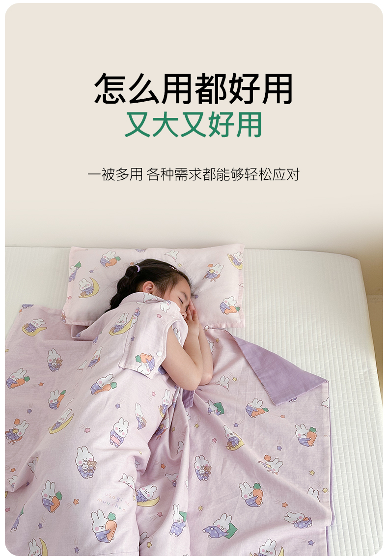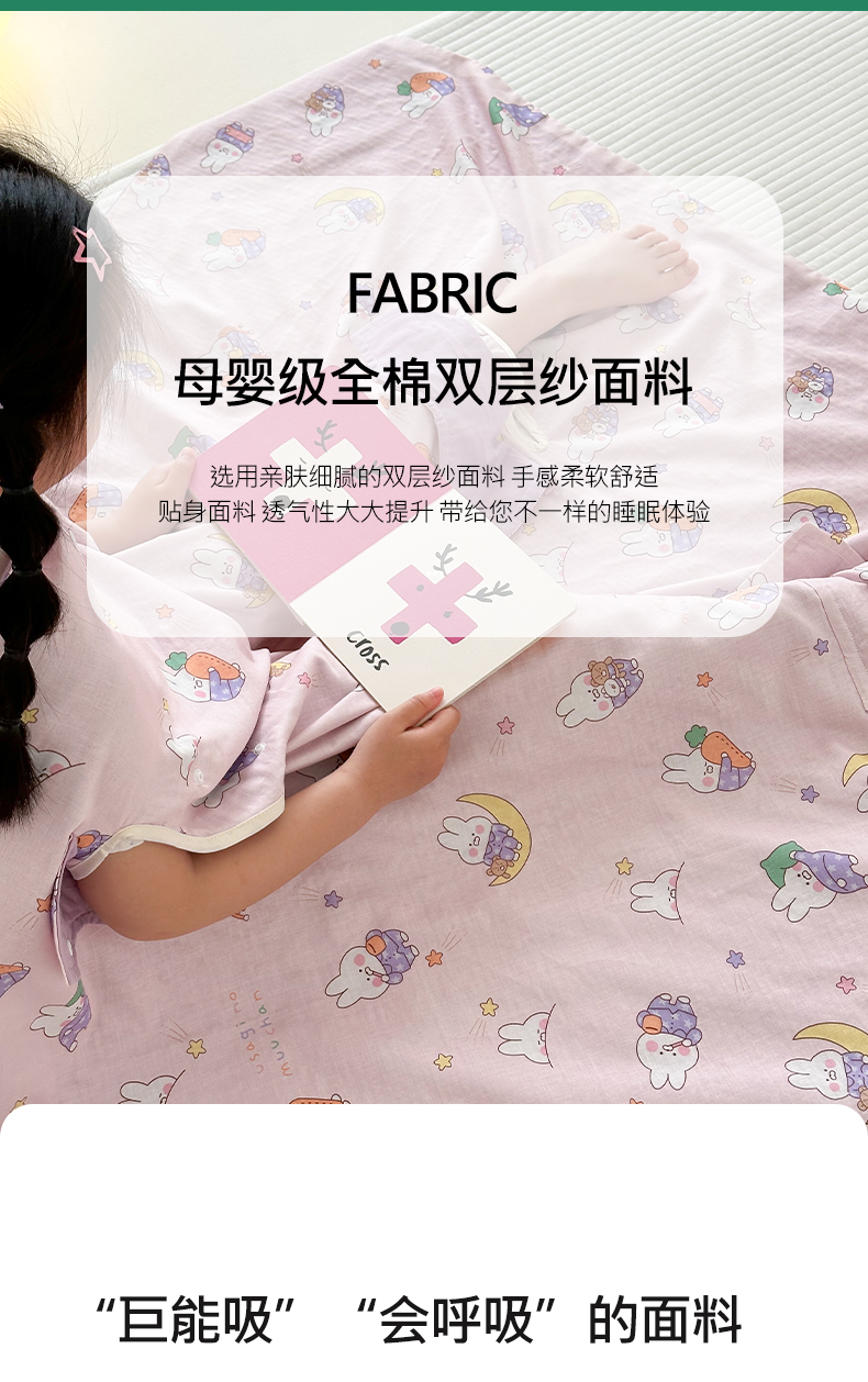 商品名称:BOSS 2025新款全棉有氧双层纱多功能防踢盖毯被 晚安兔